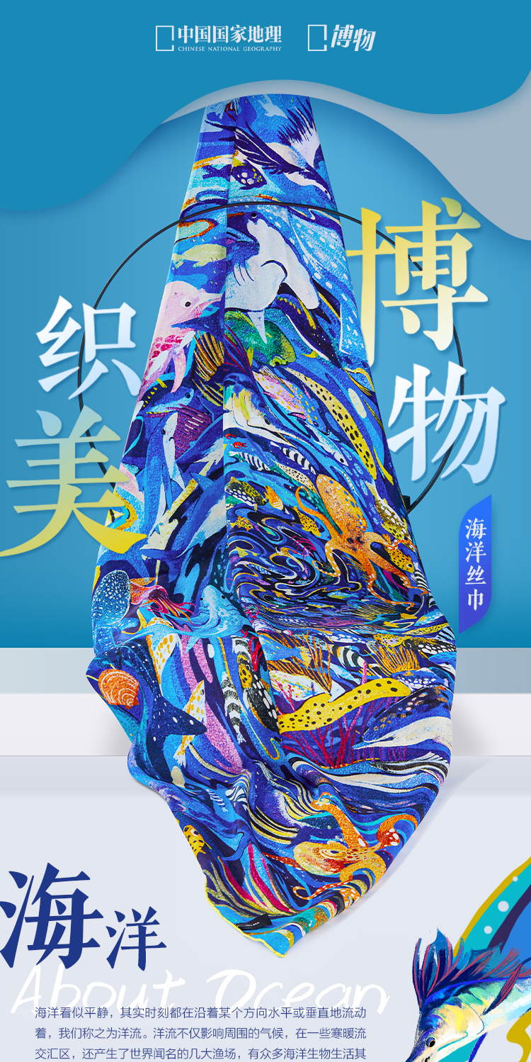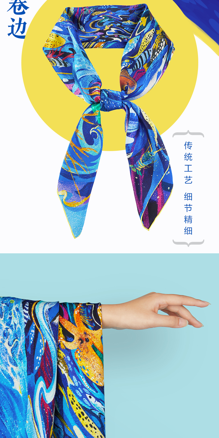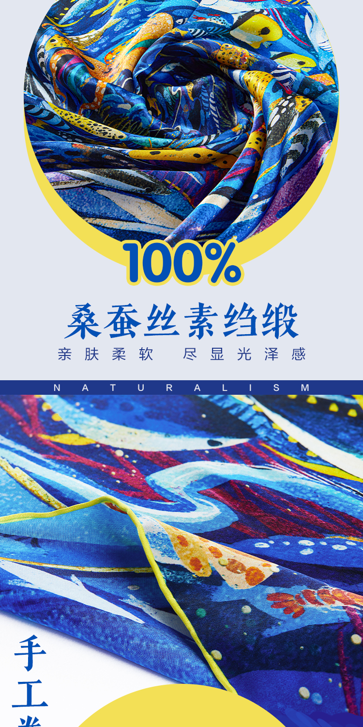 博物 织美海洋丝巾礼盒100%桑蚕丝双面印花艺术亲肤柔软