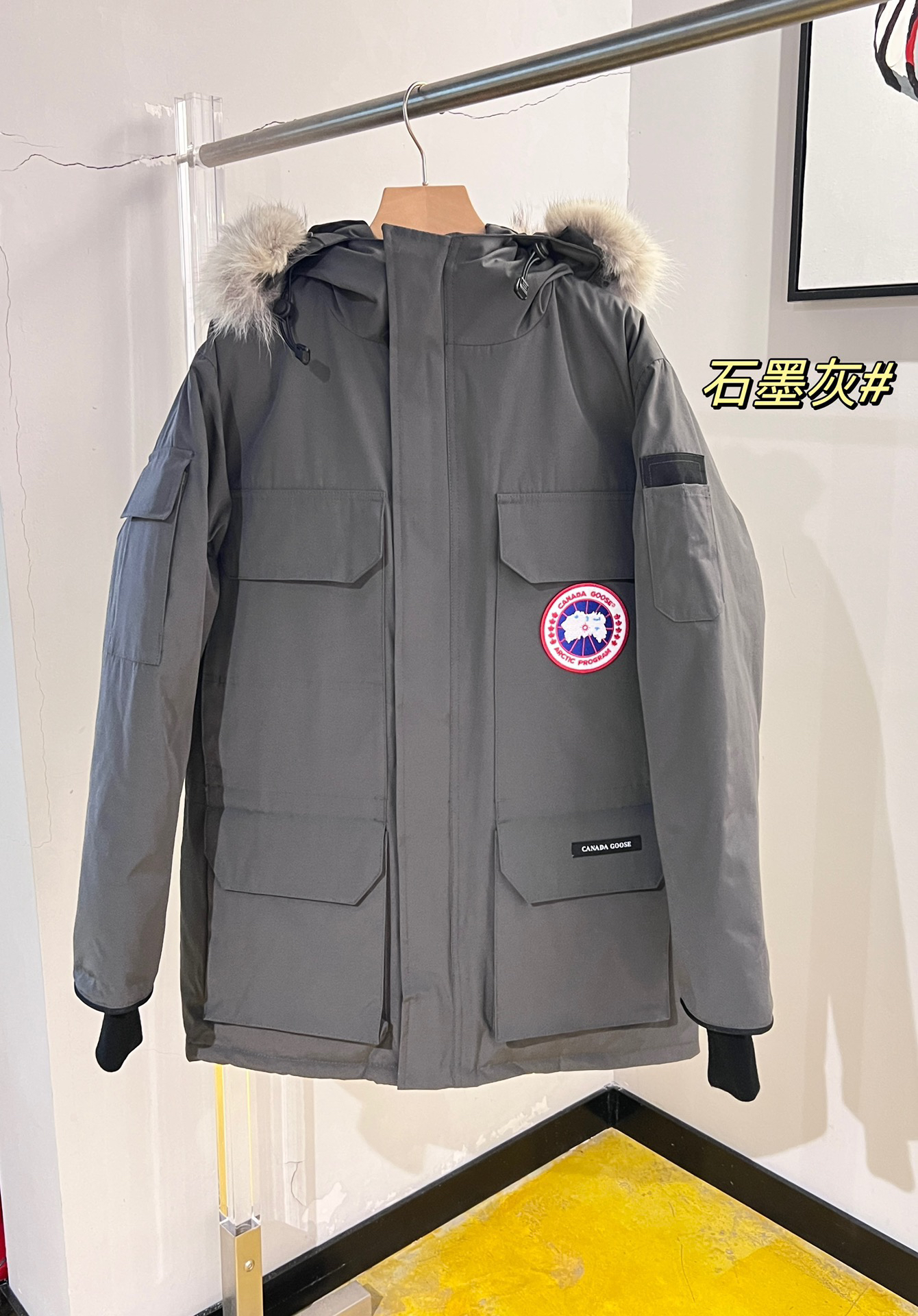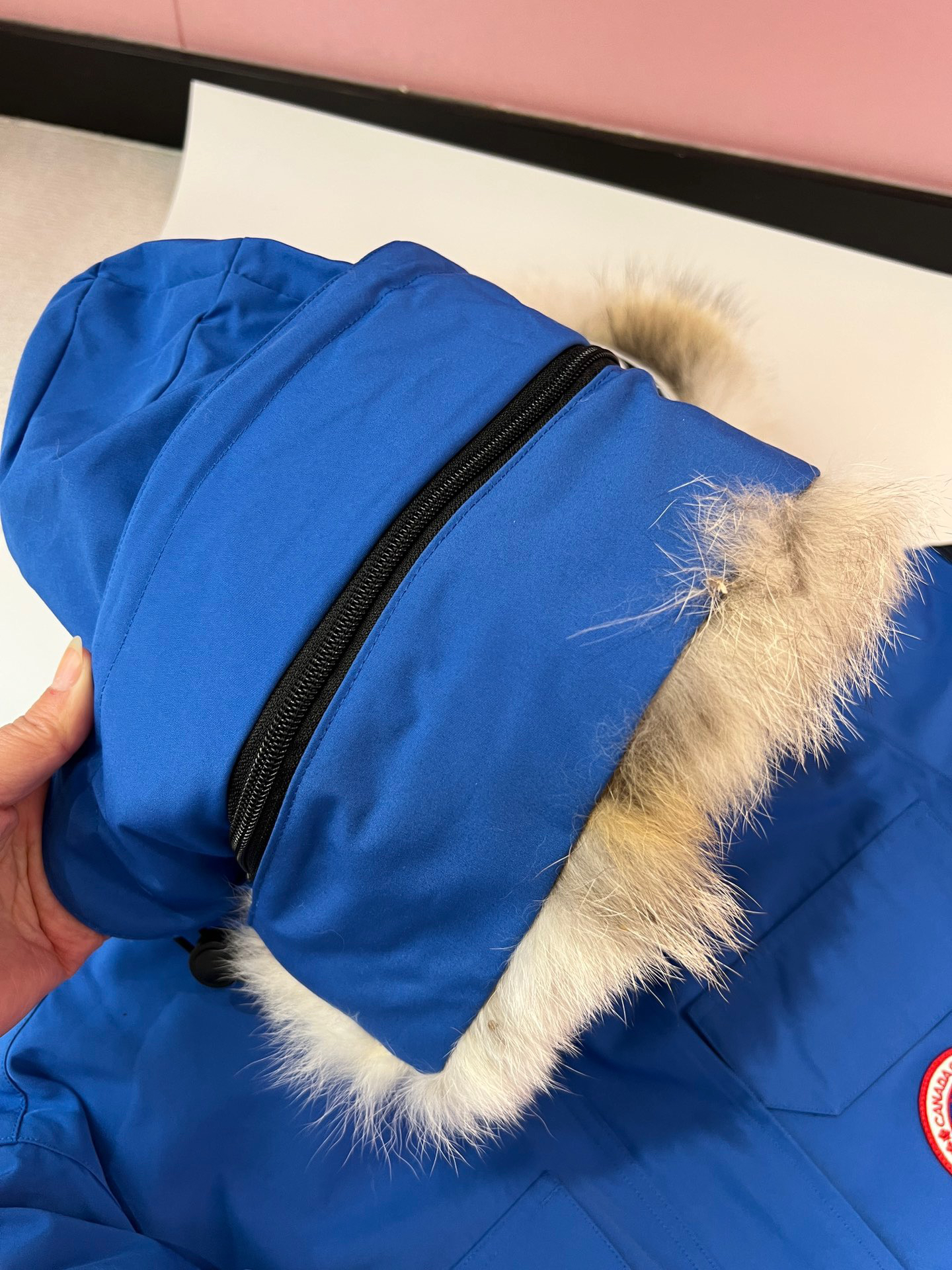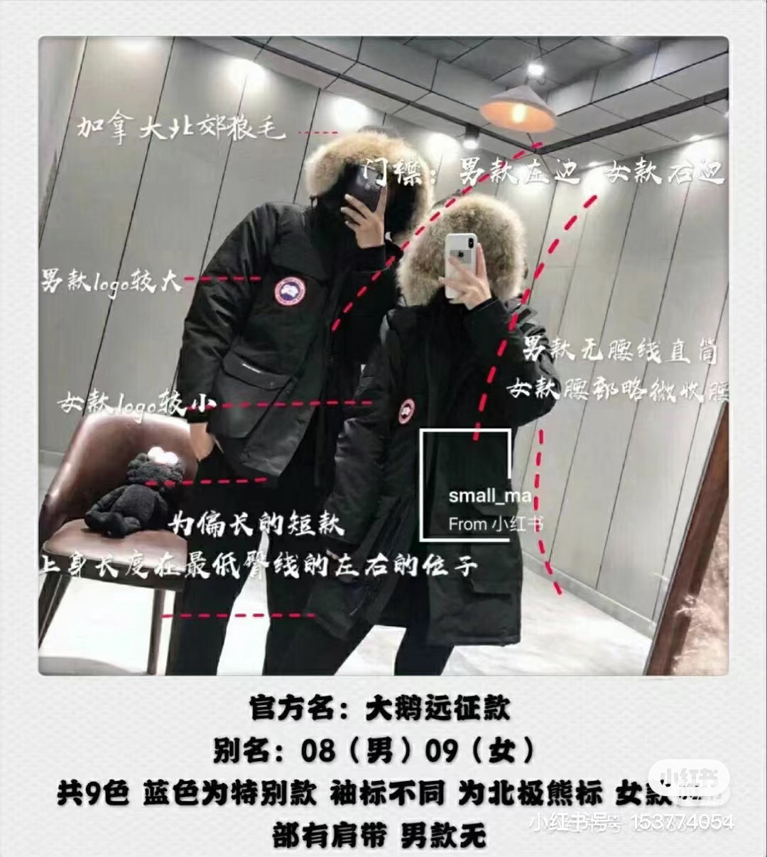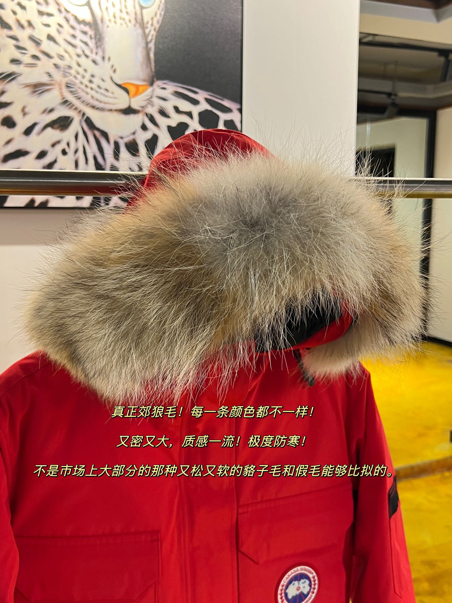 国标80白鸭绒!填充500g以上,蓬松度满满!(机器格充,每格充绒量饱满,电脑设定数值,每件充绒误差不超过10g)不混绒随意检测!(zp采用80%白鸭绒/凡吹嘘90%都假)连帽领口细节,立体连帽充绒工艺,随意去对比~真正的大鹅专用狡狼毛领,每条颜色都稍有颜色变化,因为是真皮毛的没法保证完全一致哈~