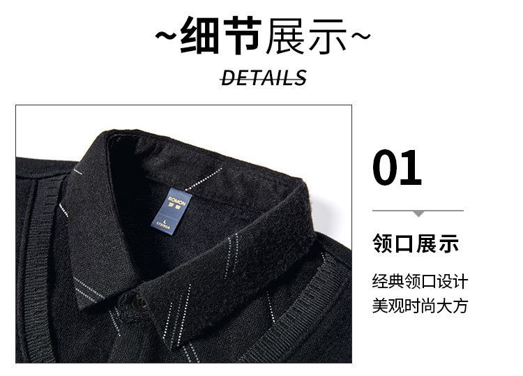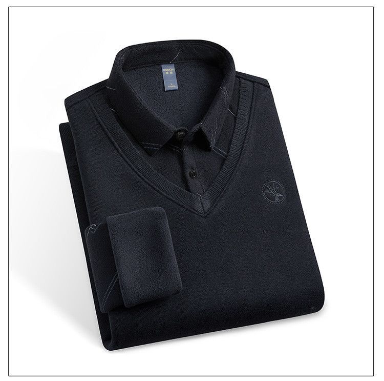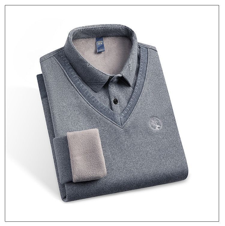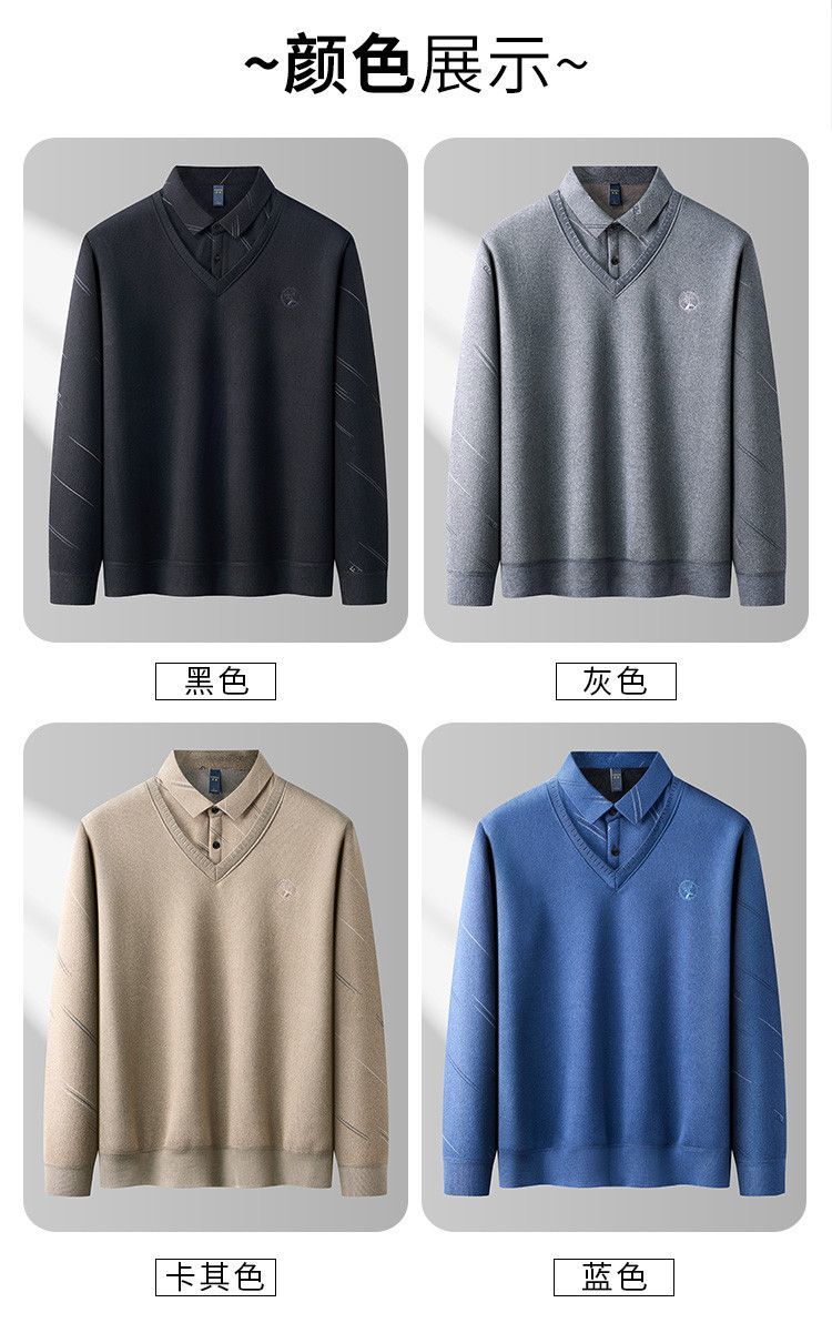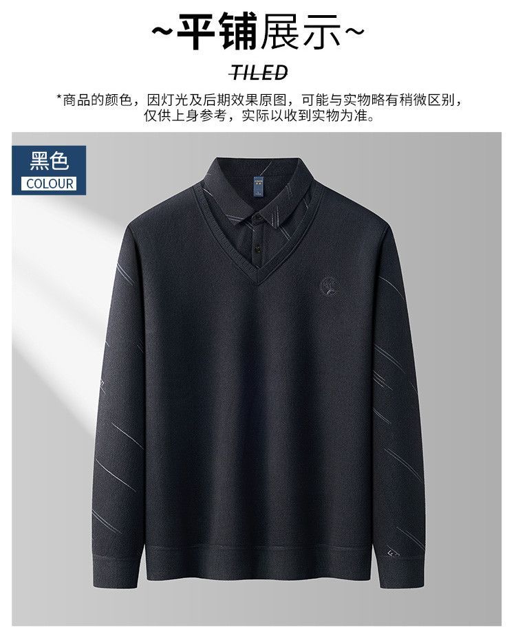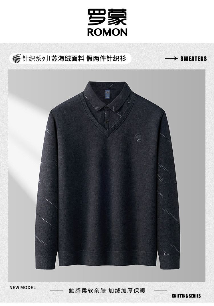 27DKTD9106【海利绒面料】罗蒙速暖绒内里加绒假两件衬衫领针织衫男士毛衣男衬衫
