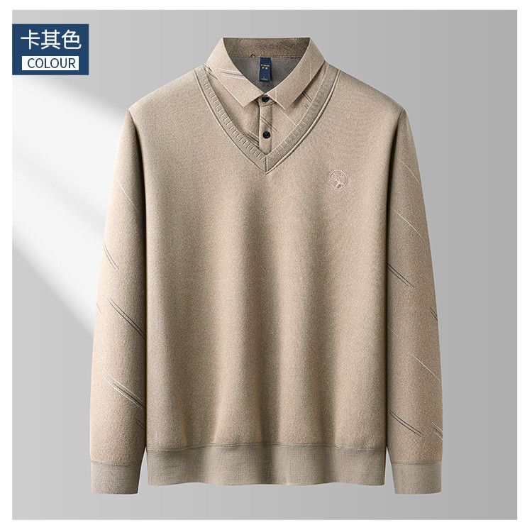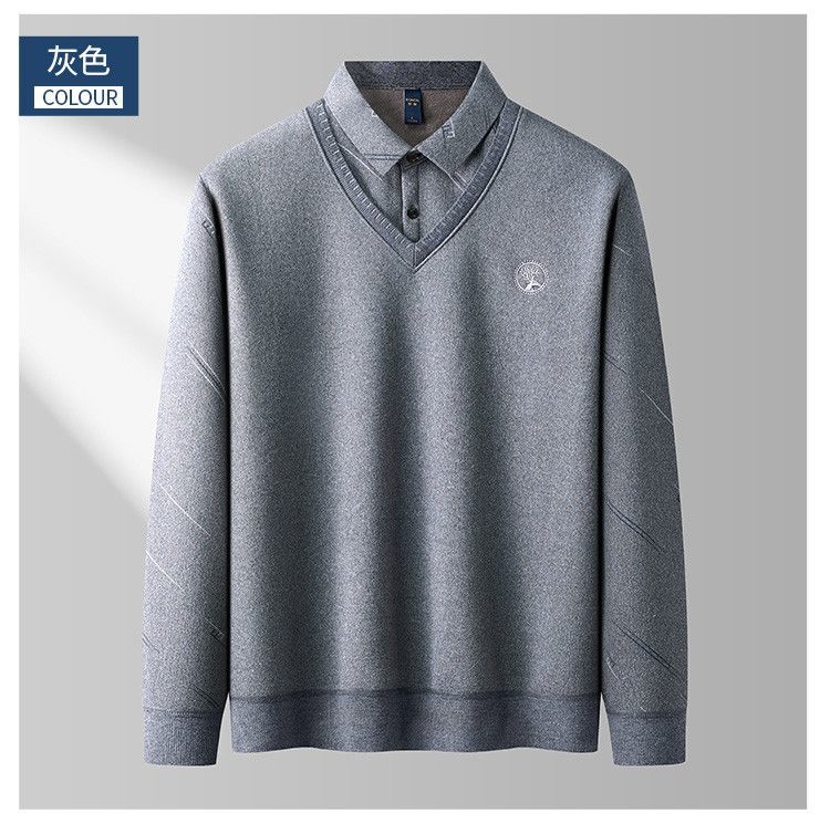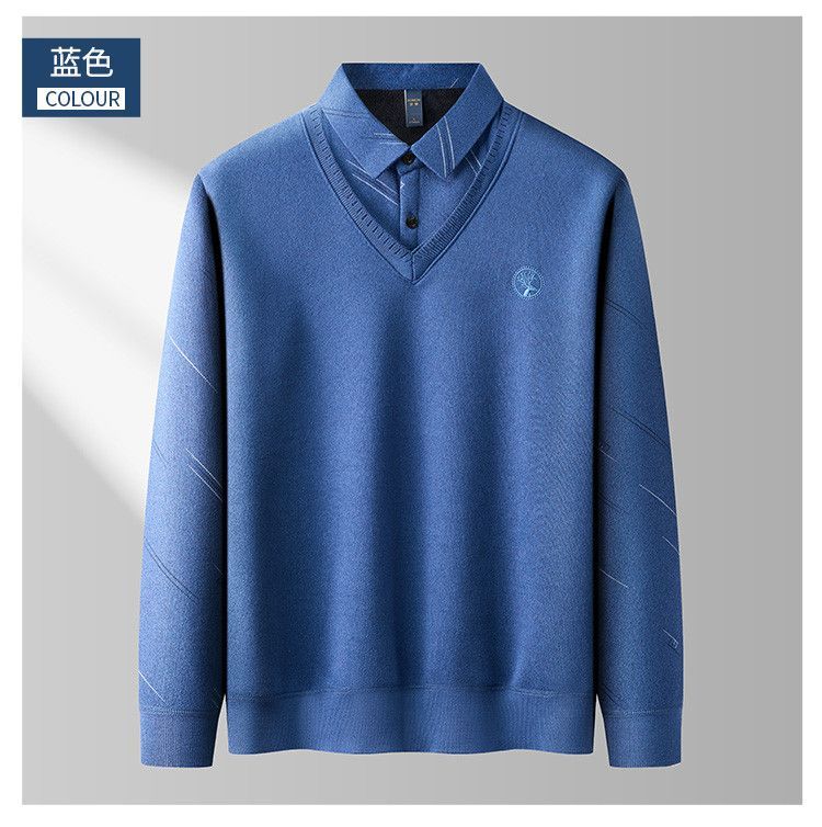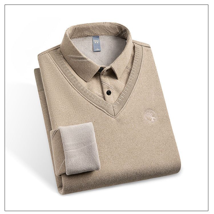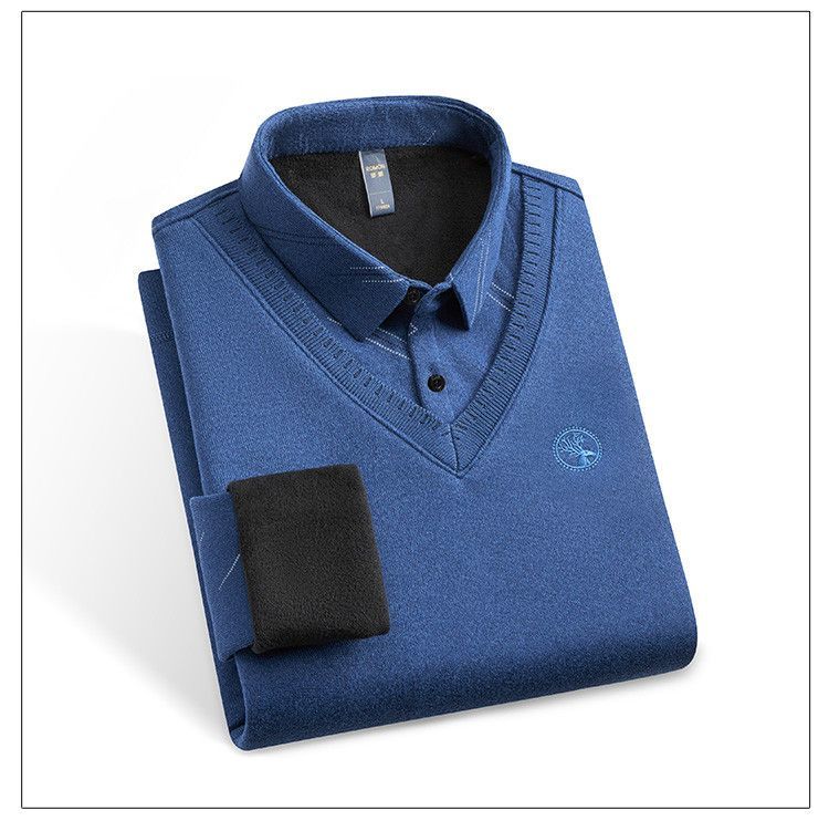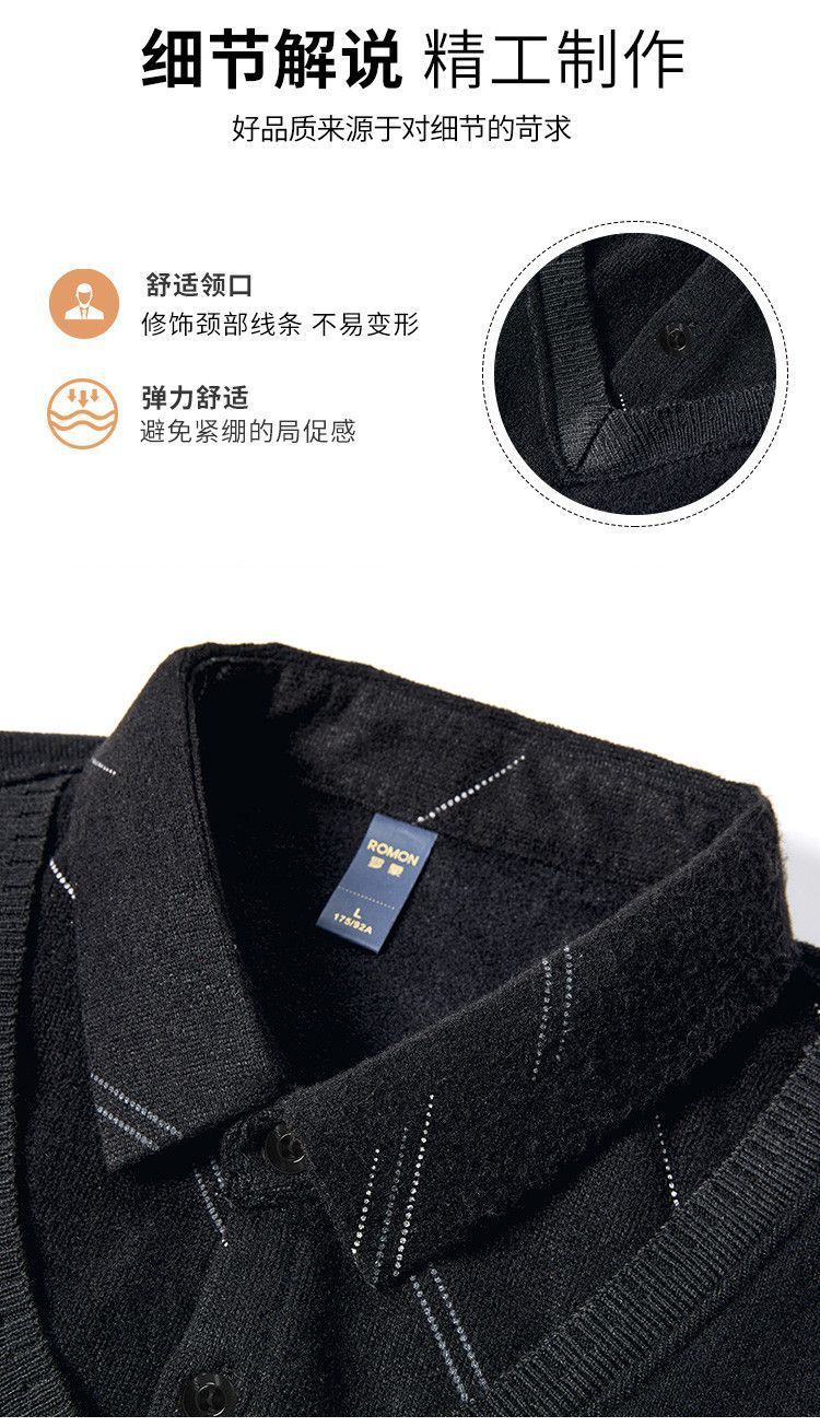 27DKTD9106【海利绒面料】罗蒙速暖绒内里加绒假两件衬衫领针织衫男士毛衣男衬衫