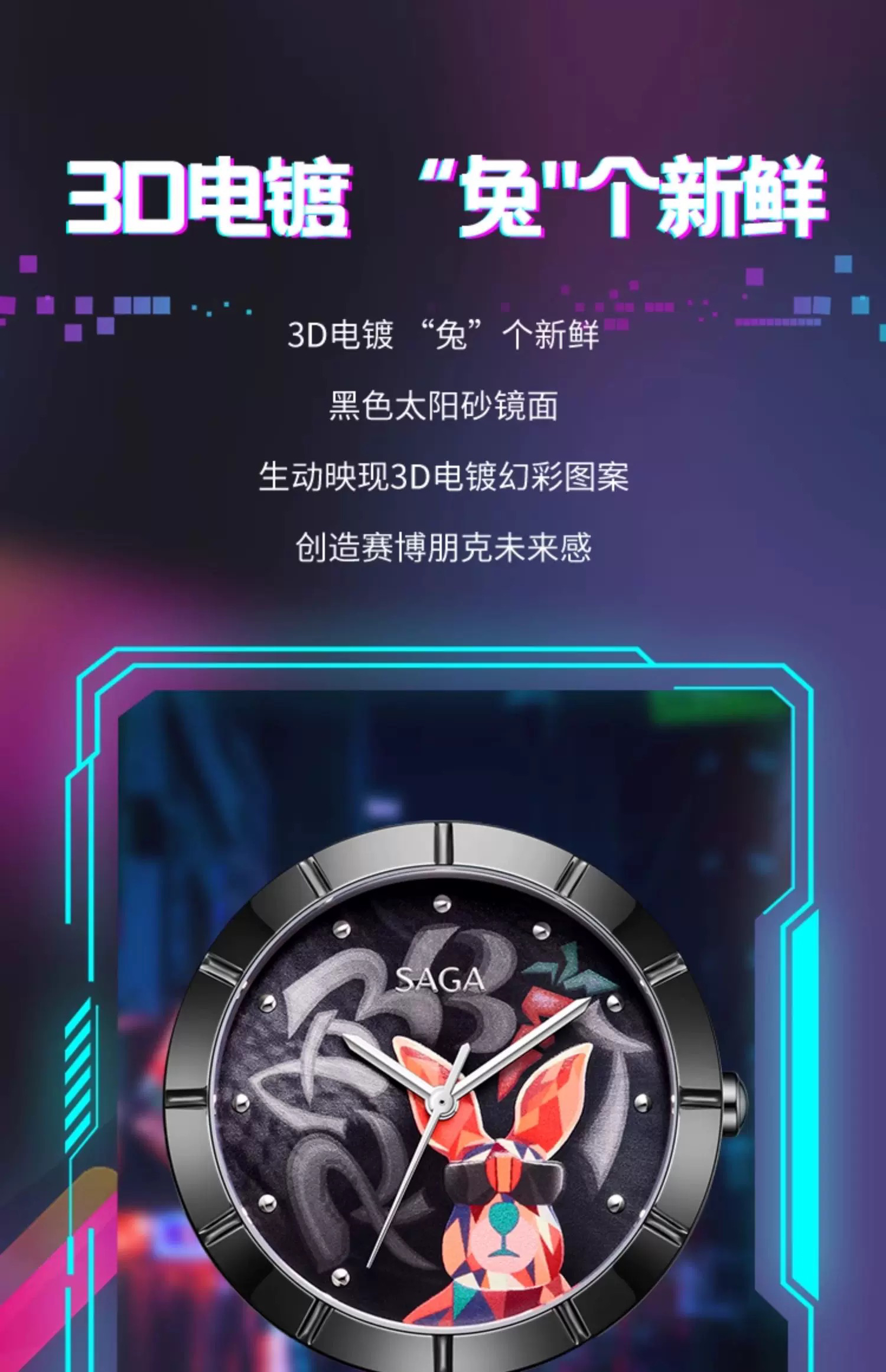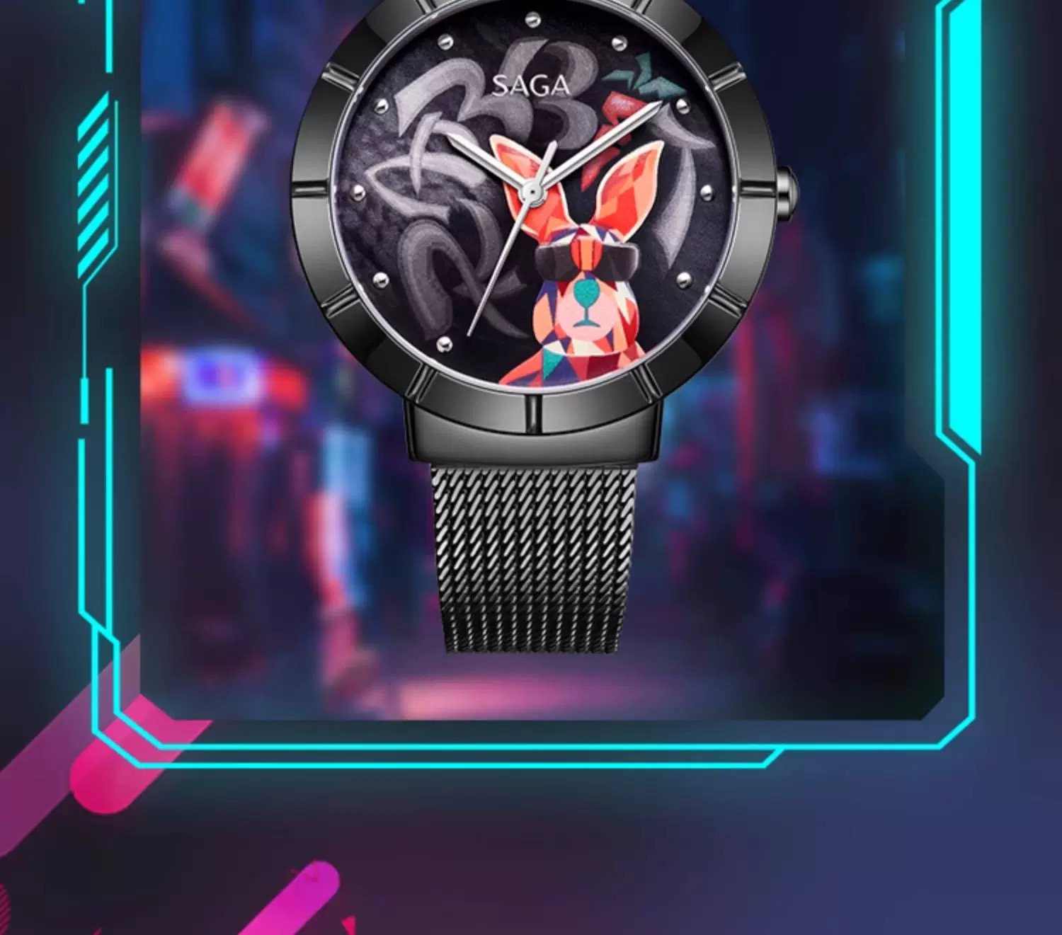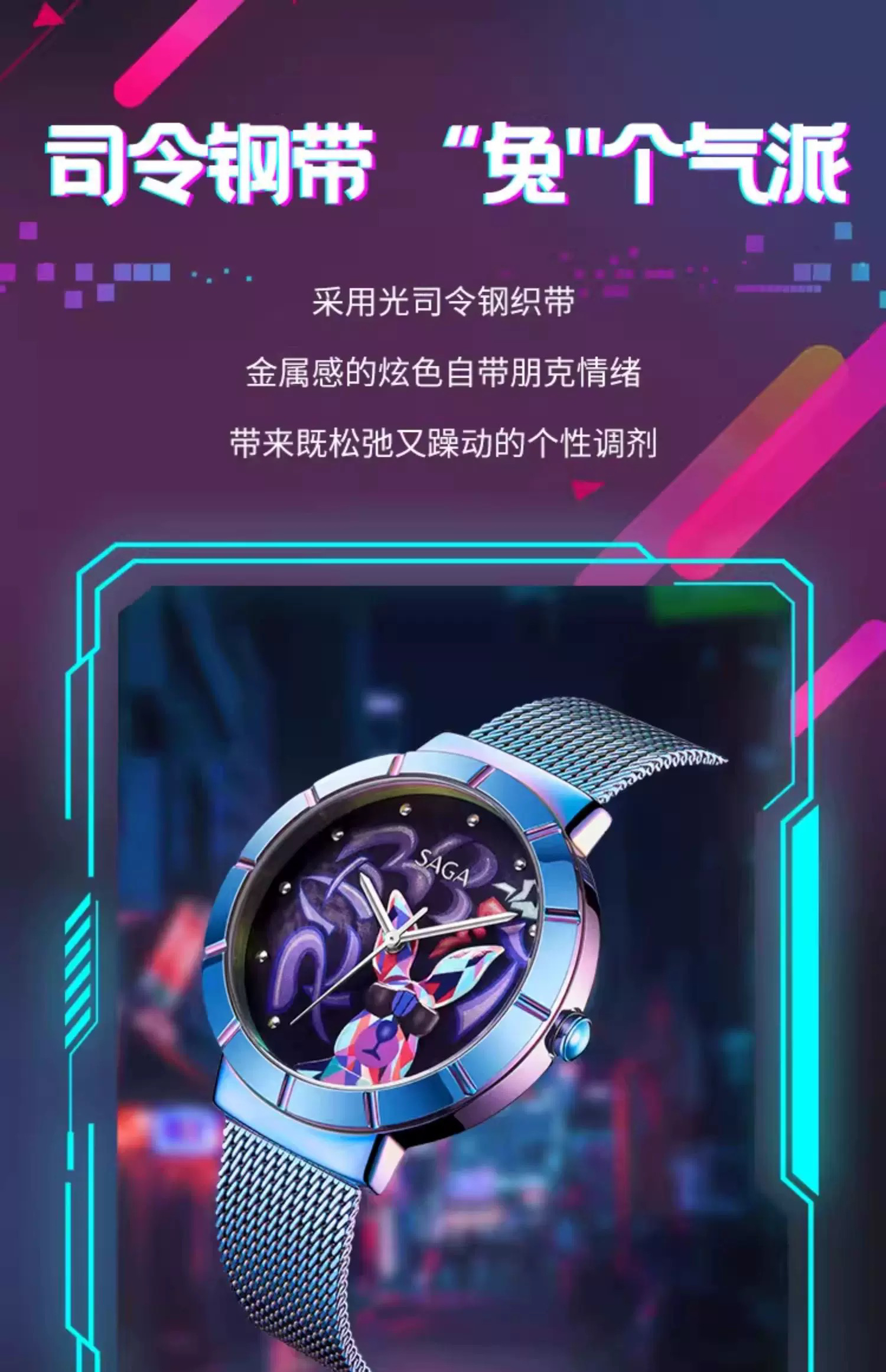SAGA世家手表女潮酷兔 时尚轻奢小众科技指针腕表高级感正品女表