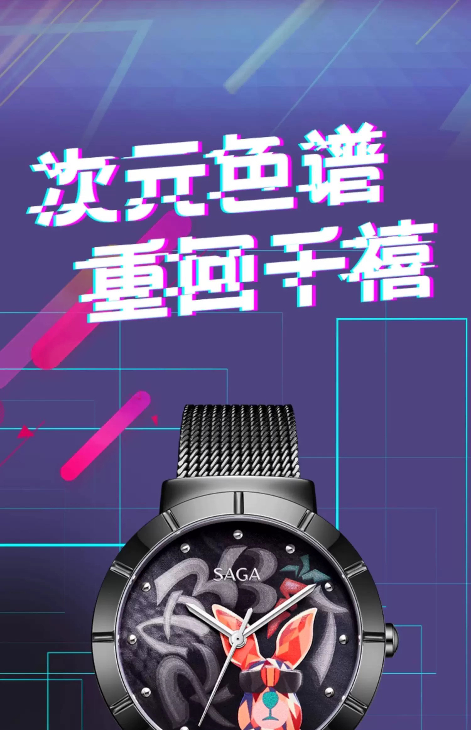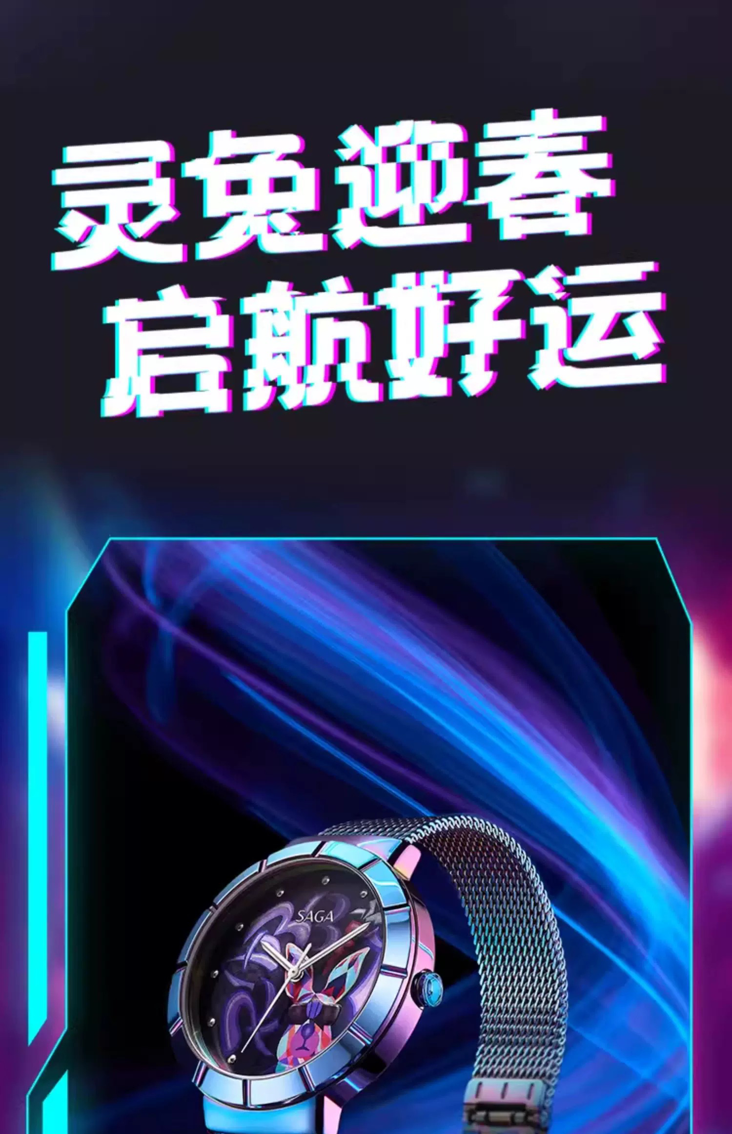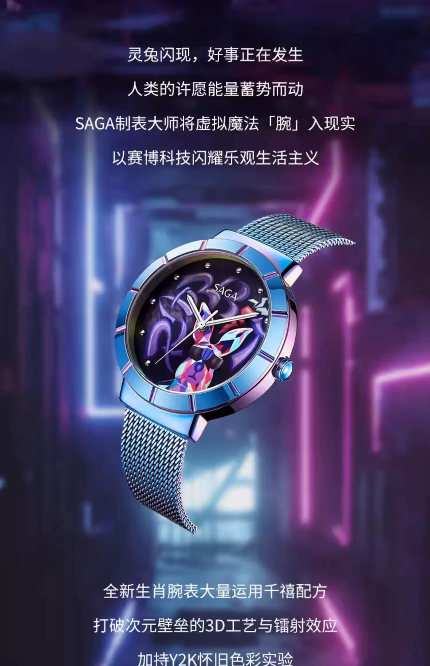 SAGA世家手表女潮酷兔 时尚轻奢小众科技指针腕表高级感正品女表