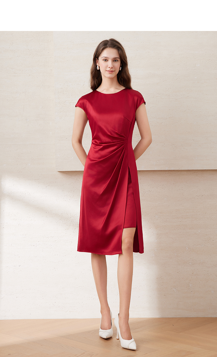 EITIE爱特爱夏季新款洋气气质高腰显瘦飞袖礼服连衣裙7777408