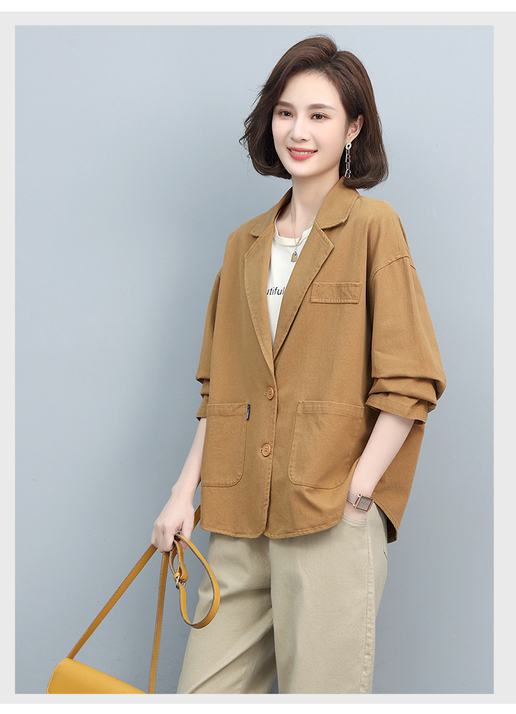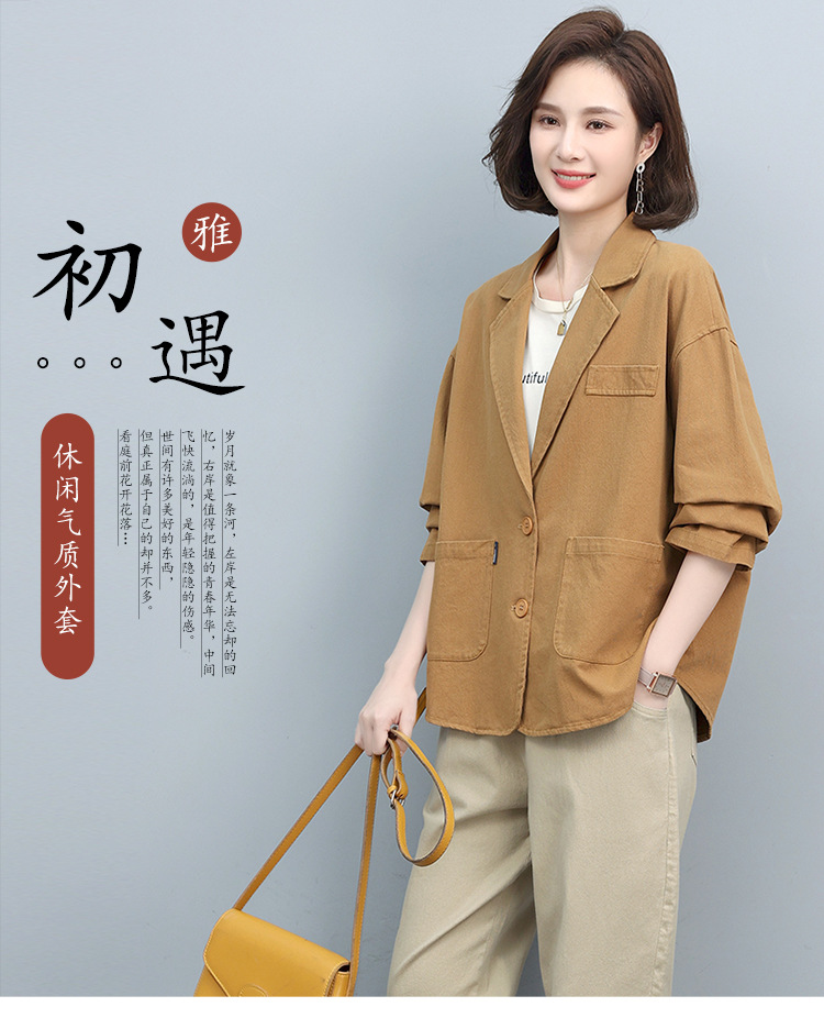 气质西装领外套女,春秋季上新时尚潮流复古文艺风纯色开衫HR-WY31179