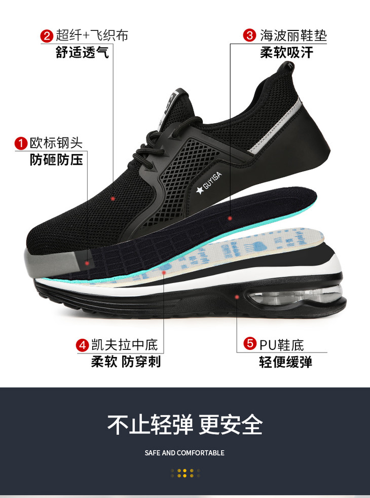 劳保鞋男安全工作鞋钢包头防砸防刺穿轻便气垫底耐磨四季款 时尚超轻透气款