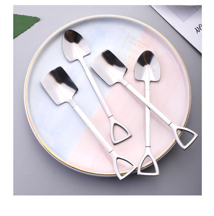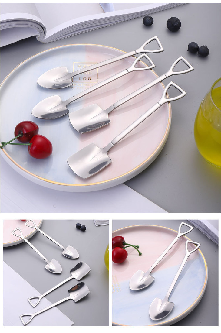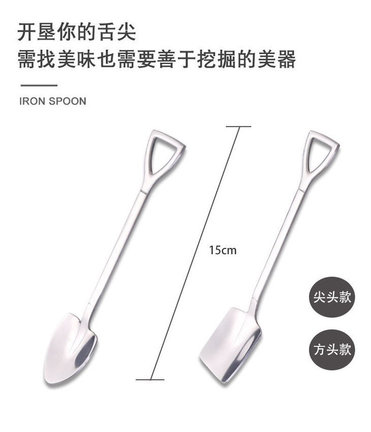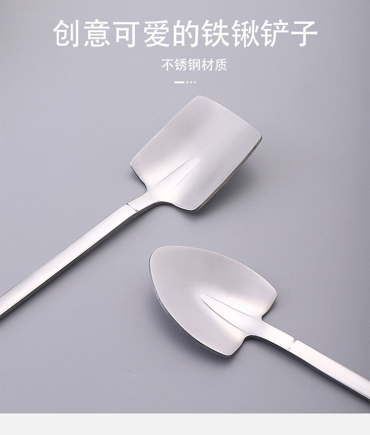 【拍1发4】创意410不锈钢西瓜勺铁锹铲甜品勺子冰淇淋雪糕勺-W仓