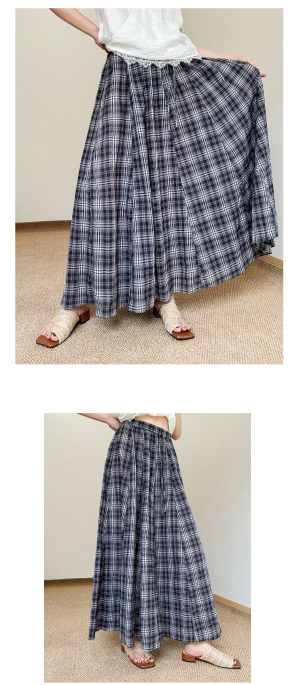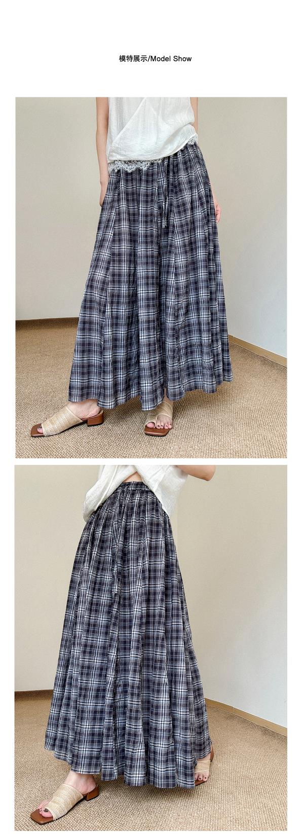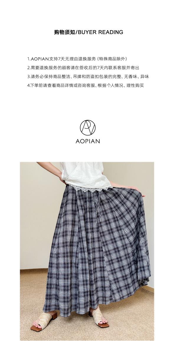 奥篇风动心动!夏日飘逸长款半身裙 纯棉经典复古格纹