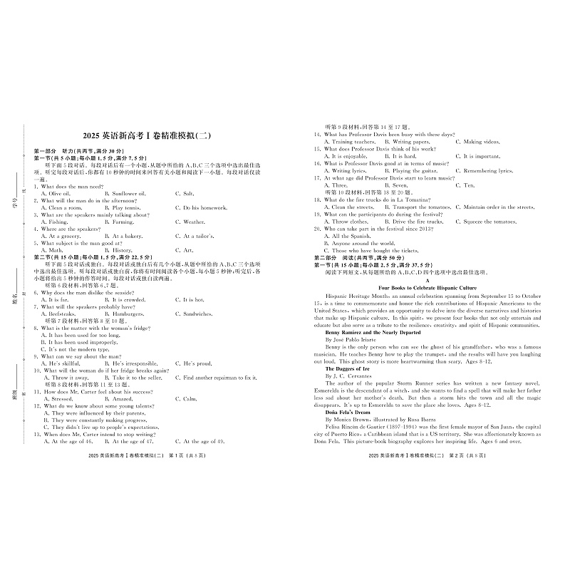 书名:2025新高考I卷精准模拟(英语)