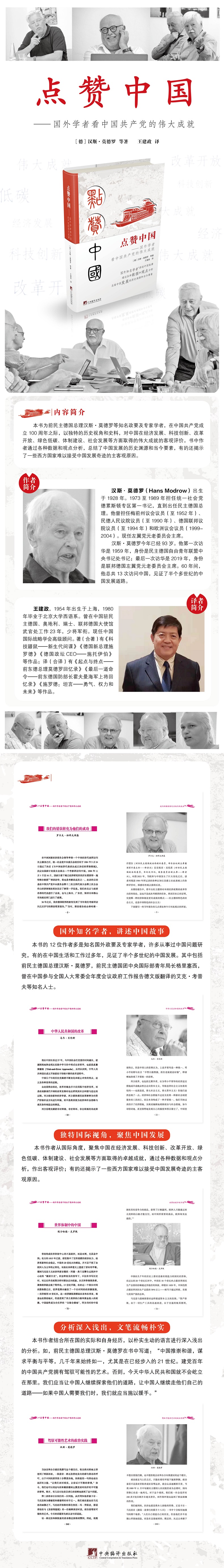 本书为前民主德国总理汉斯·莫德罗等知名政要及专家学者,在我党成立100周年之际,以独特的历史视角和史料,对中国在经济发展、科技创新、改革开放、绿色低碳、体制建设、社会发展等方面取得的伟大成就的客观评价。书中作者通过各种数据和观点分析,总结了中国发展的历史渊源和当今要素,有的还揭示了一些西方国家难以接受中国发展奇迹的主客观原因。