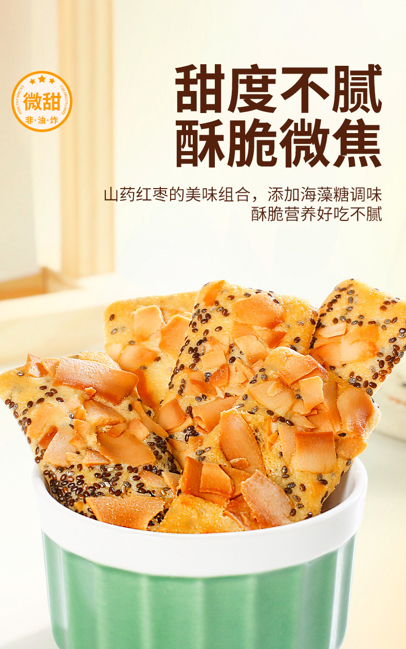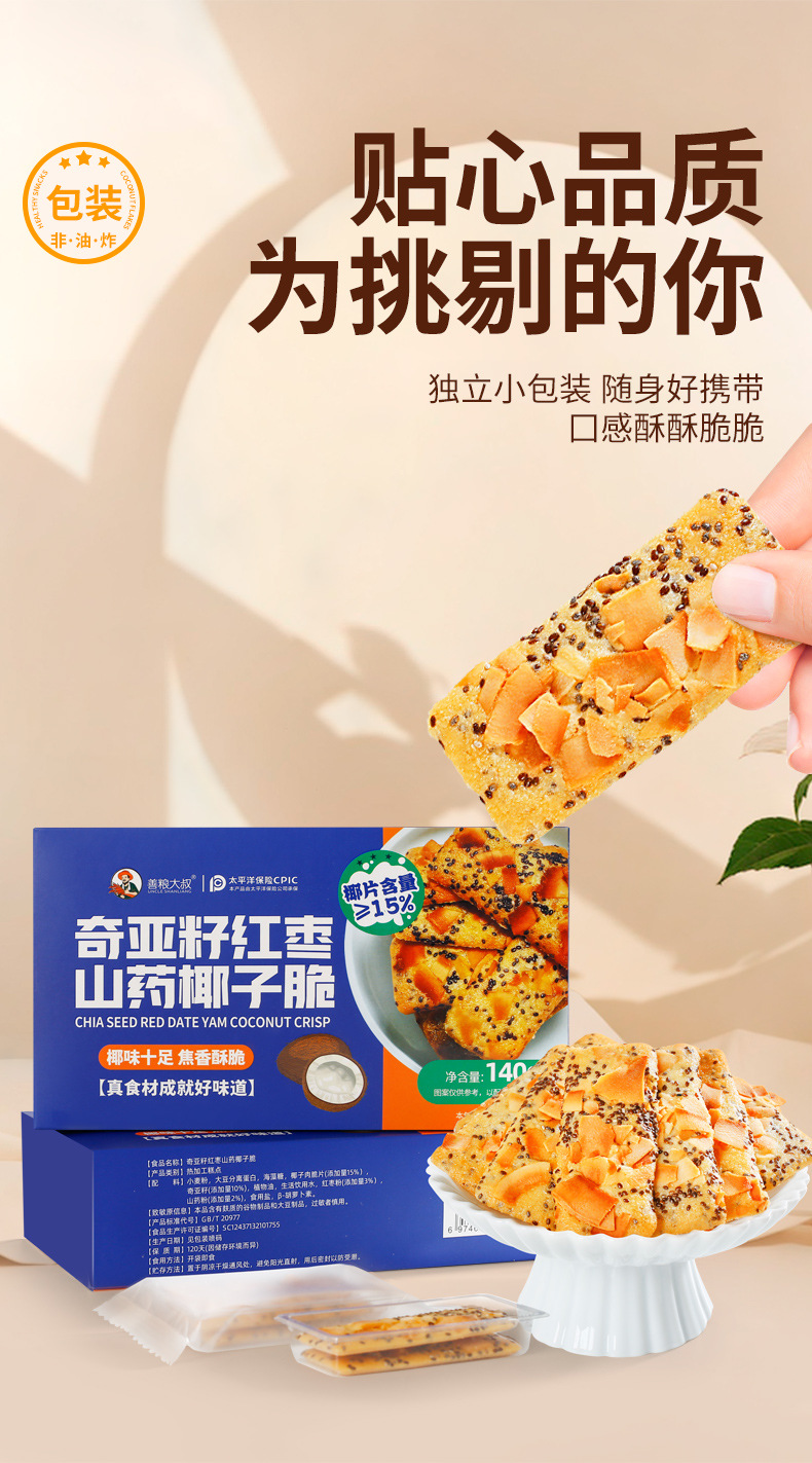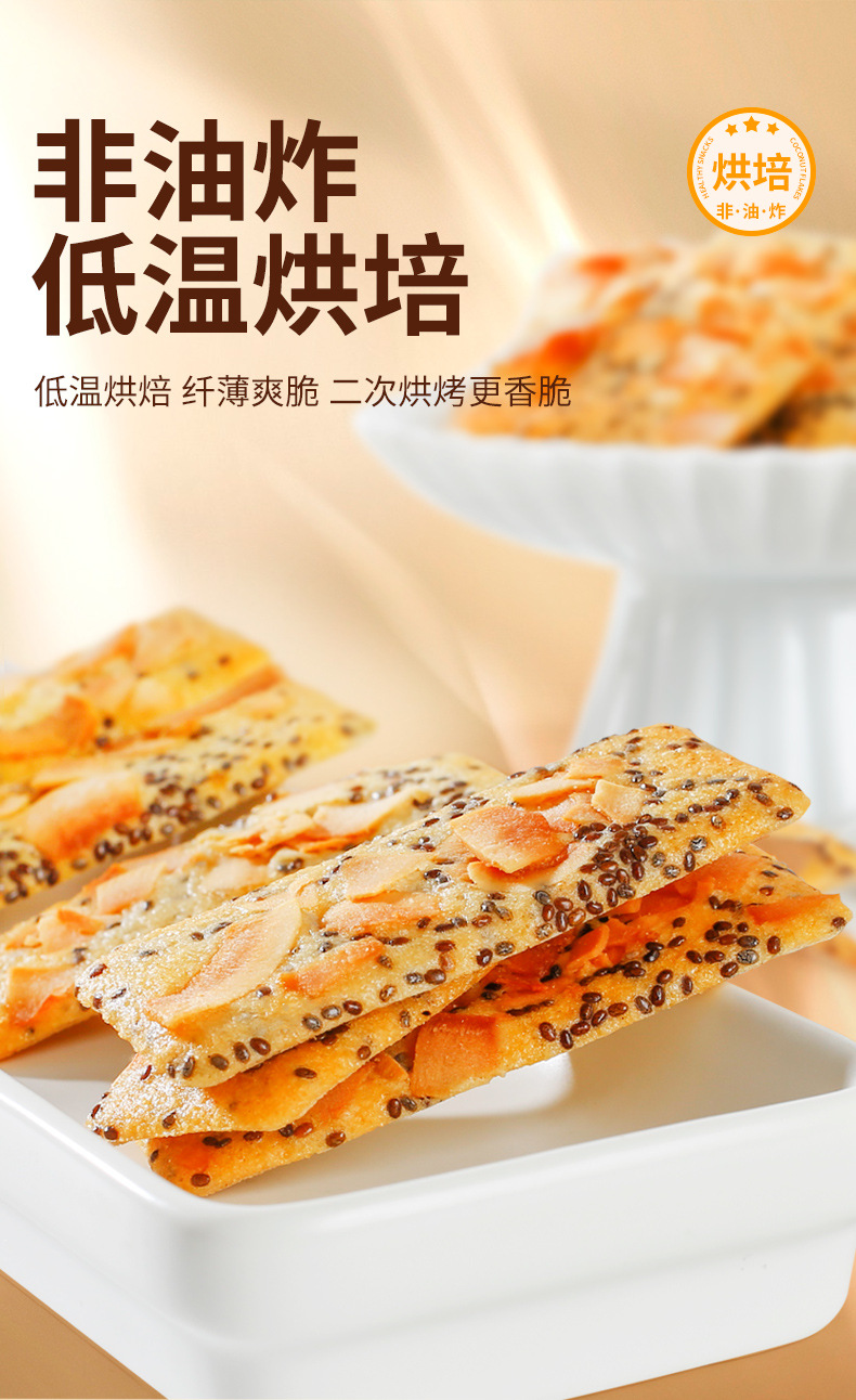 【微甜不腻!口感丰富】善粮大叔椰子脆片薄片饼干140g即食烘烤零食小吃椰香原味香酥。xb