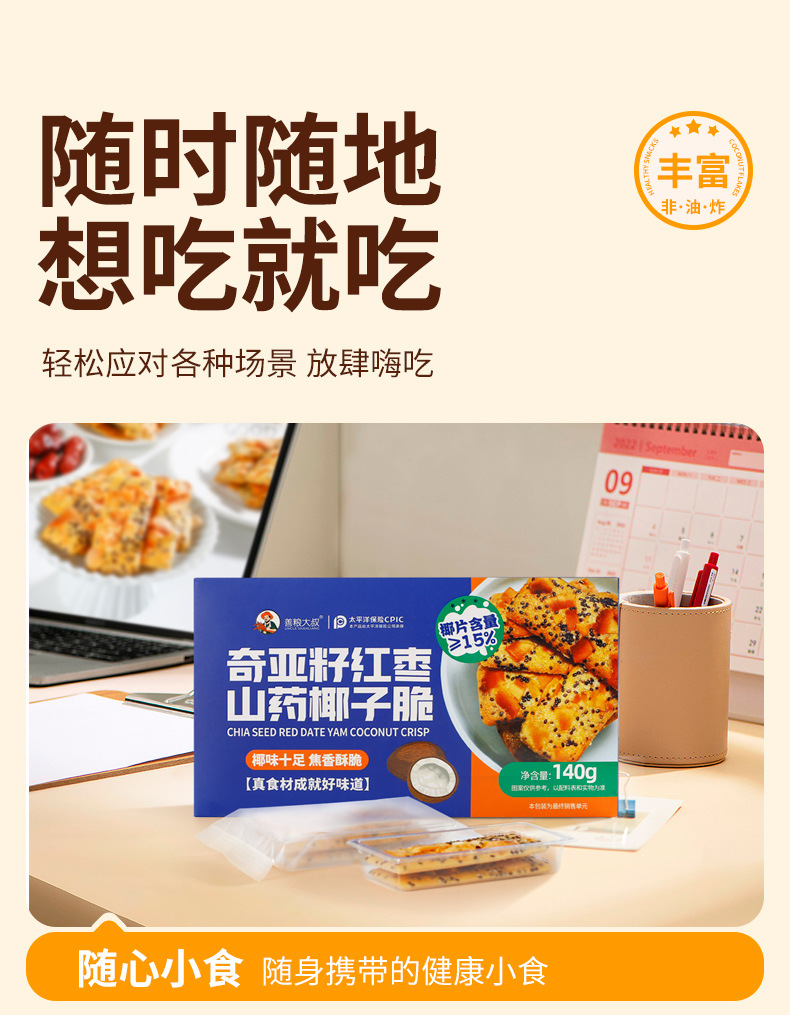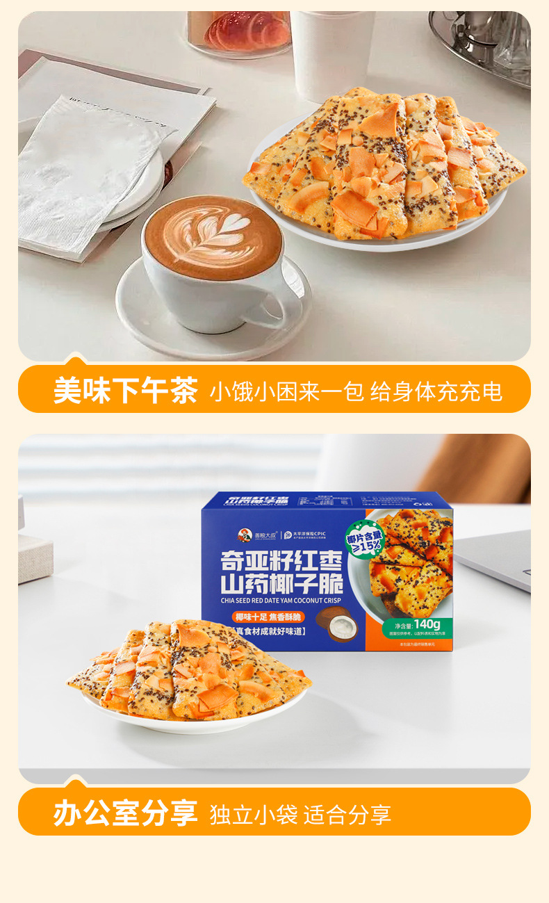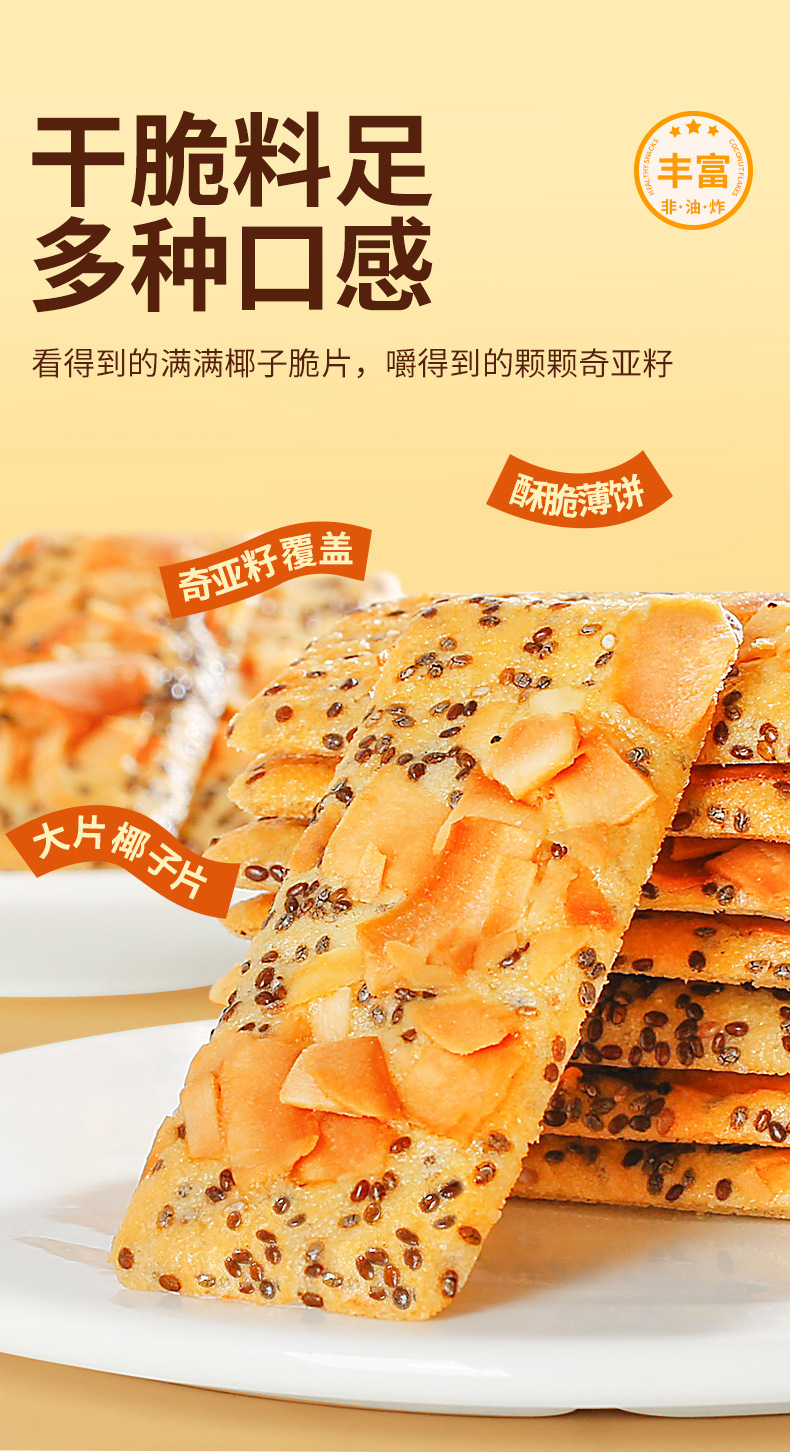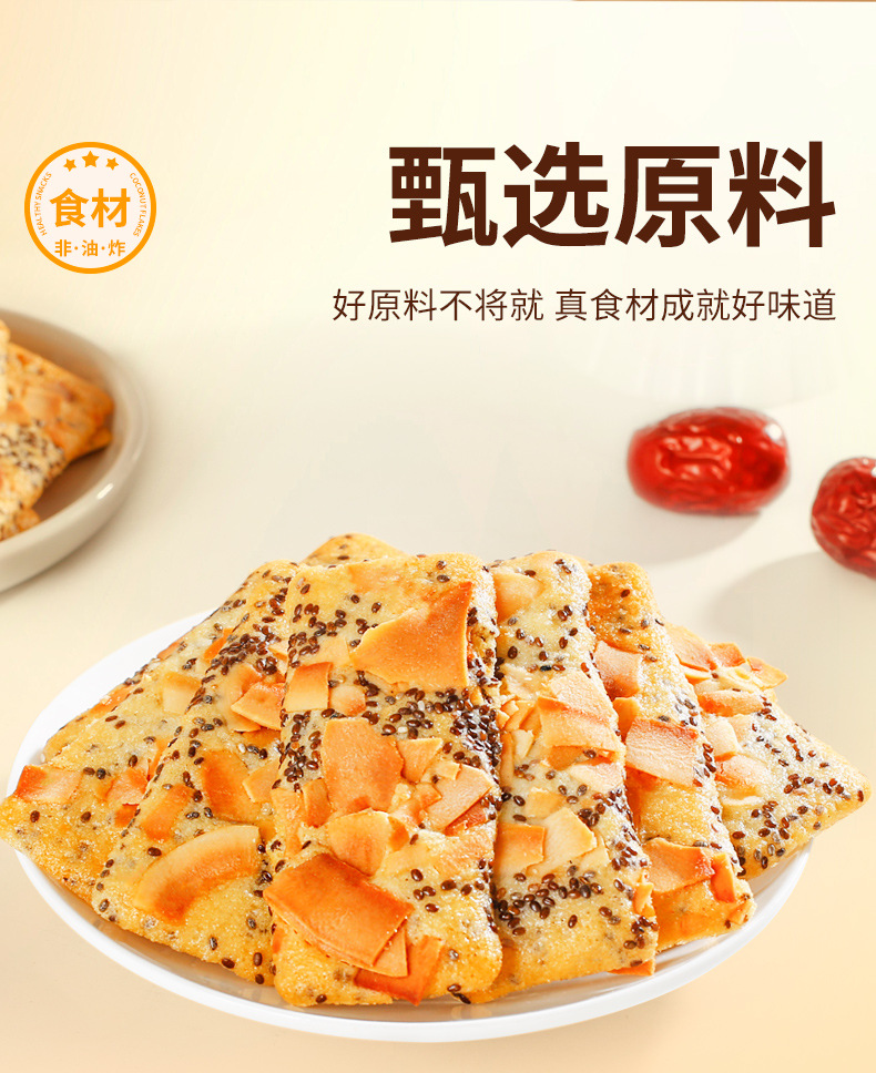 【微甜不腻!口感丰富】善粮大叔椰子脆片薄片饼干140g即食烘烤零食小吃椰香原味香酥。xb