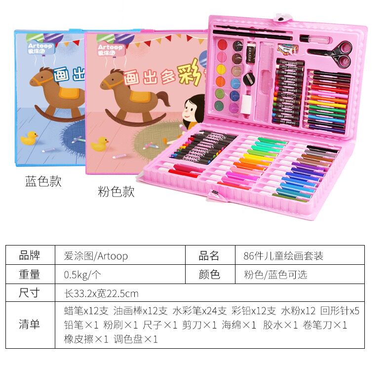 爱涂图水彩笔无毒可水洗儿童画笔套装女美术幼儿园学生绘画工具初