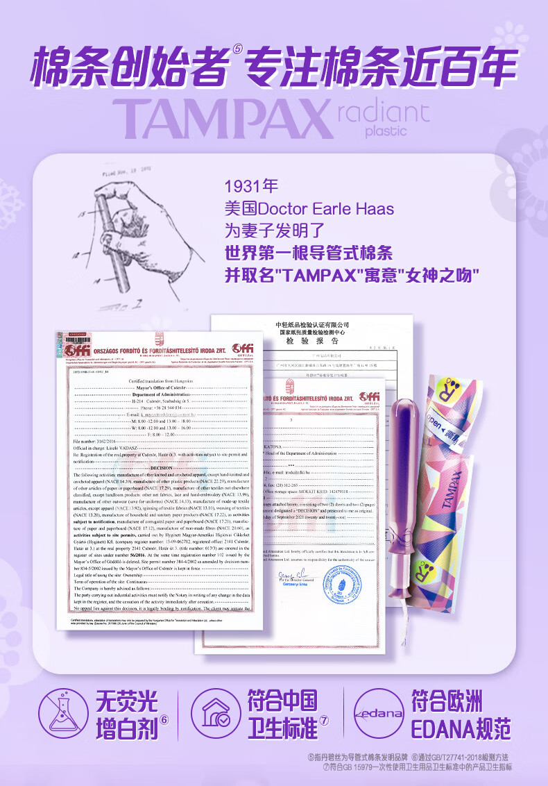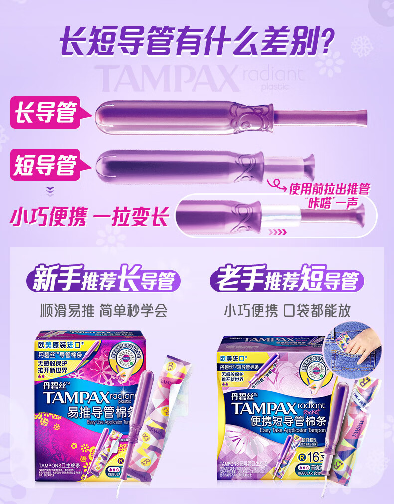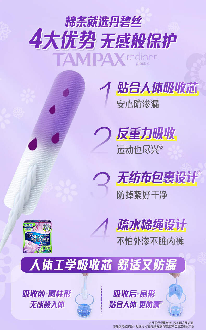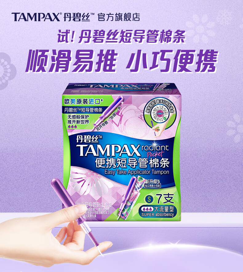 丹碧丝便携短导管内置式卫生巾卫生棉条大流量7支
