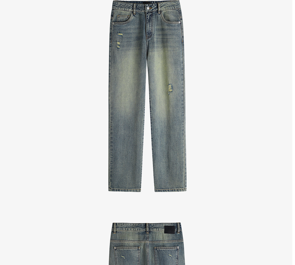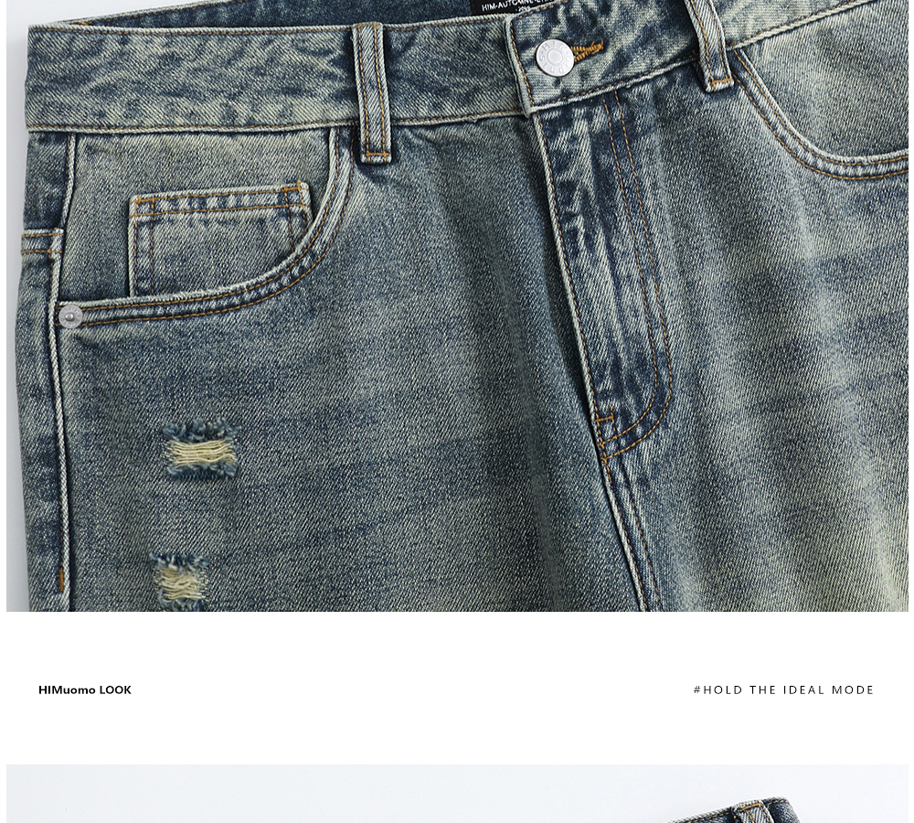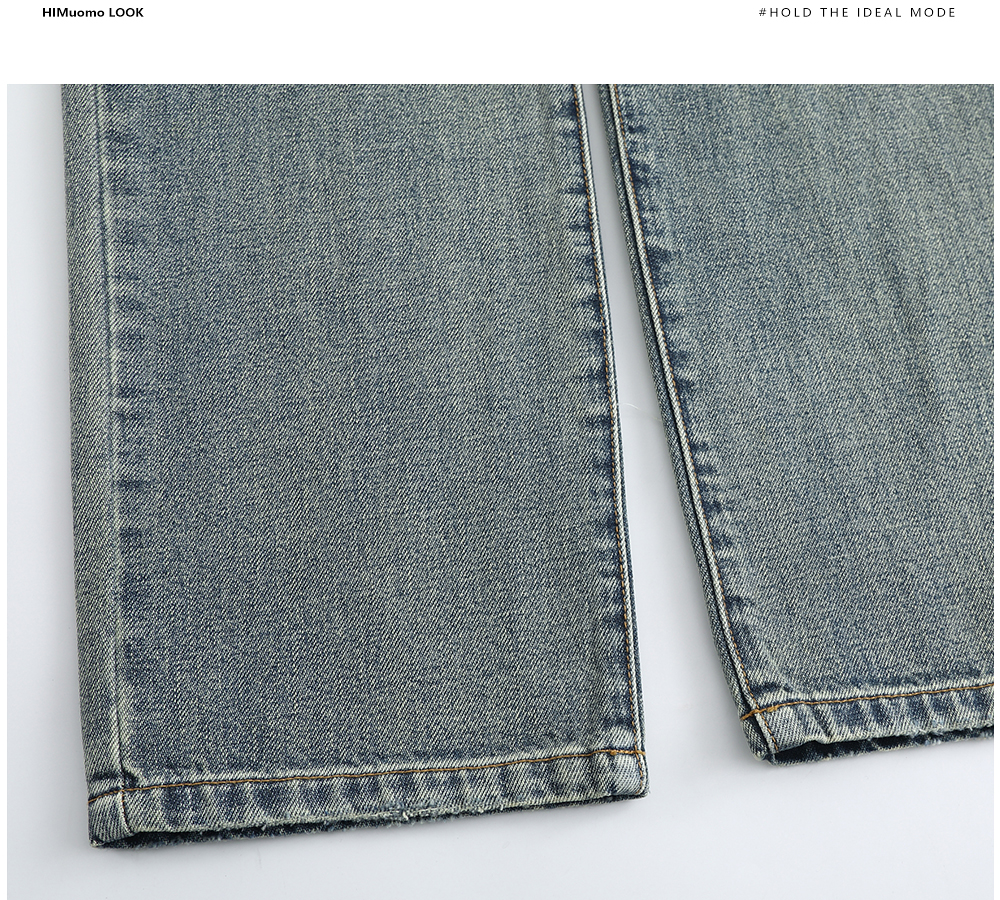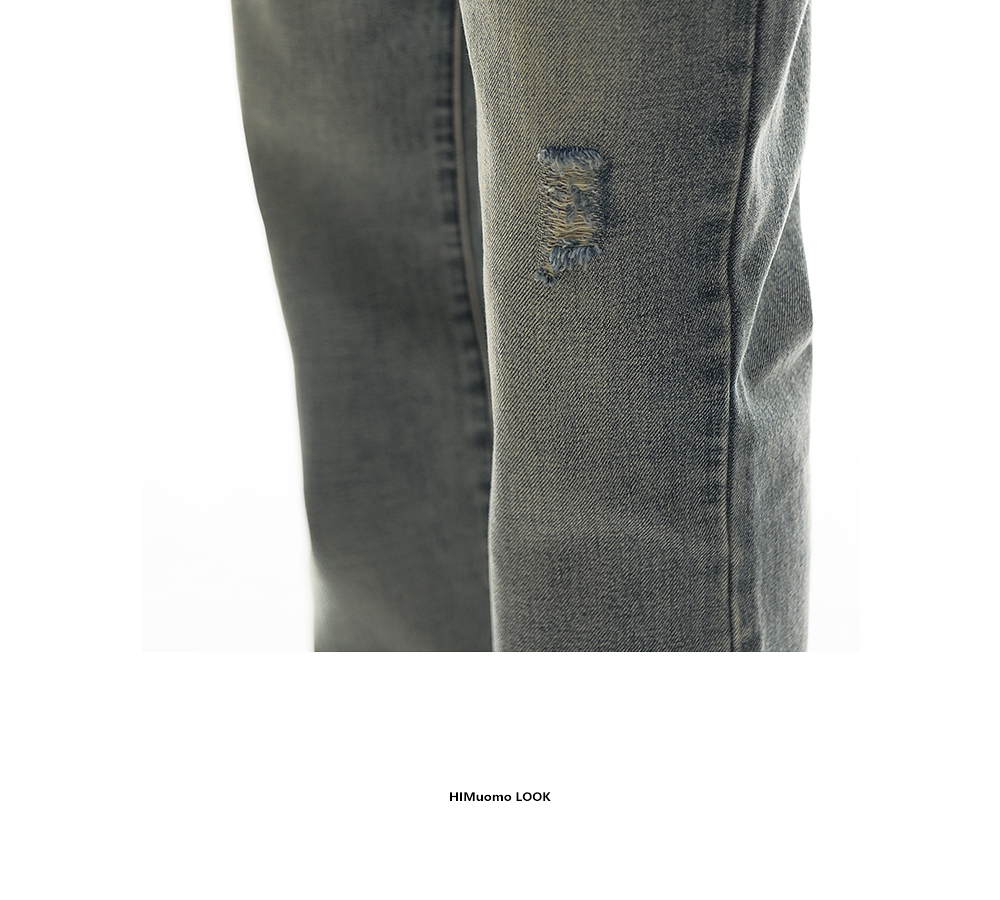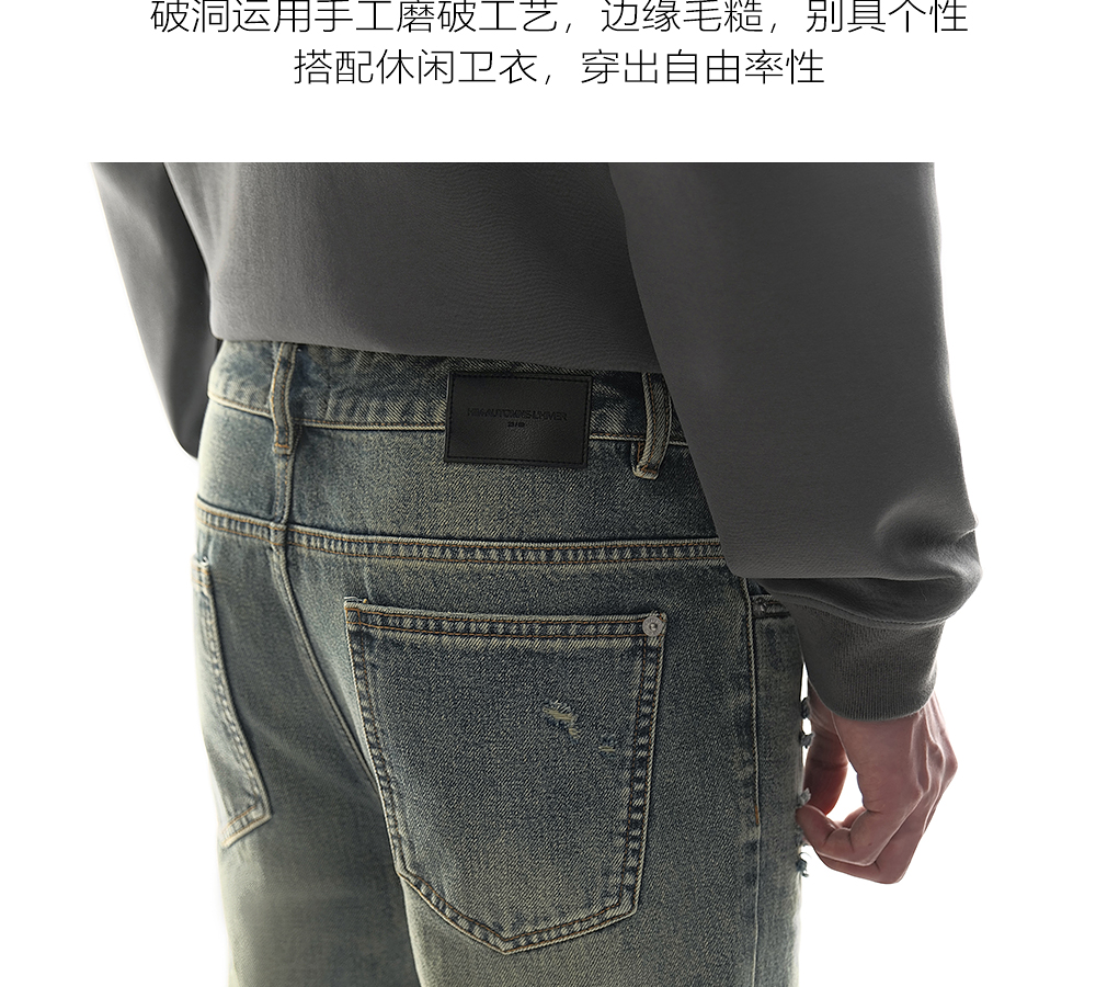 HIM漢崇 做旧割破舒适休闲牛仔裤男复古宽松水洗直筒裤 2025秋季