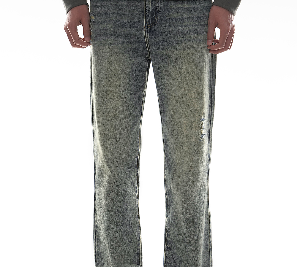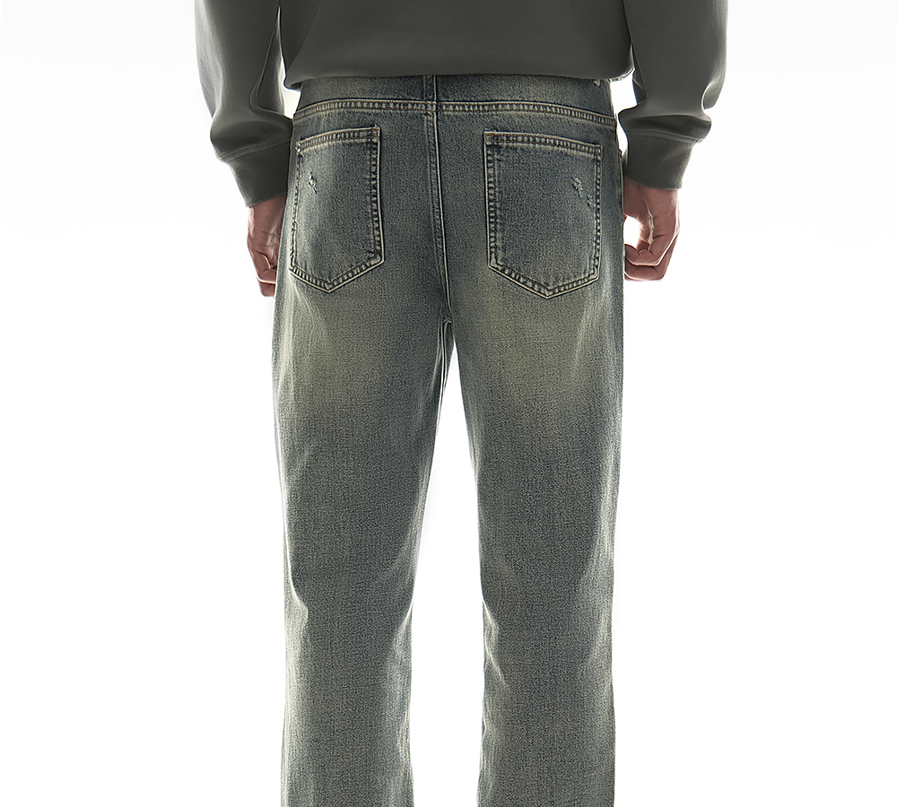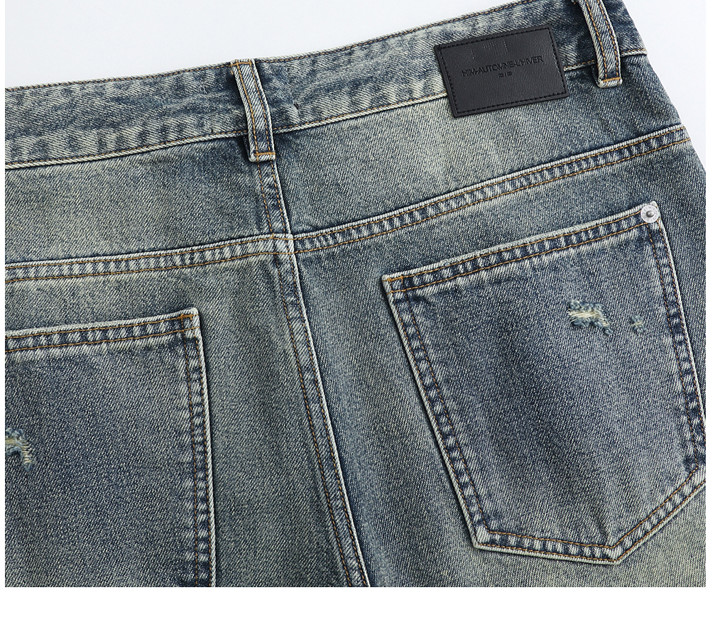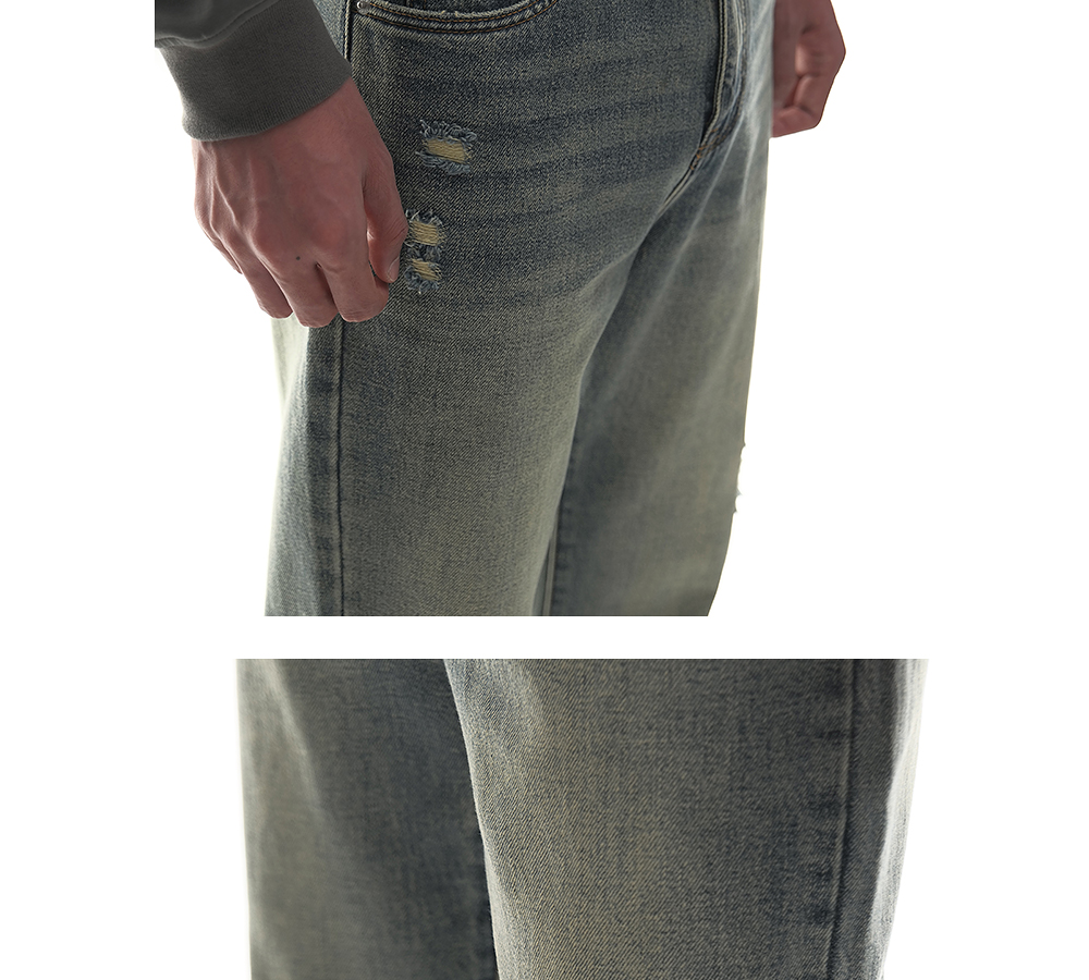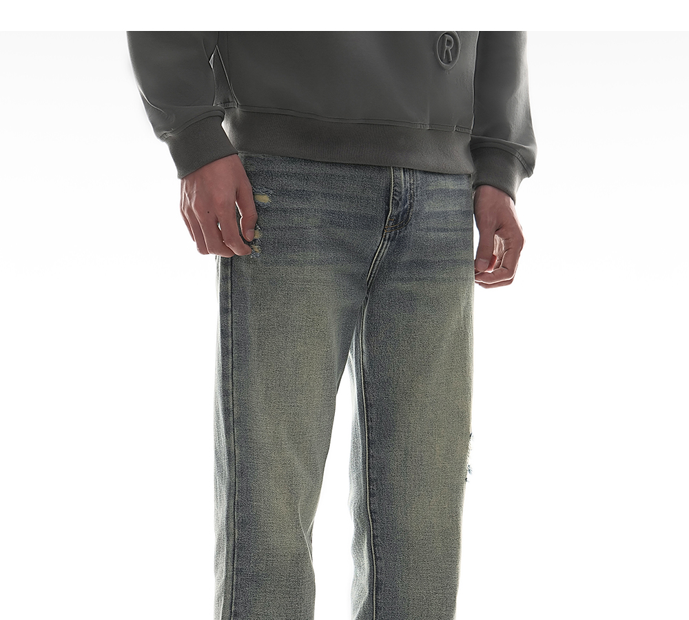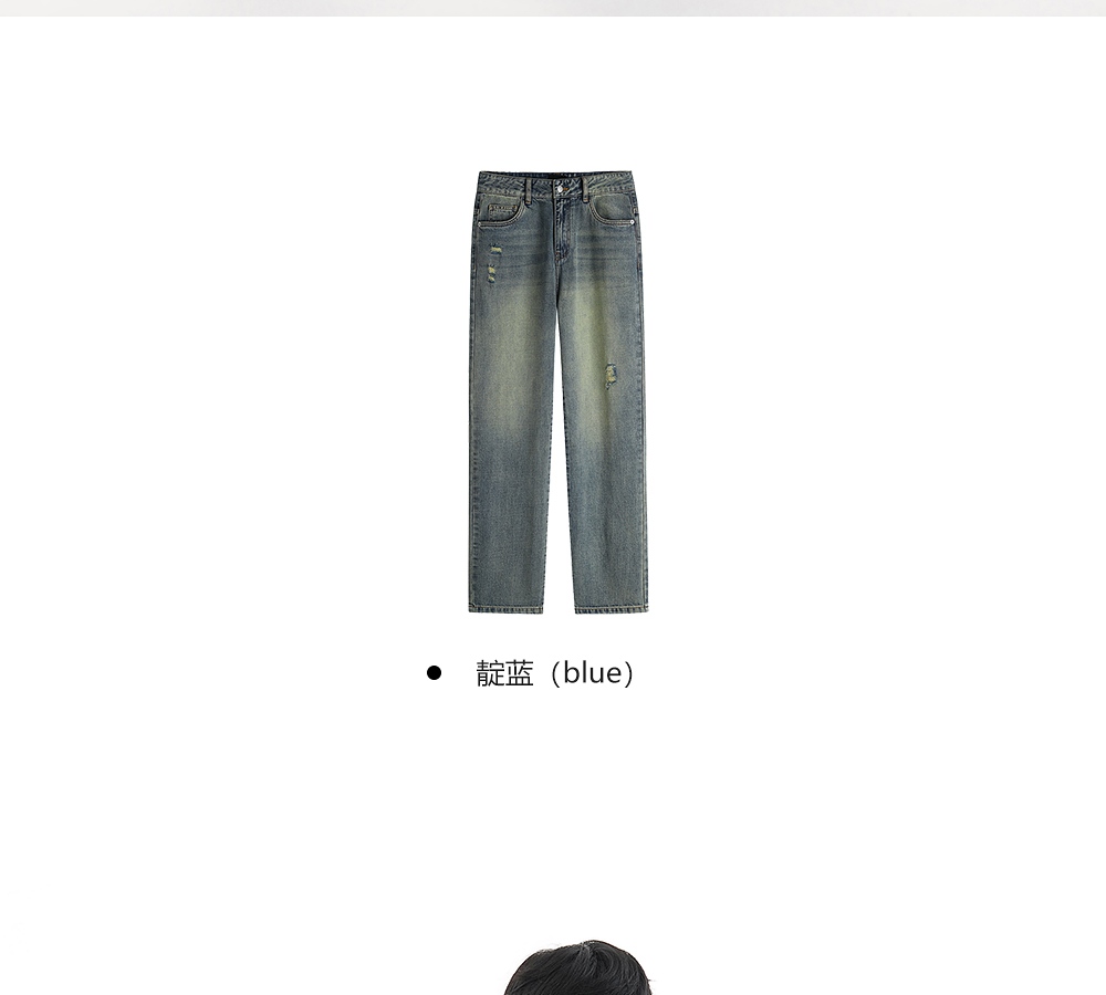 HIM漢崇 做旧割破舒适休闲牛仔裤男复古宽松水洗直筒裤 2025秋季