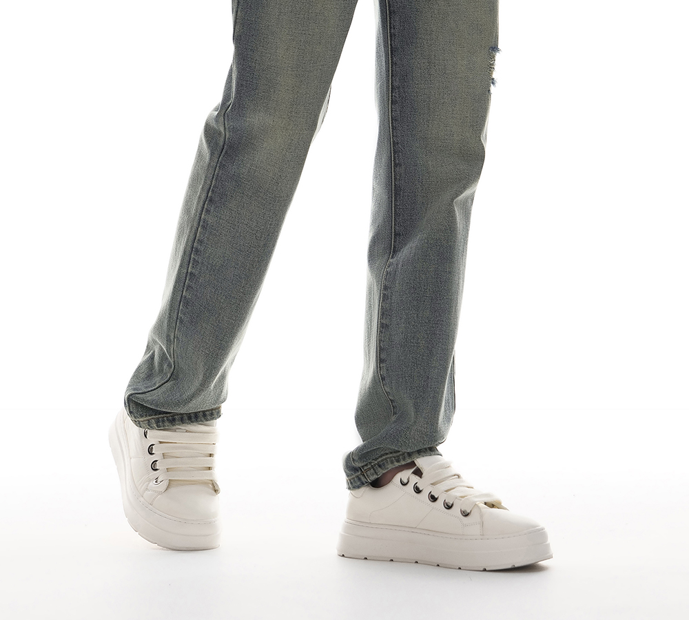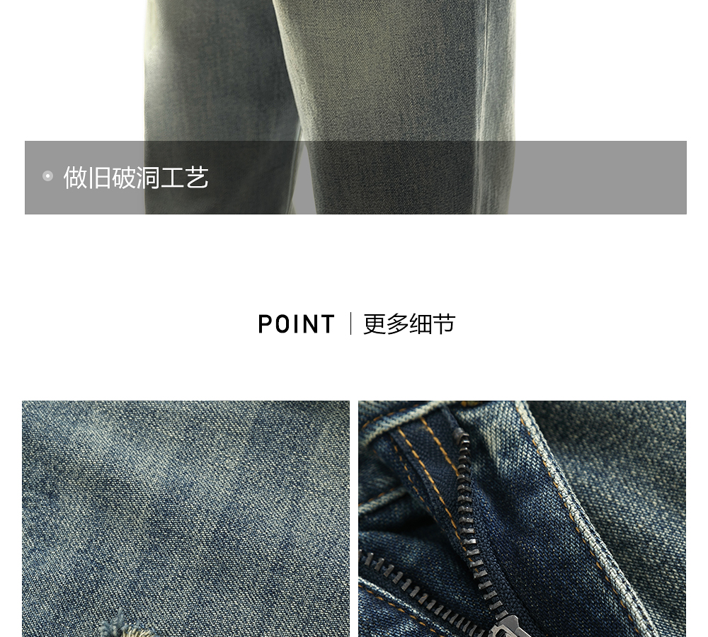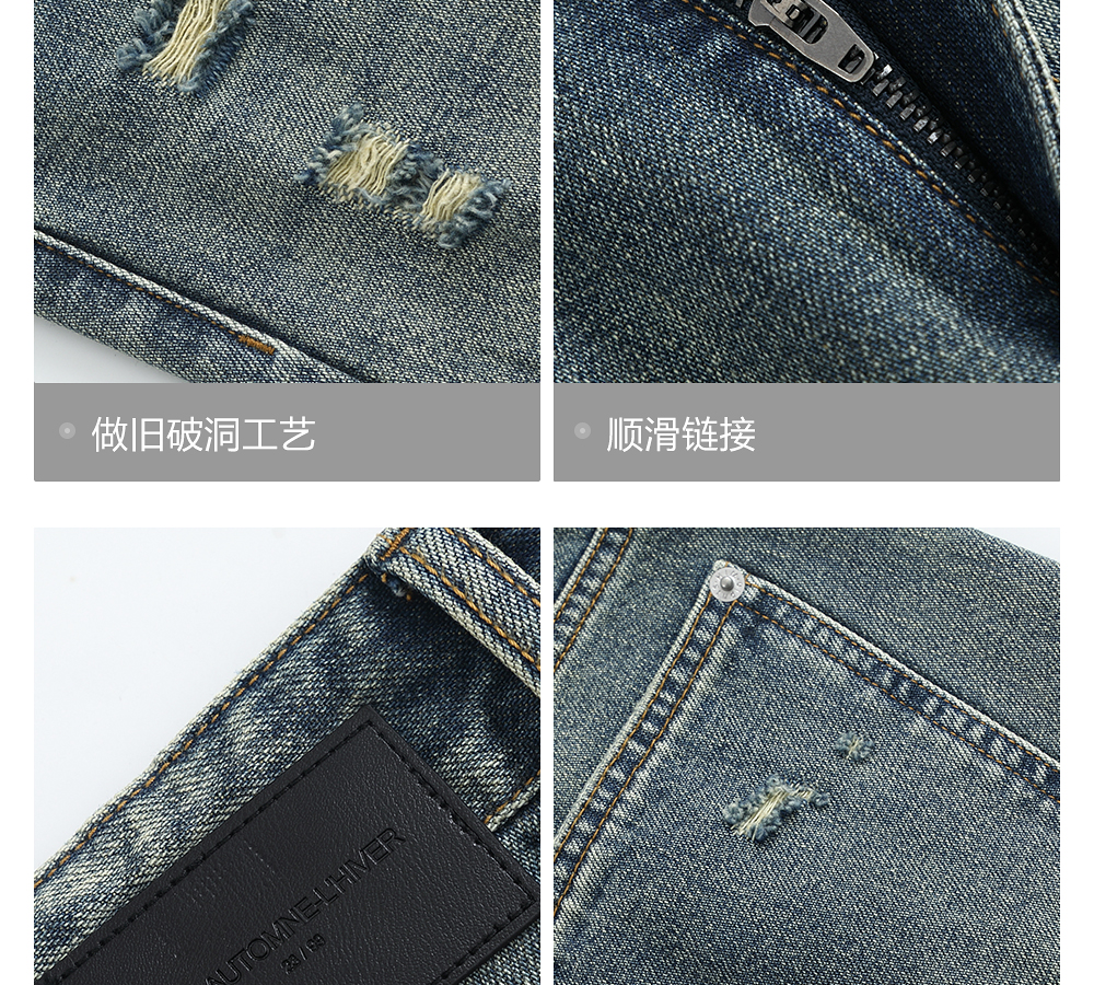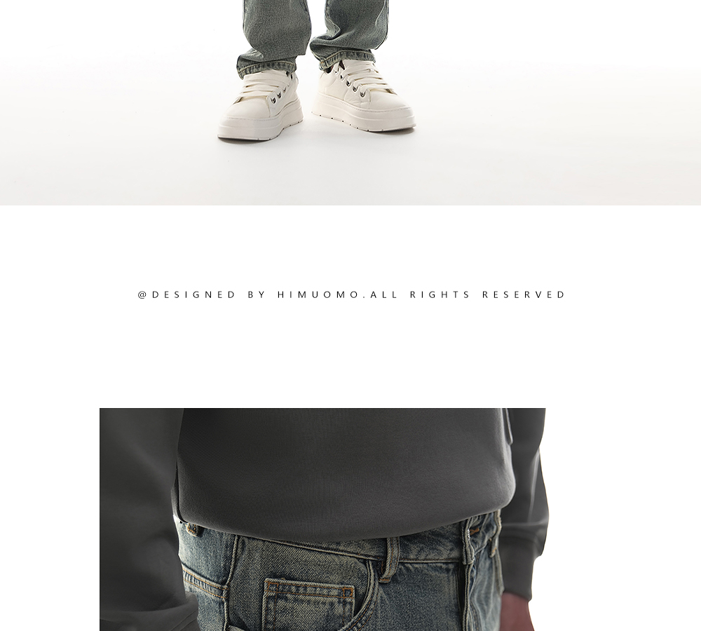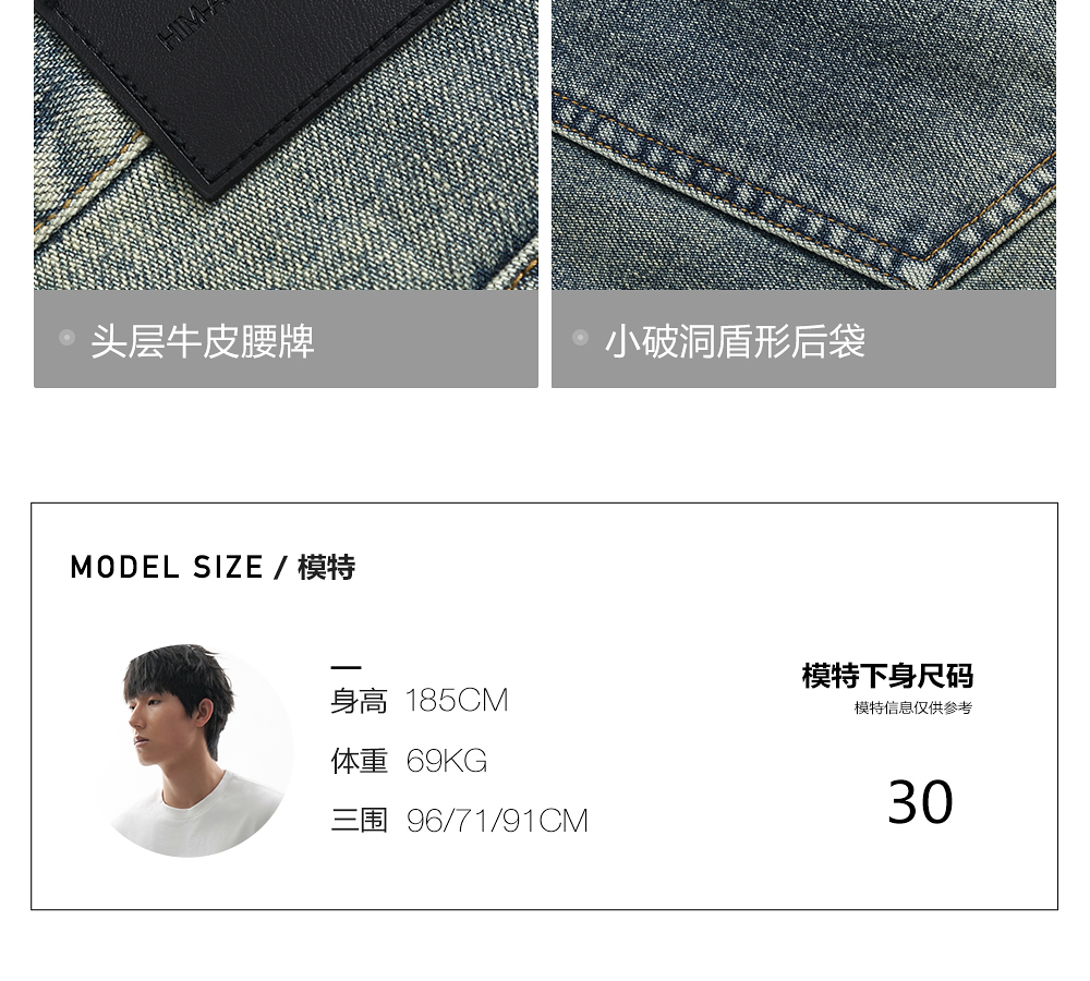 HIM漢崇 做旧割破舒适休闲牛仔裤男复古宽松水洗直筒裤 2025秋季