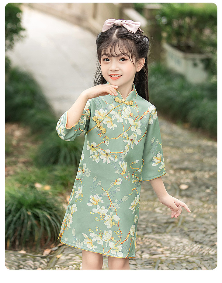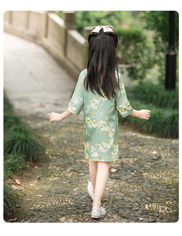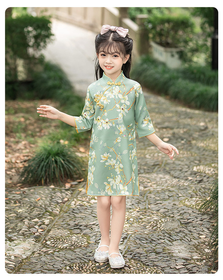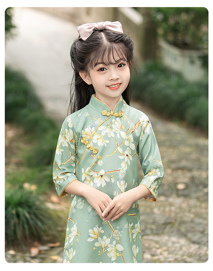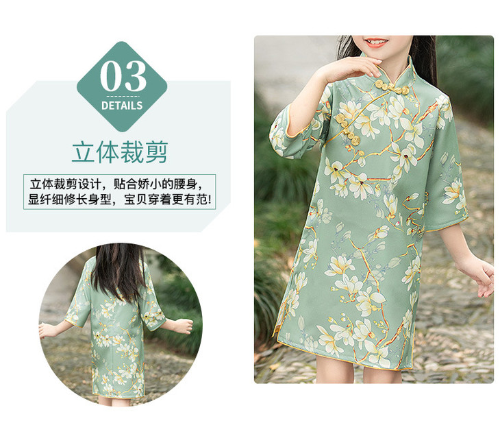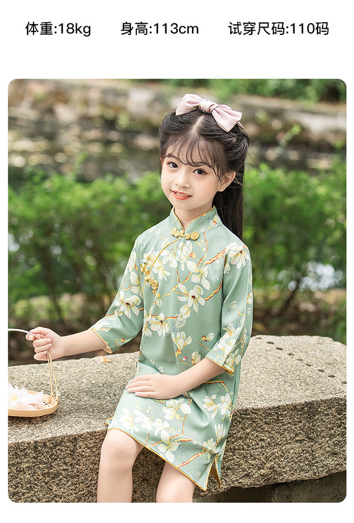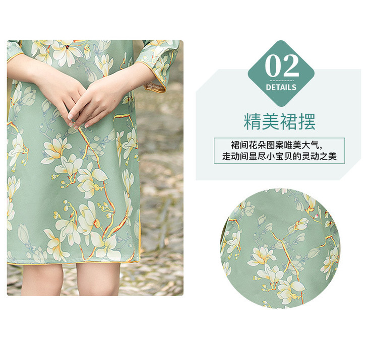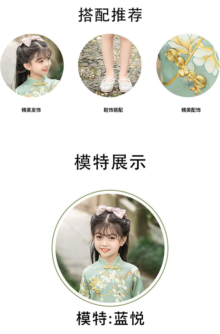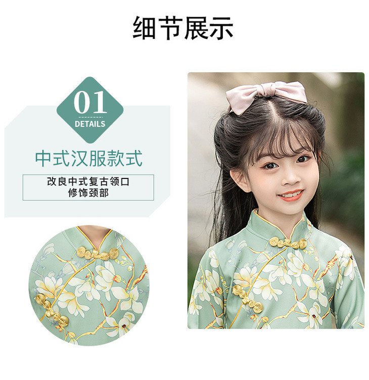 女童汉服中式改良旗袍,演出服儿童古风仙连衣裙PJX-BD中袖玉兰