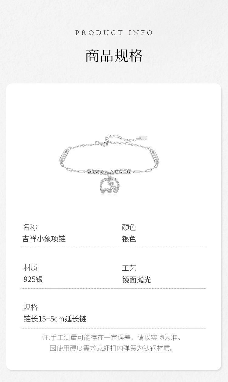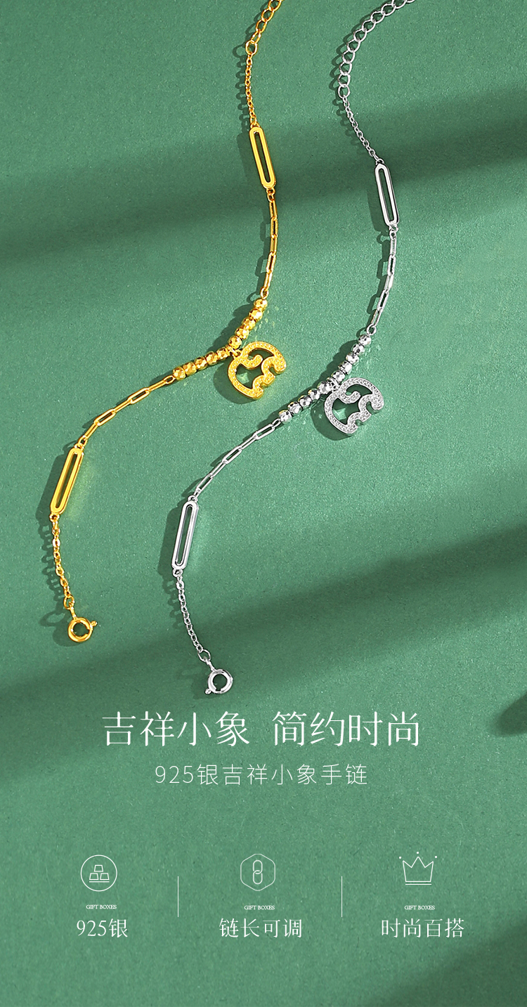 Winy925纯银吉祥小象手链送女友闺蜜节日生日礼物