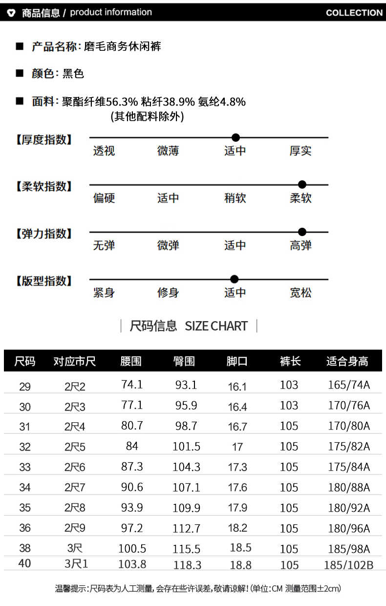 面料:56.3%聚酯纤维38.9%粘纤4.8%氨纶(其他配料除外)