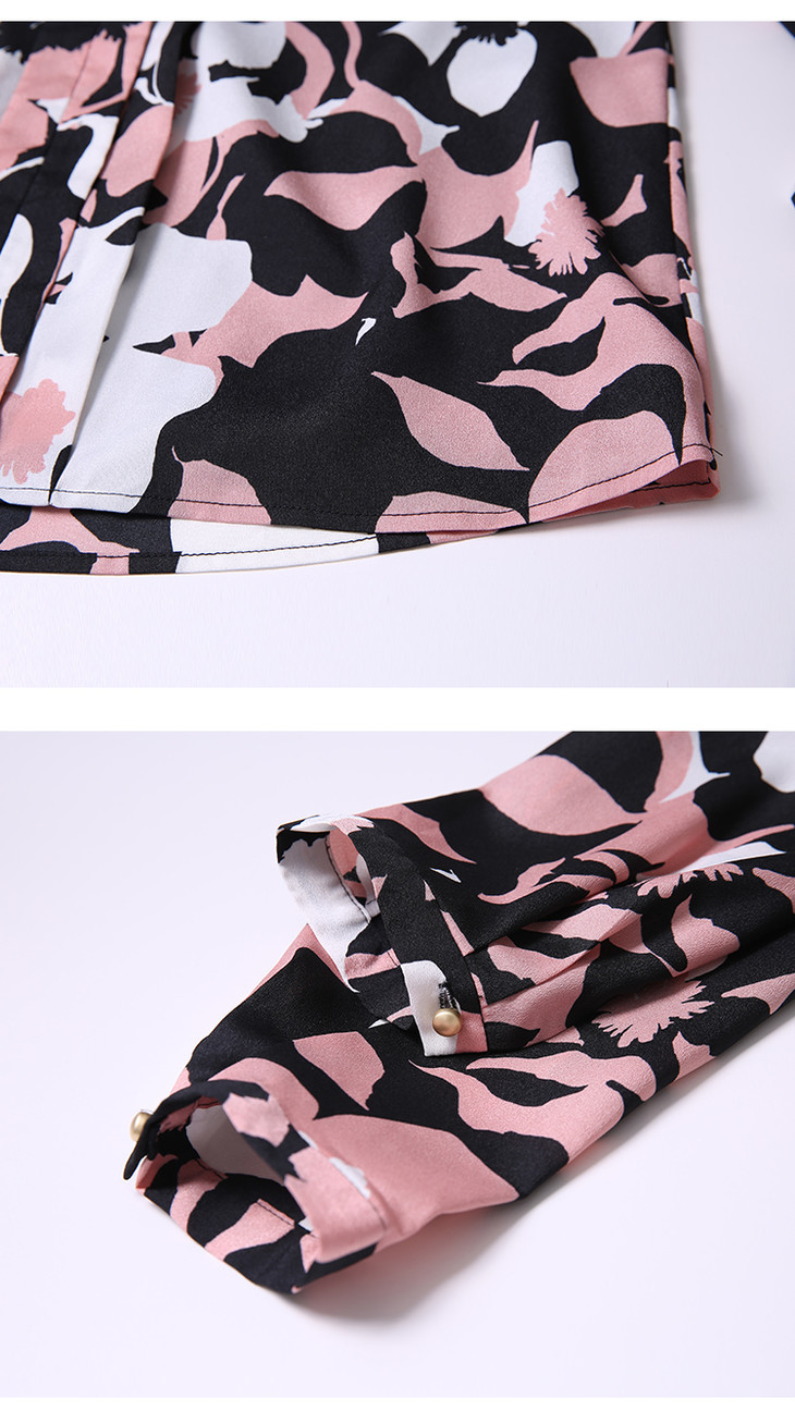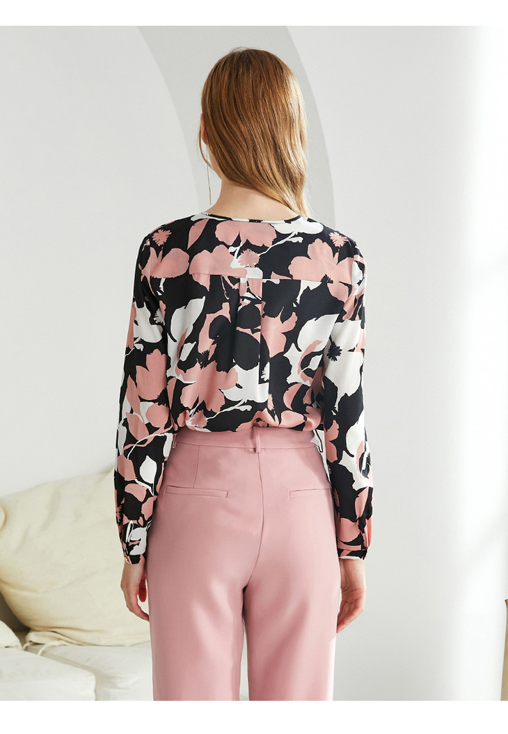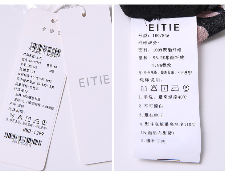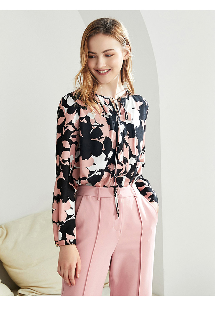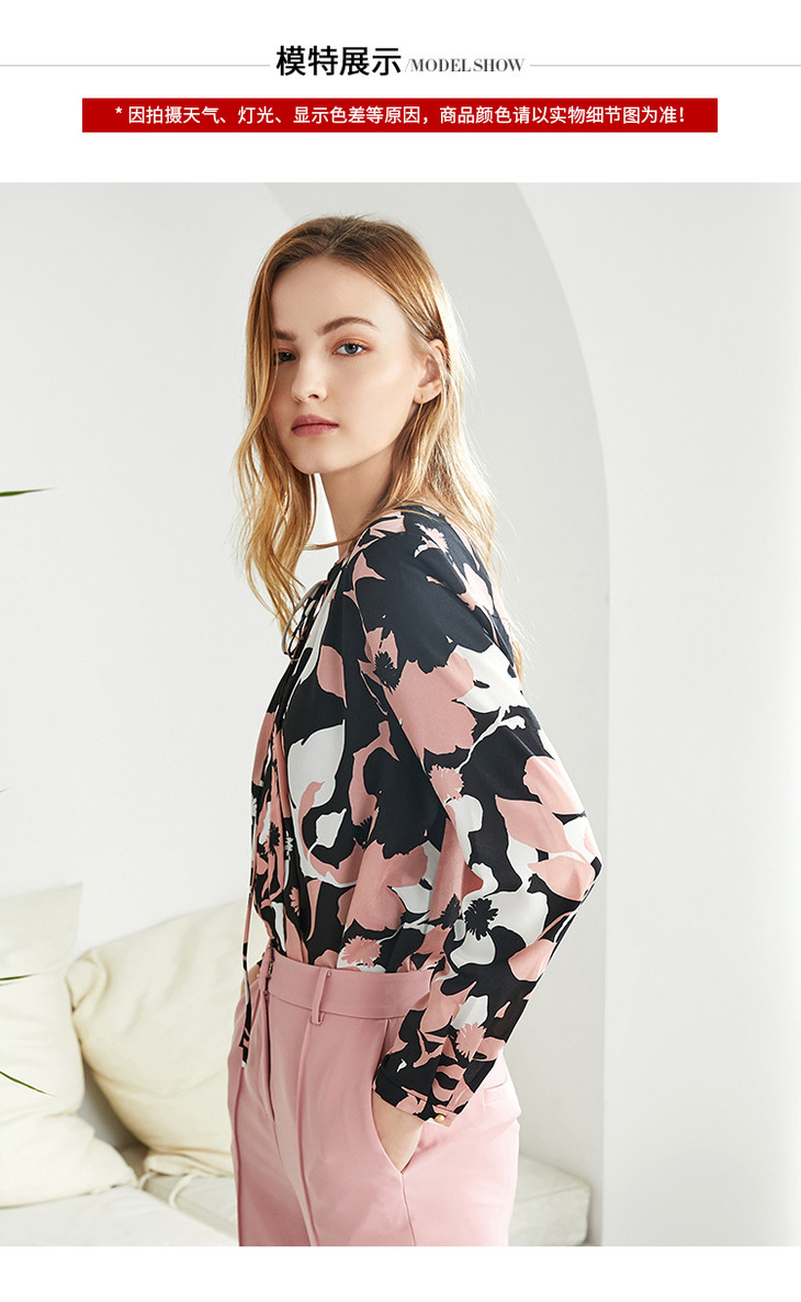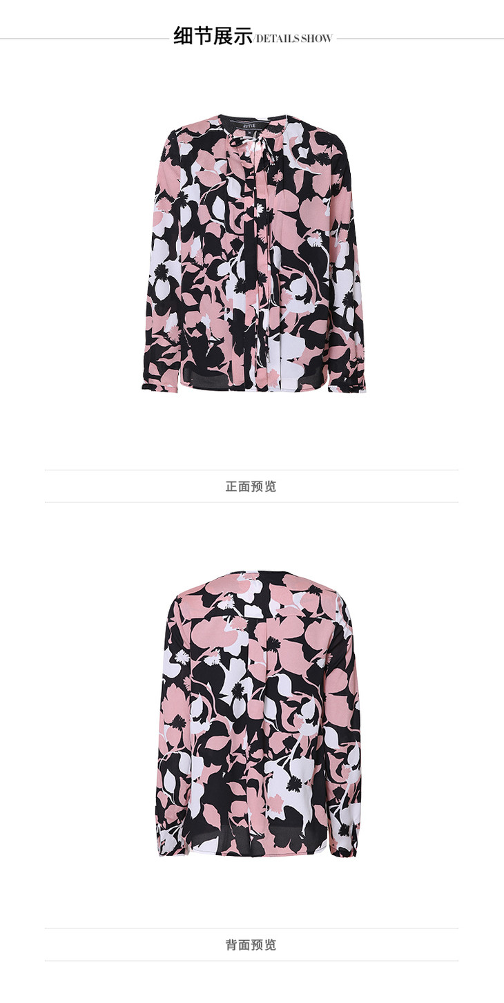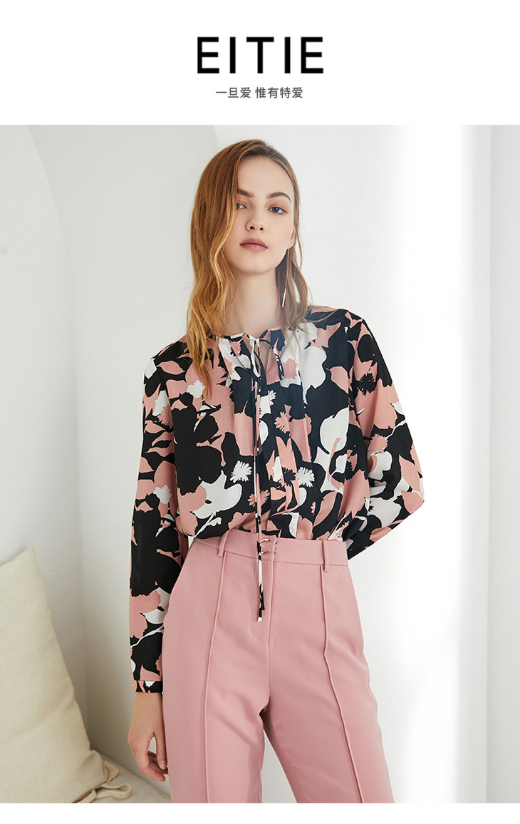 EITIE爱特爱秋季时尚通勤百搭显瘦系带减龄印花H版上衣女6013709