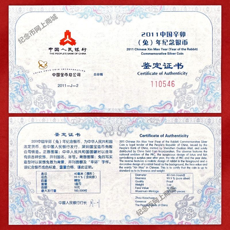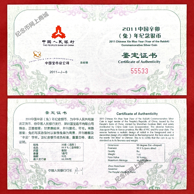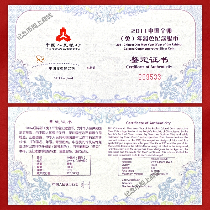 2011年兔年1盎司银币 封装评级 带礼盒 带证书