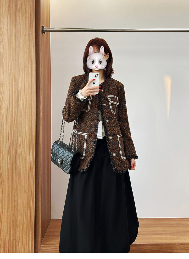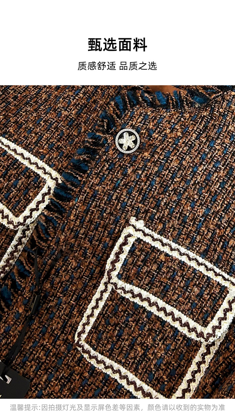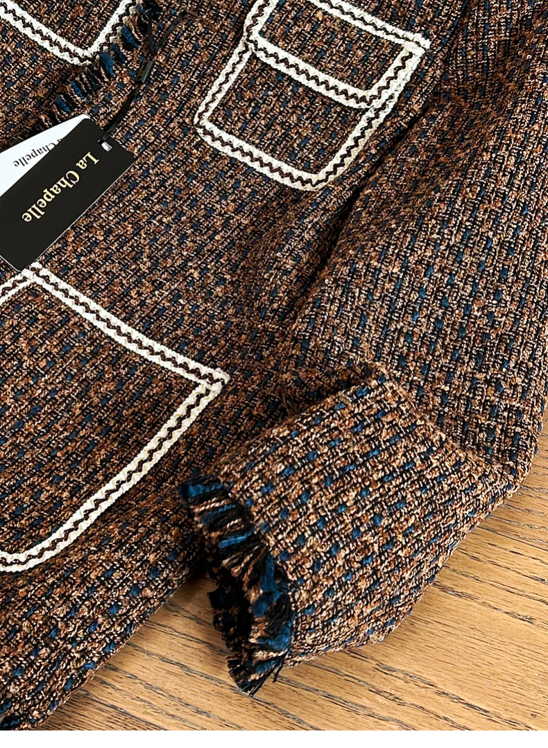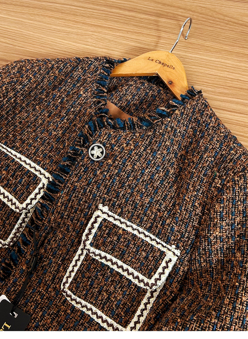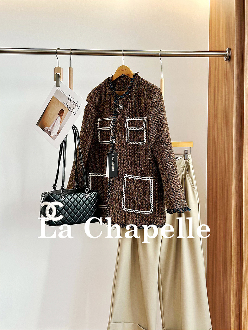 专柜实拍【财阀千金风】拉夏贝尔/La Chapelle轻奢重工!羊毛混纺气质圆领法式撞色粗花呢香风外套