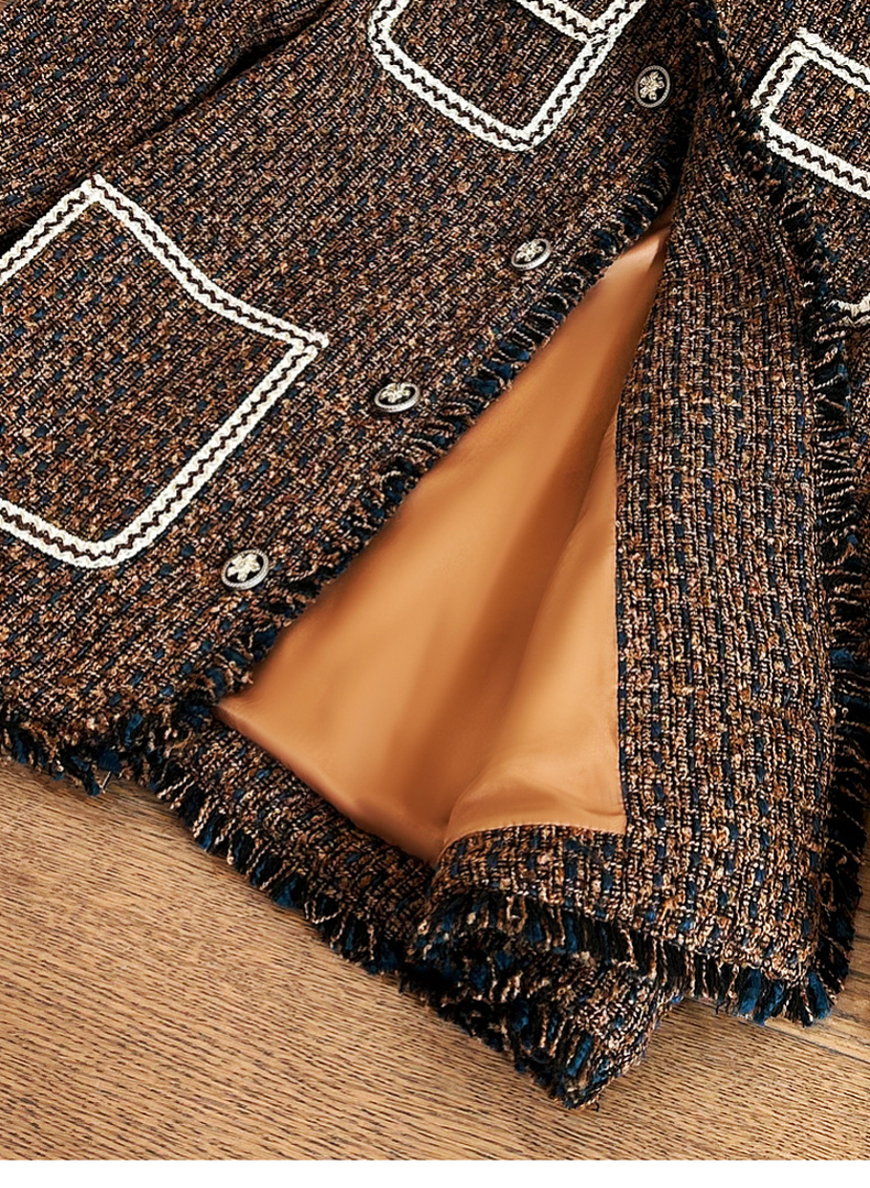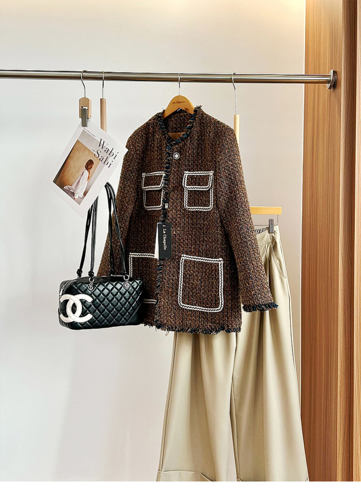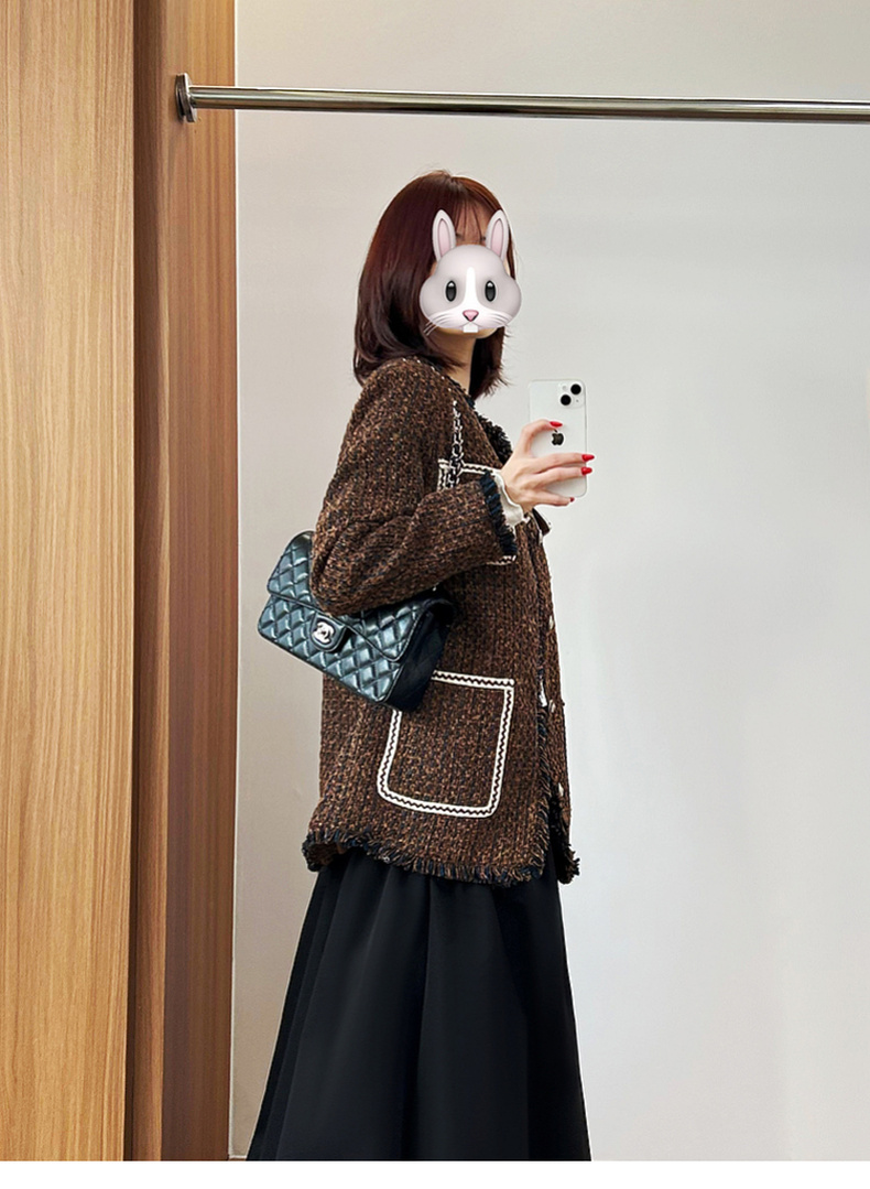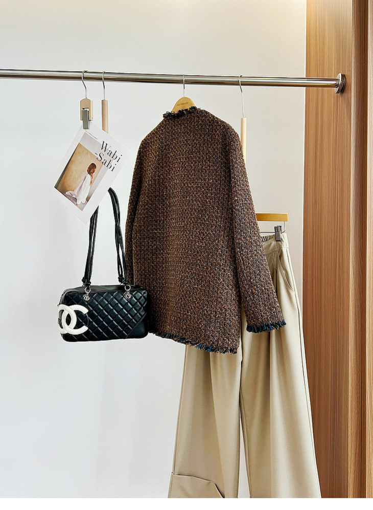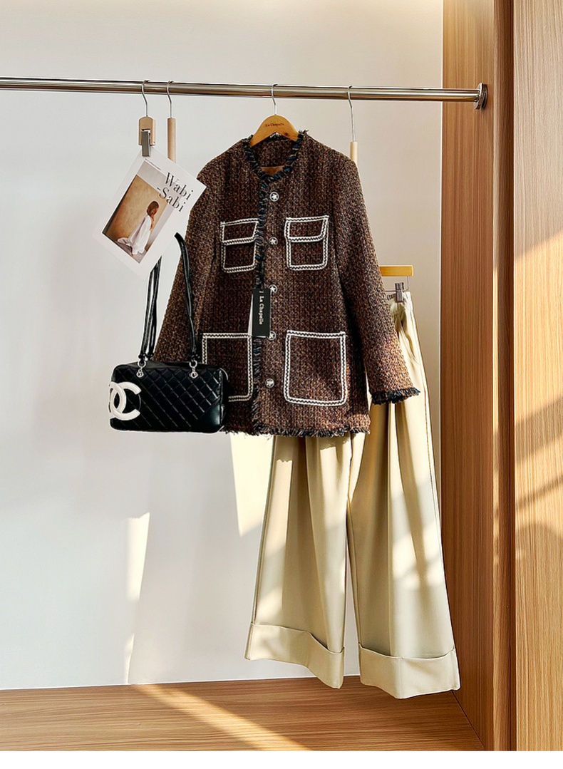 专柜实拍【财阀千金风】拉夏贝尔/La Chapelle轻奢重工!羊毛混纺气质圆领法式撞色粗花呢香风外套