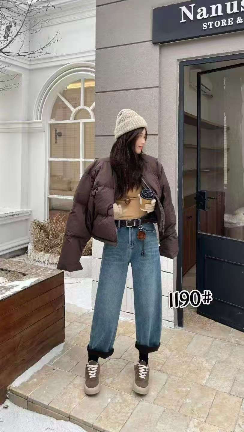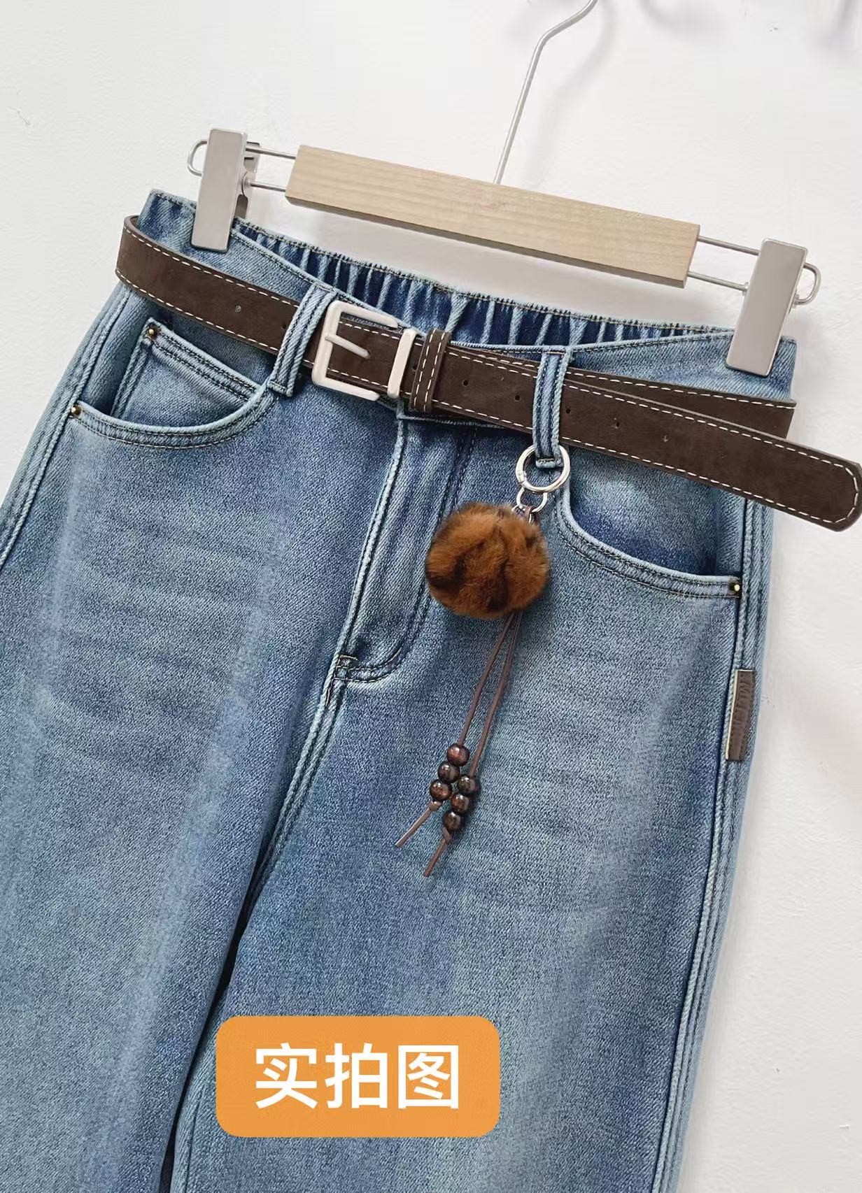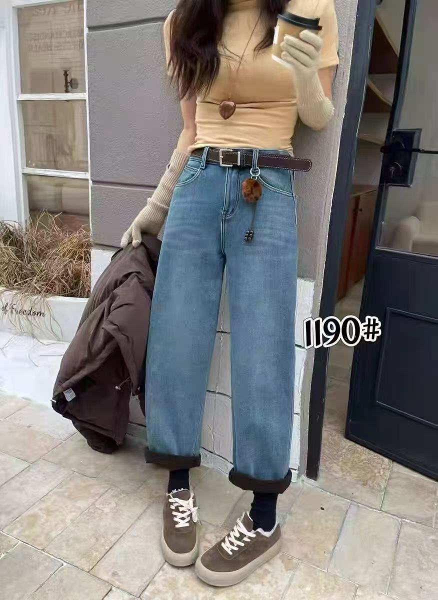 🔥🔥🔥【爆款牛仔】加厚密密绒~1190小个子款!高级感浅色牛仔软料冬季保暖哈伦牛仔裤-喜出