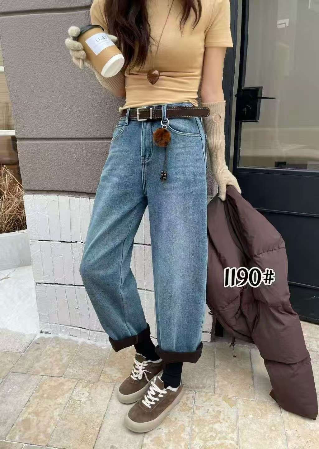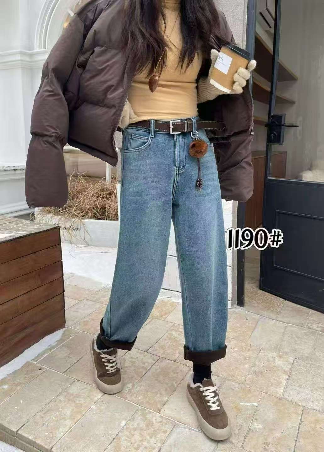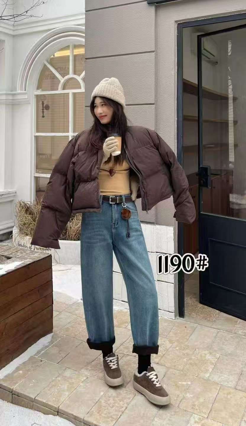 🔥🔥🔥【爆款牛仔】加厚密密绒~1190小个子款!高级感浅色牛仔软料冬季保暖哈伦牛仔裤-喜出