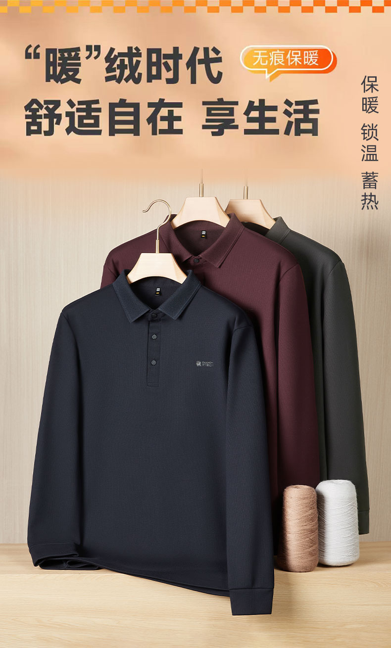 【DDS】大依优型大码男装长袖加绒polo衫男士加肥加大码宽松休闲翻领上衣