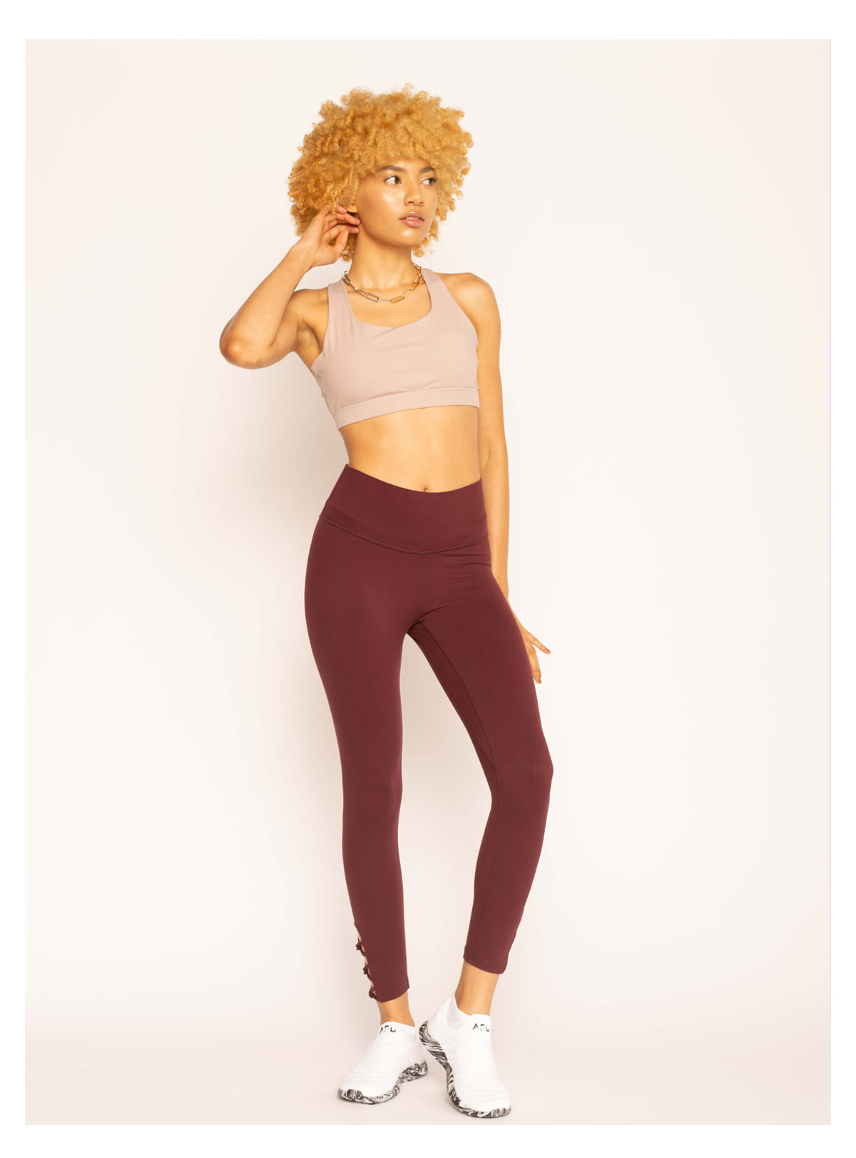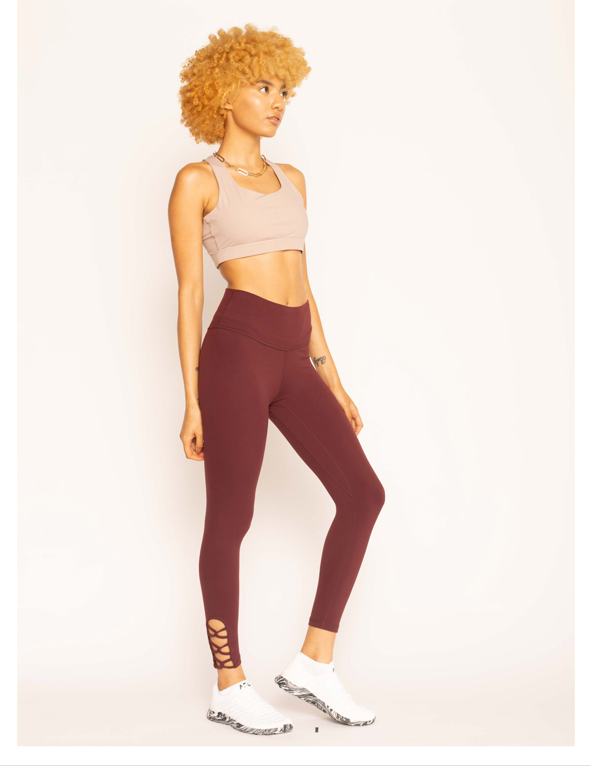 裸感高弹腿部织带九分紧身裤