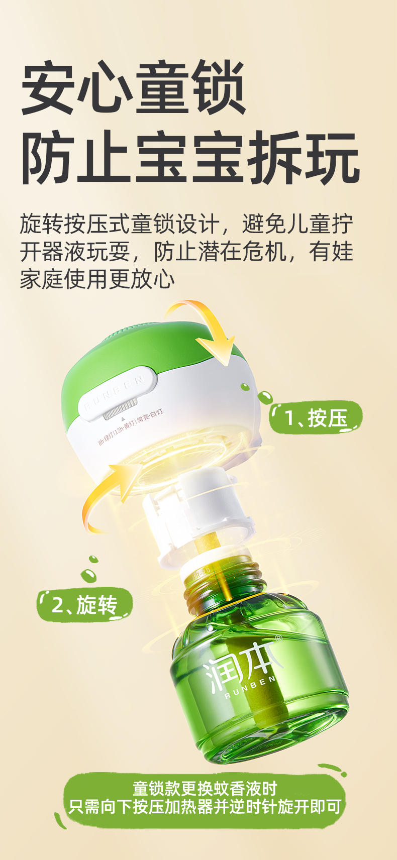 【品牌直发】润本蚊香液 定时童锁款 婴儿电蚊香器宝宝儿童家用驱蚊液