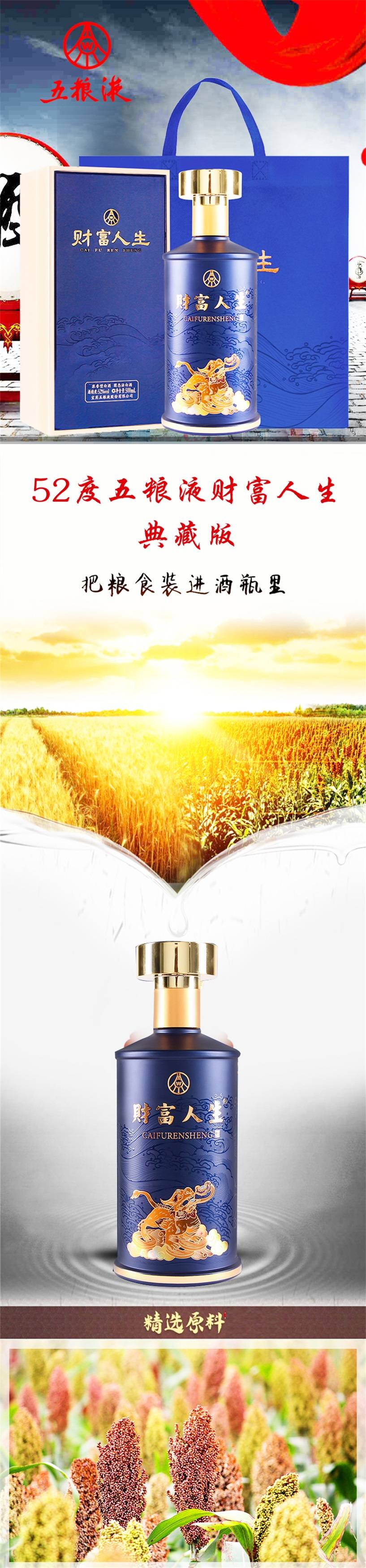 【五粮液总厂生产 纯粮酿造】五粮液财富人生典藏52%VOl 浓香型 500ml*1