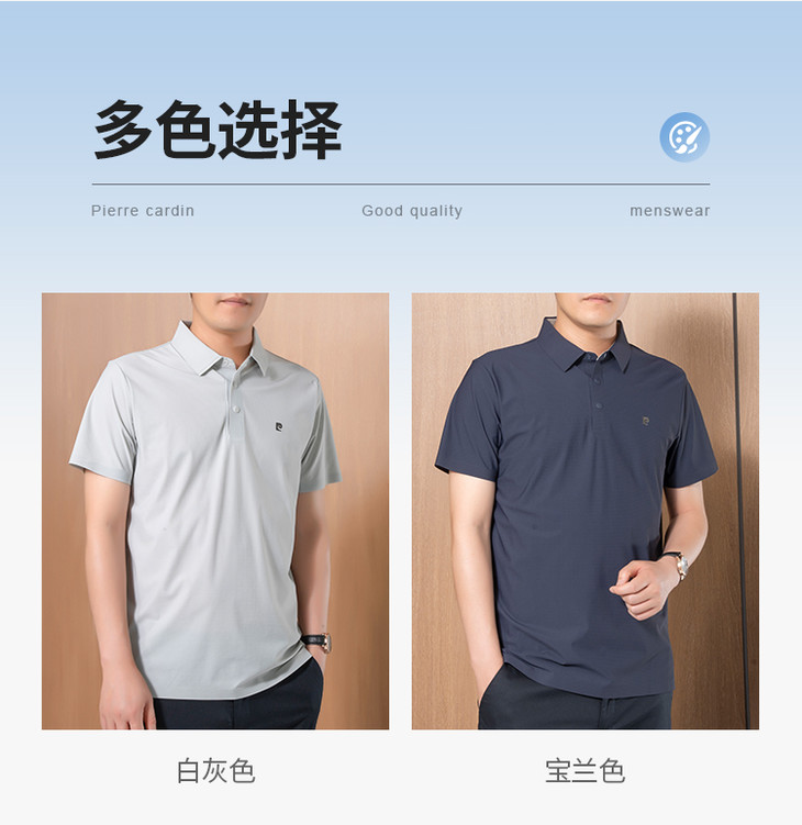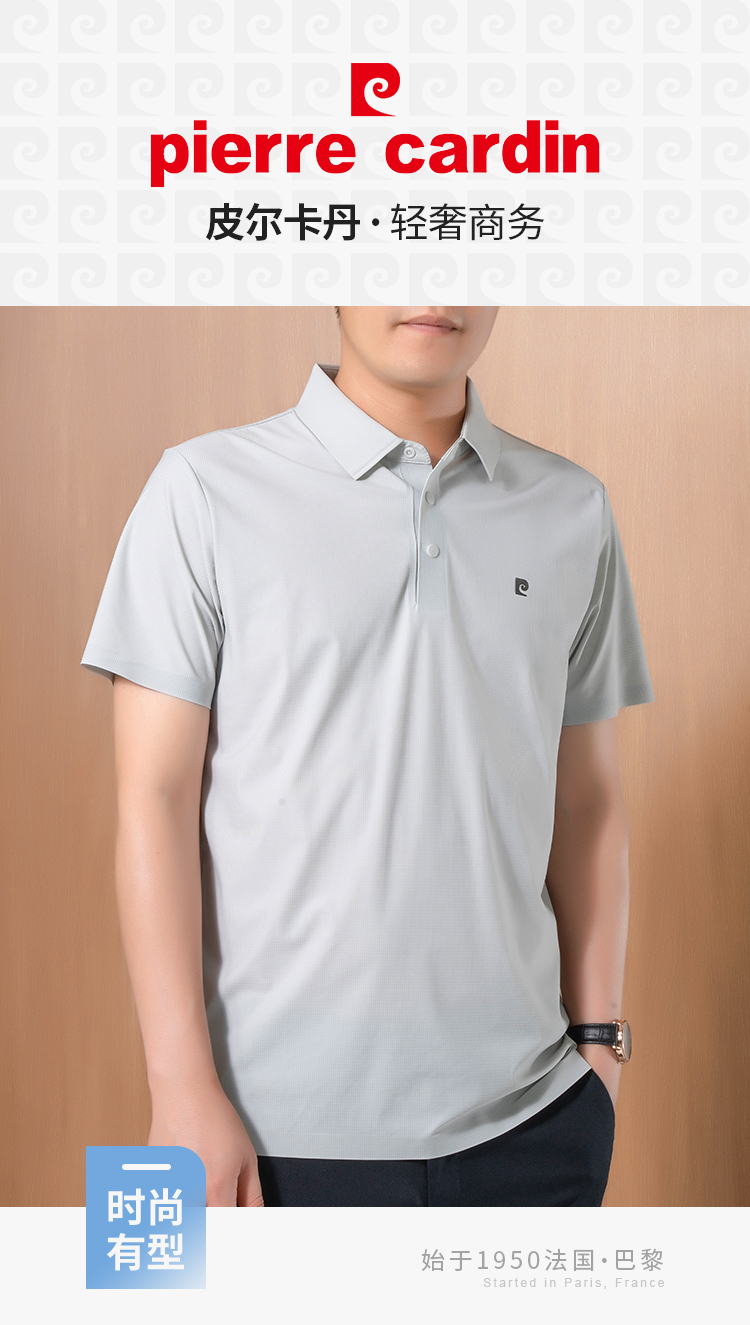 【法国皮尔卡丹 始于1950】夏季冰丝POLO衫短袖 更薄更透气凉爽 商务休闲 时尚百搭