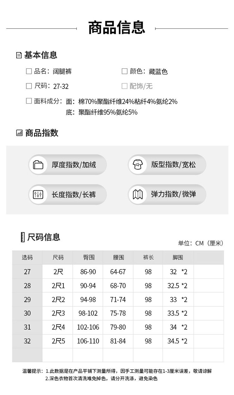 QYM 5957-Y厚款保暖阔腿裤加绒加厚直筒裤休闲裤