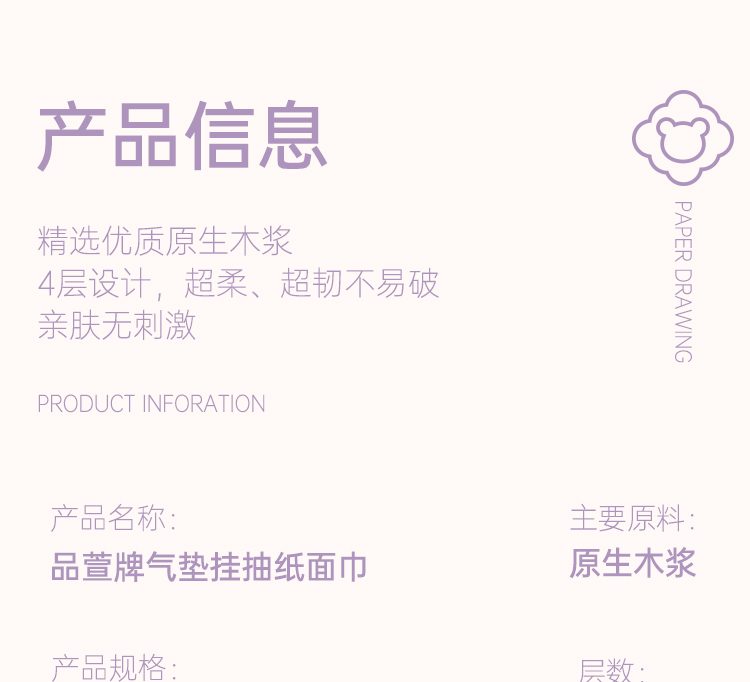品萱花漾110抽3层抽取式面纸-20包电商专供
