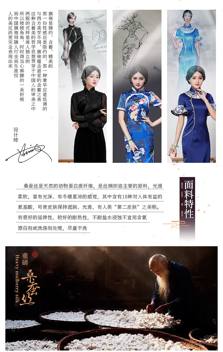 ZA1130高档重磅真丝香云纱双层长款长袖旗袍裙