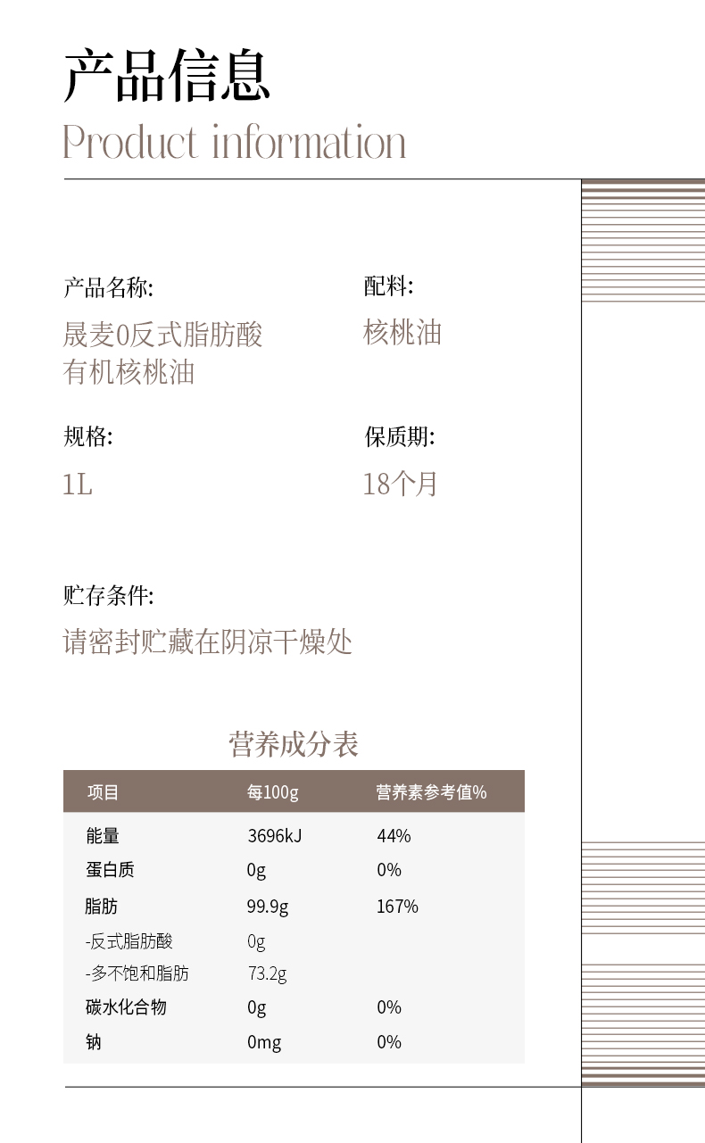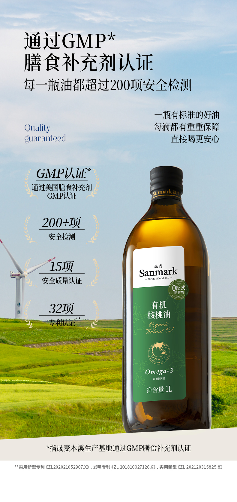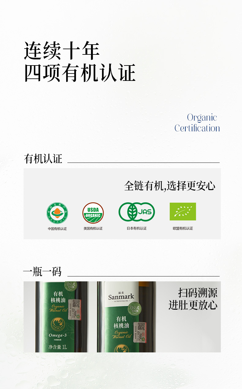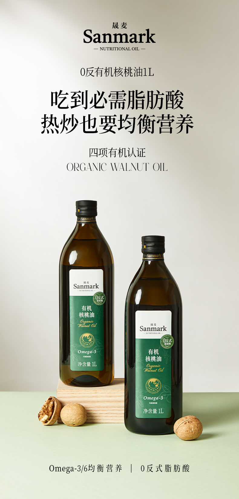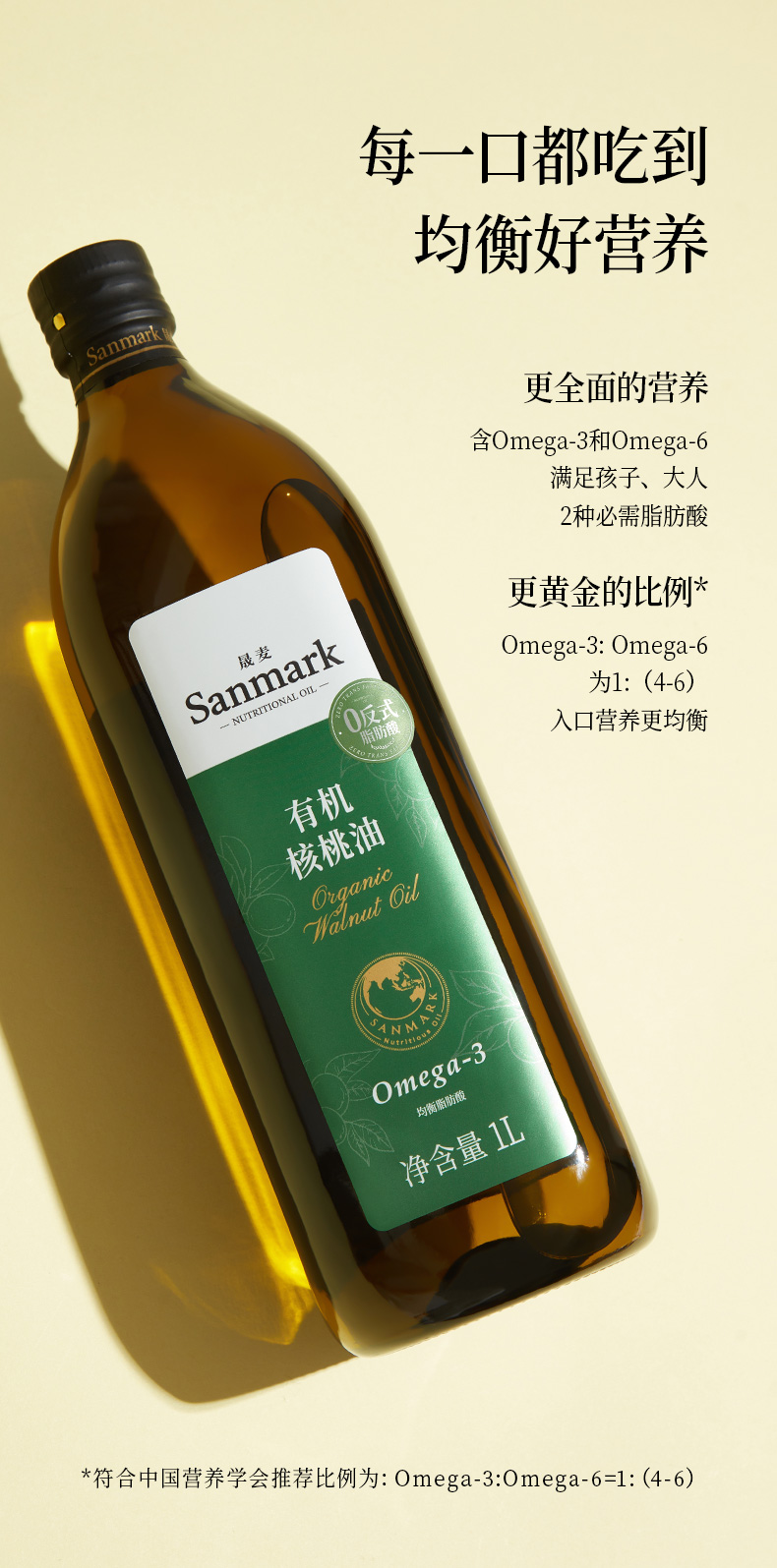 有机核桃油 | 1L/瓶 Omega-3/6均衡营养 0反式脂肪酸 一级冷榨 热炒冷拌沙拉 晟麦