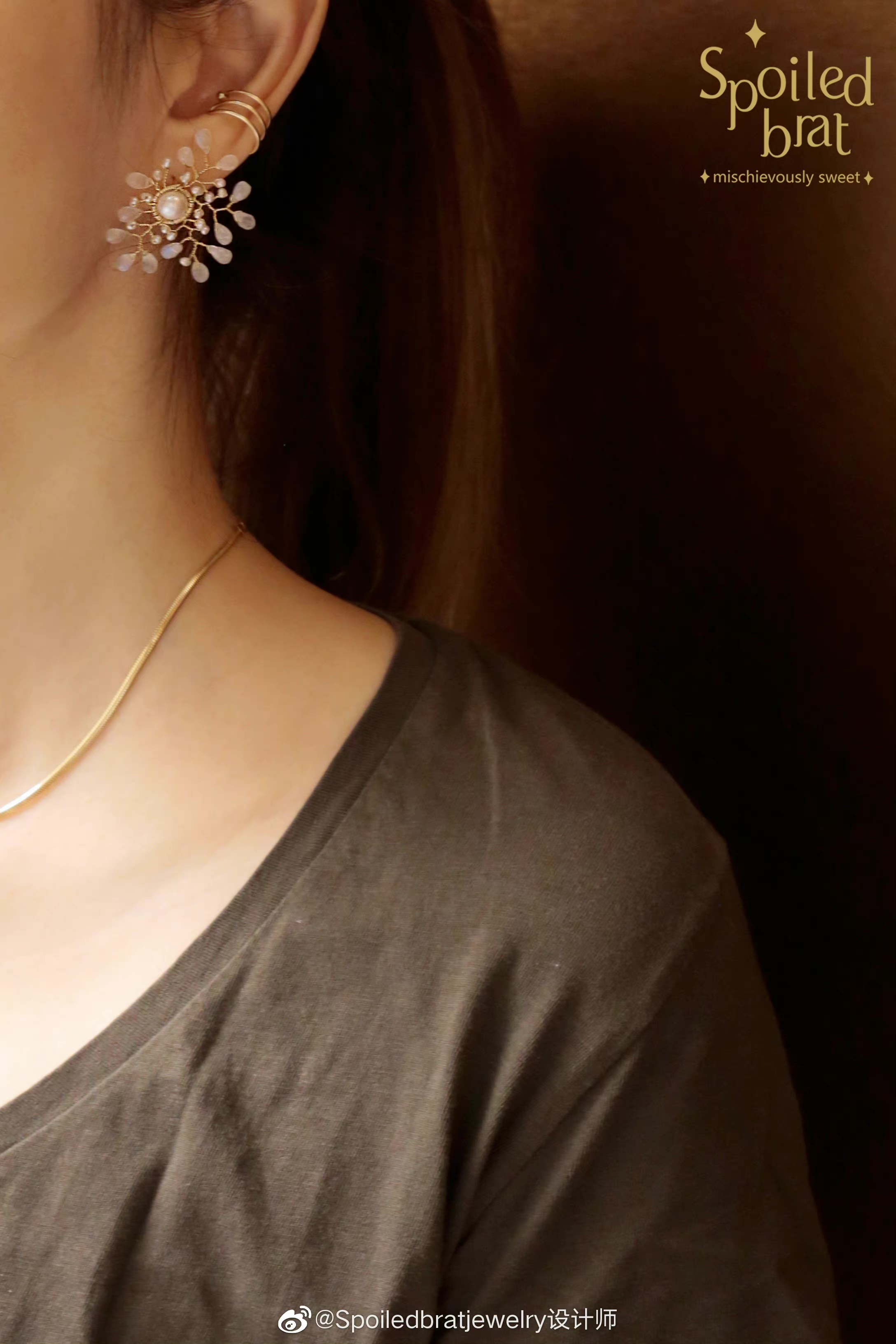 SpoiledBrat Jewelry月晕星芒系列 | 单只珍珠月光石耳环