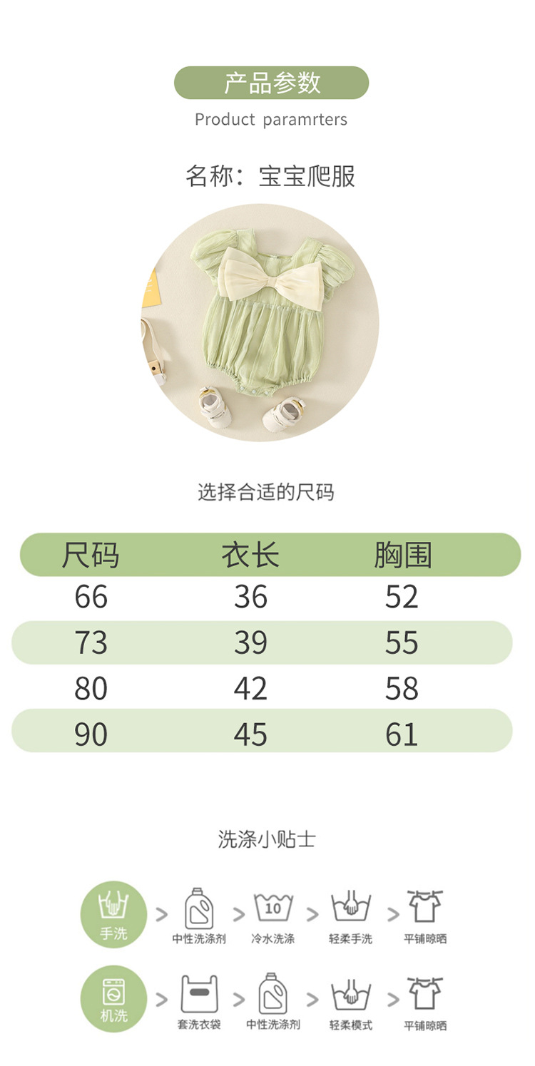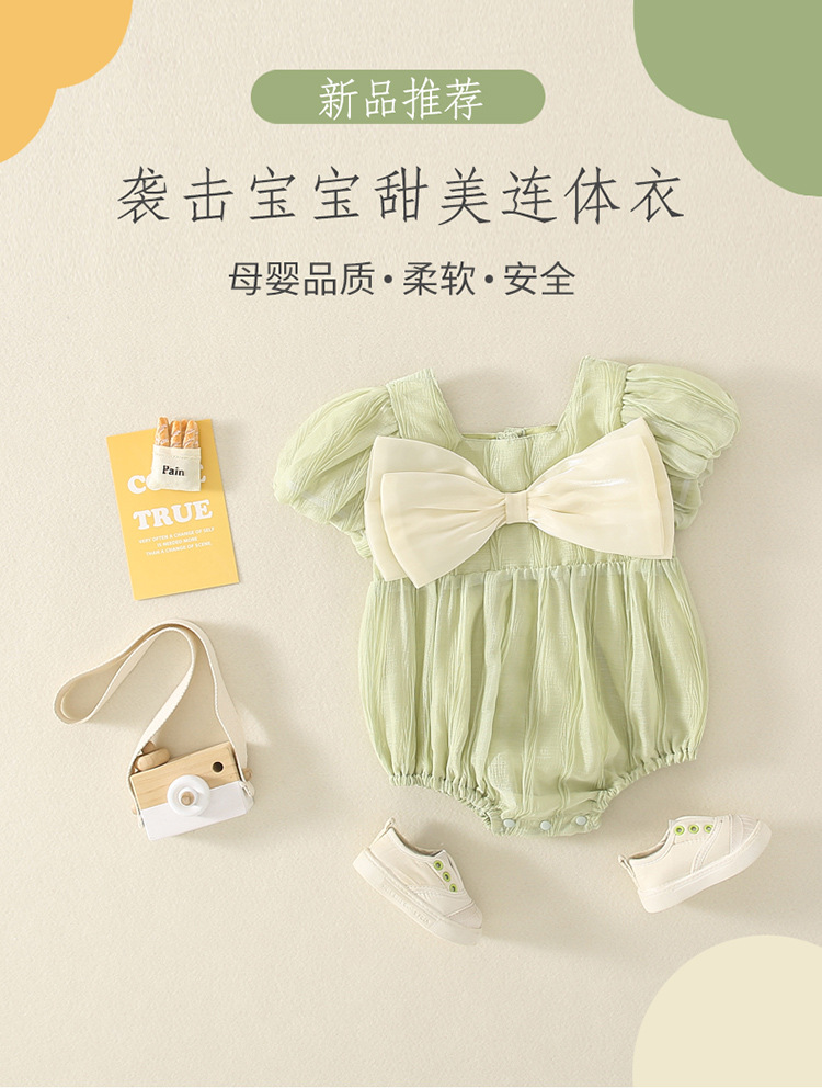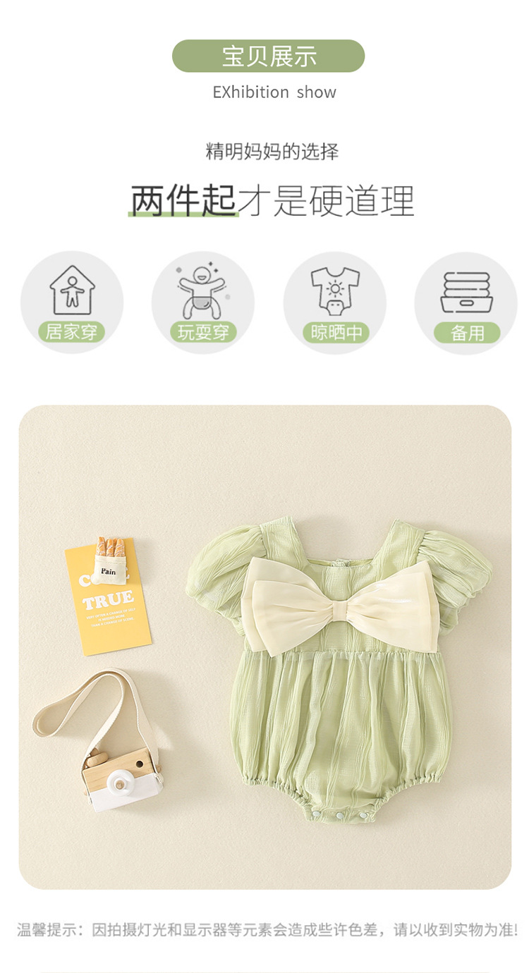 【2023夏装婴幼儿女宝宝蝴蝶结哈衣包屁衣】0-2岁新生儿连体衣爬服潮,柔软舒适透气,耐磨耐穿不变形