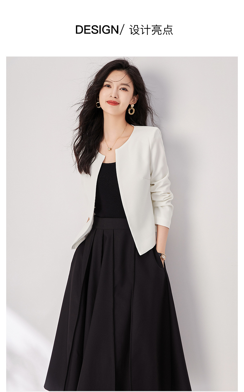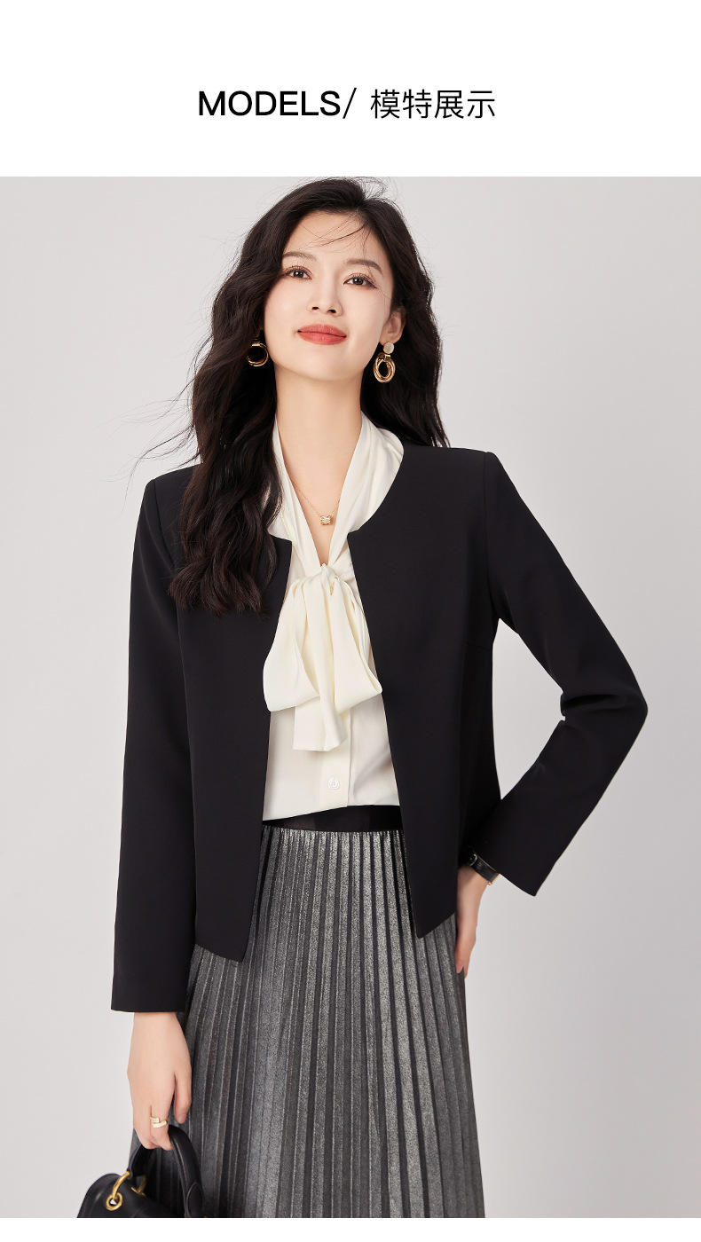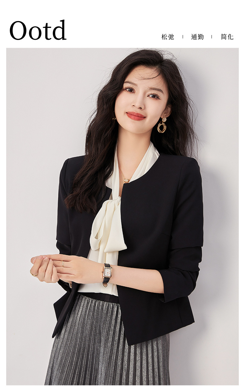 通勤百搭,秋季气质纯色显瘦宽松H型短款西装外套上衣WLZD-2318410