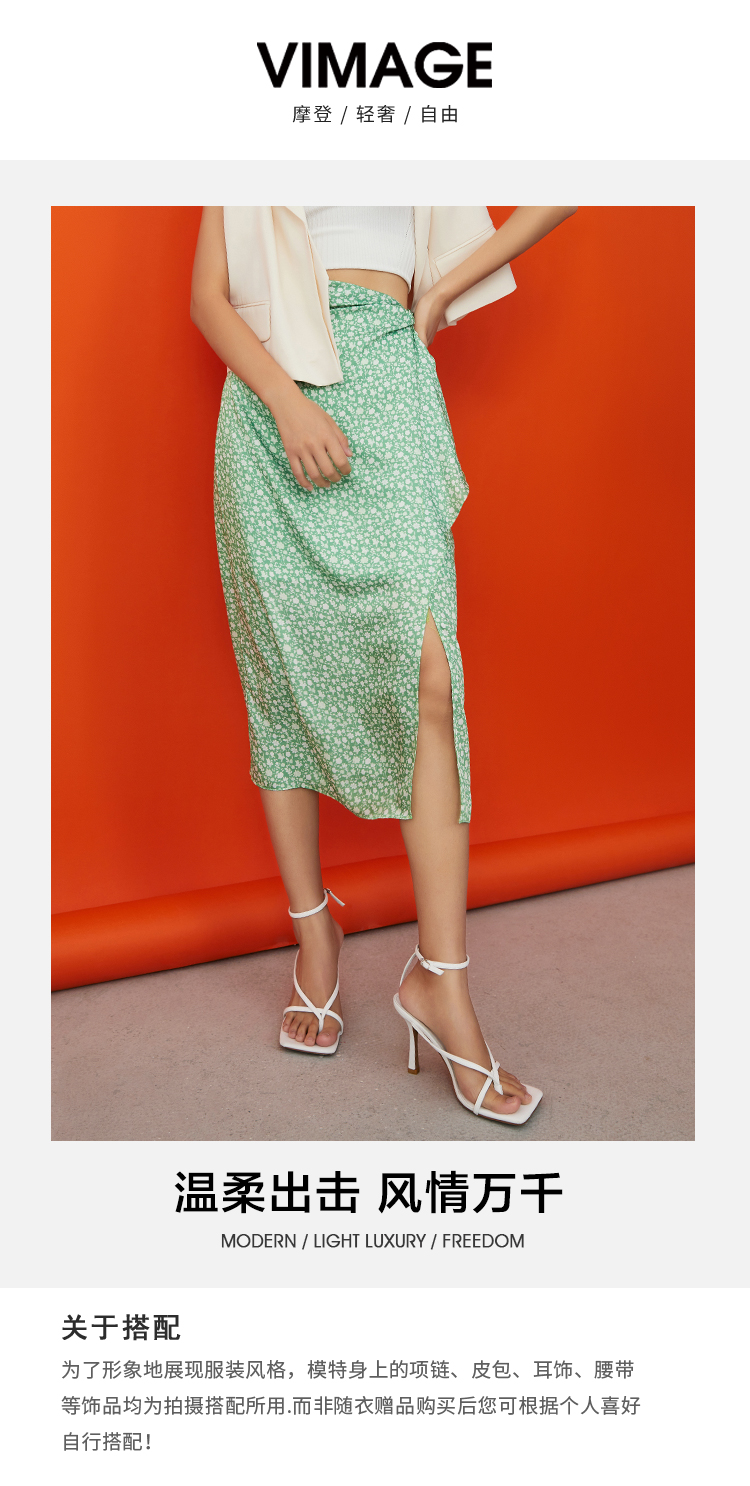 VIMAGE纬漫纪夏季新款气质碎花雪纺时尚清新半身裙V1706311