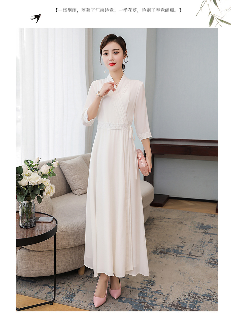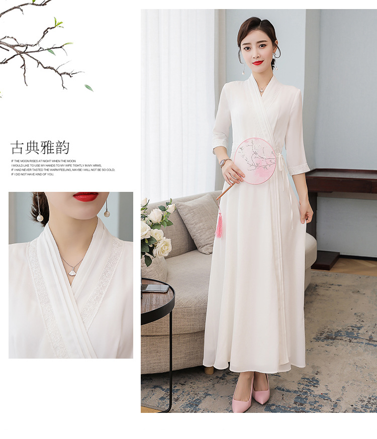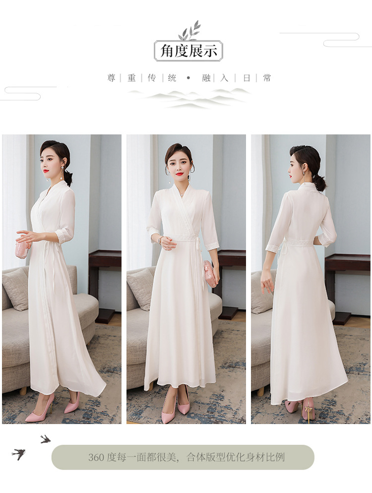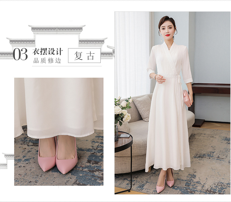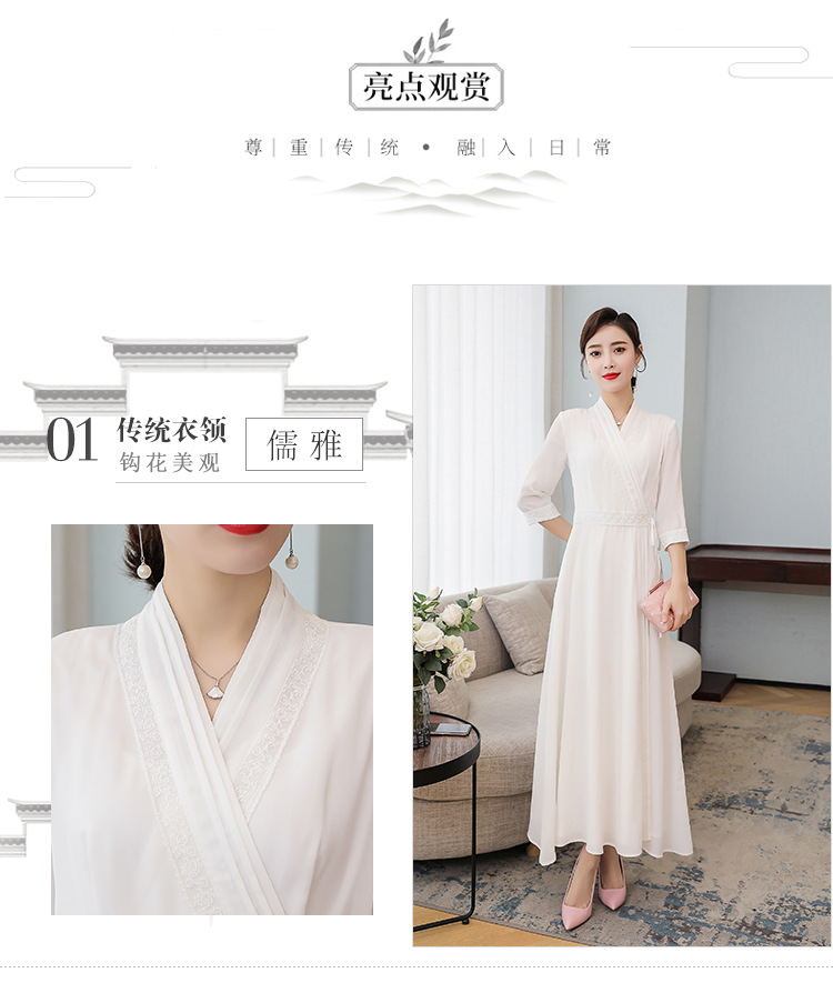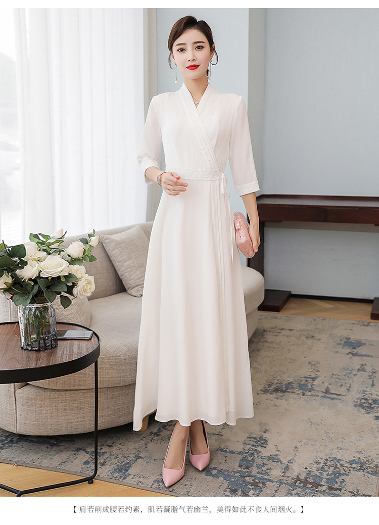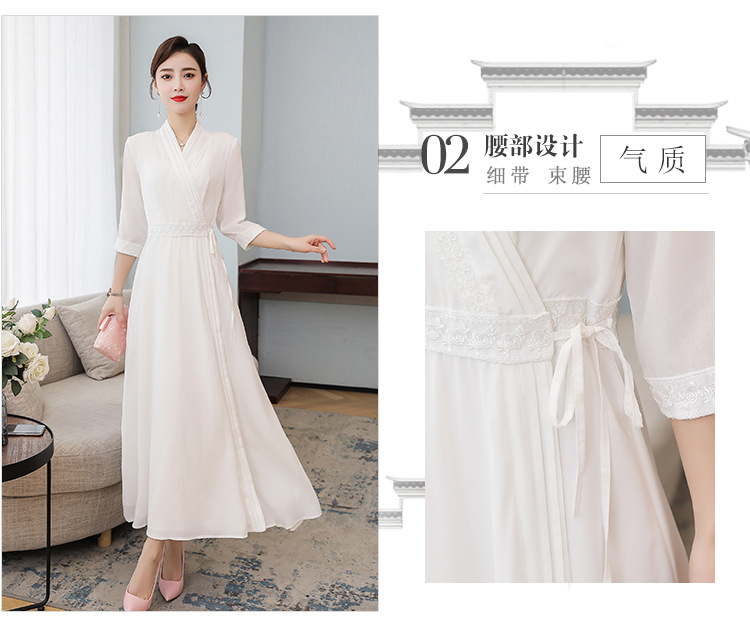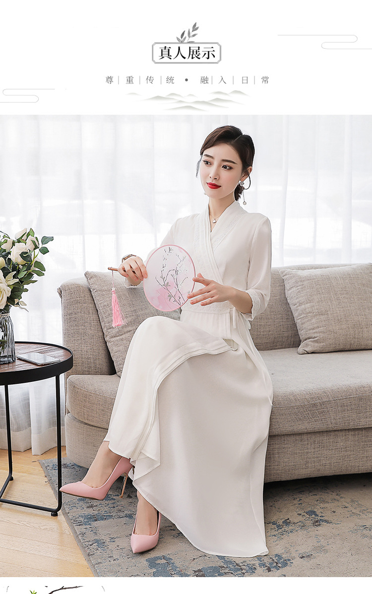 LF-LF9381(网红同款茶服)气质女神范收腰白色仙气古风连衣裙