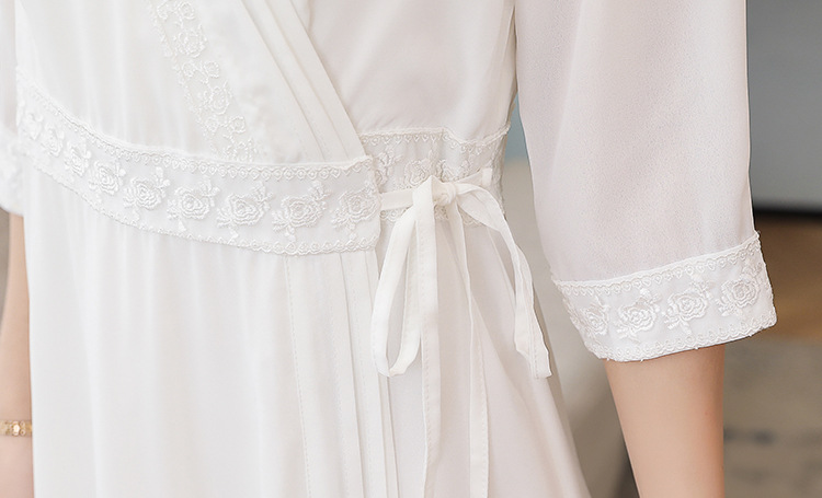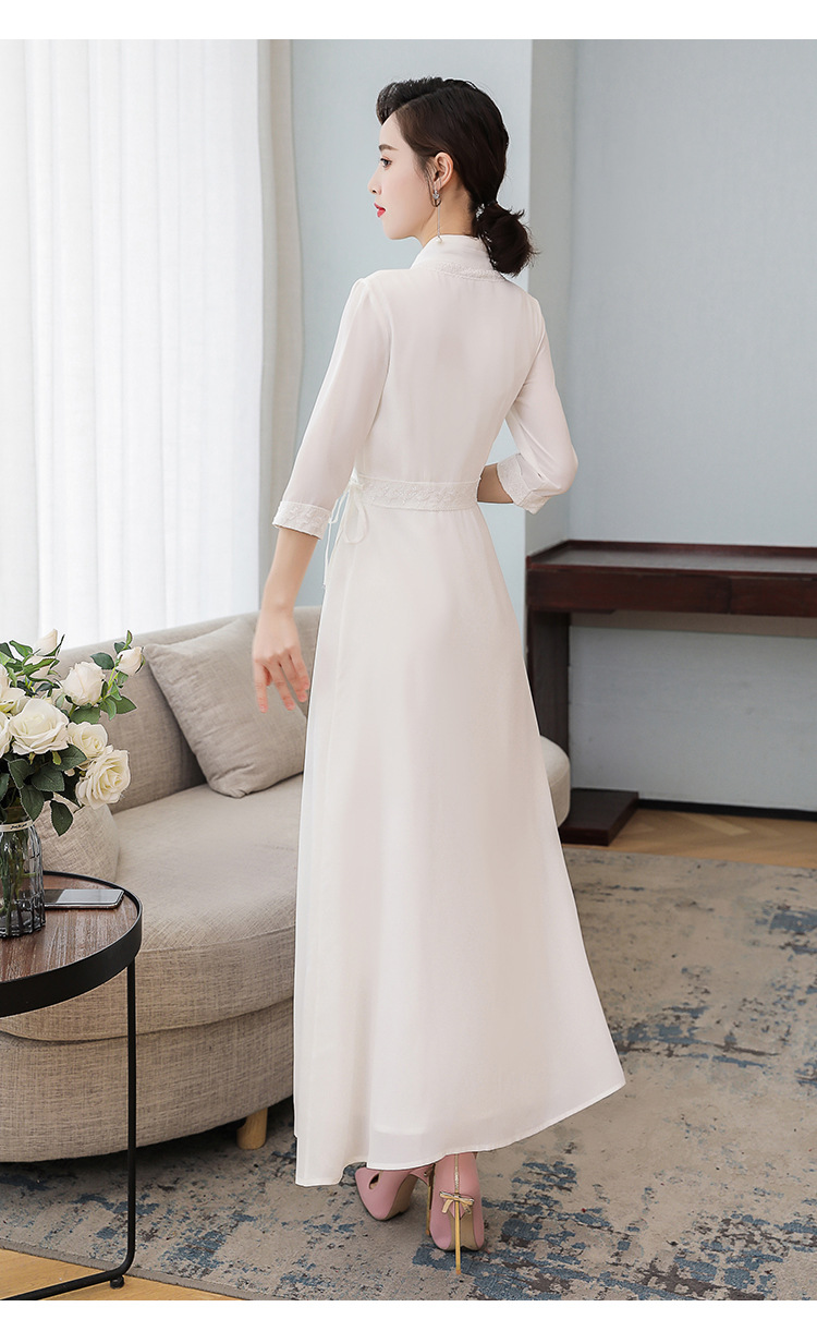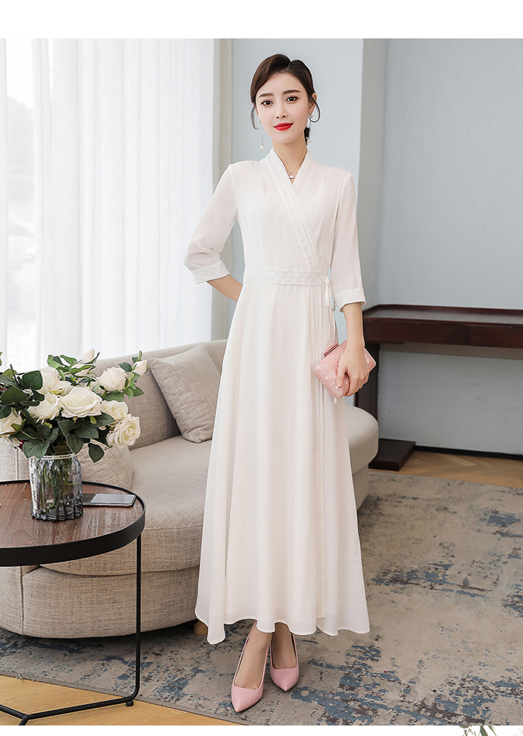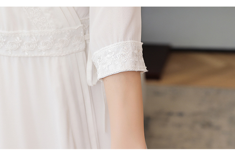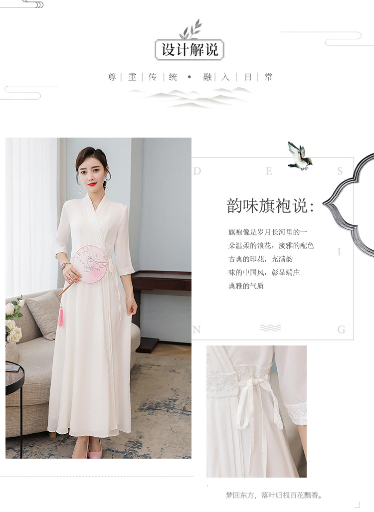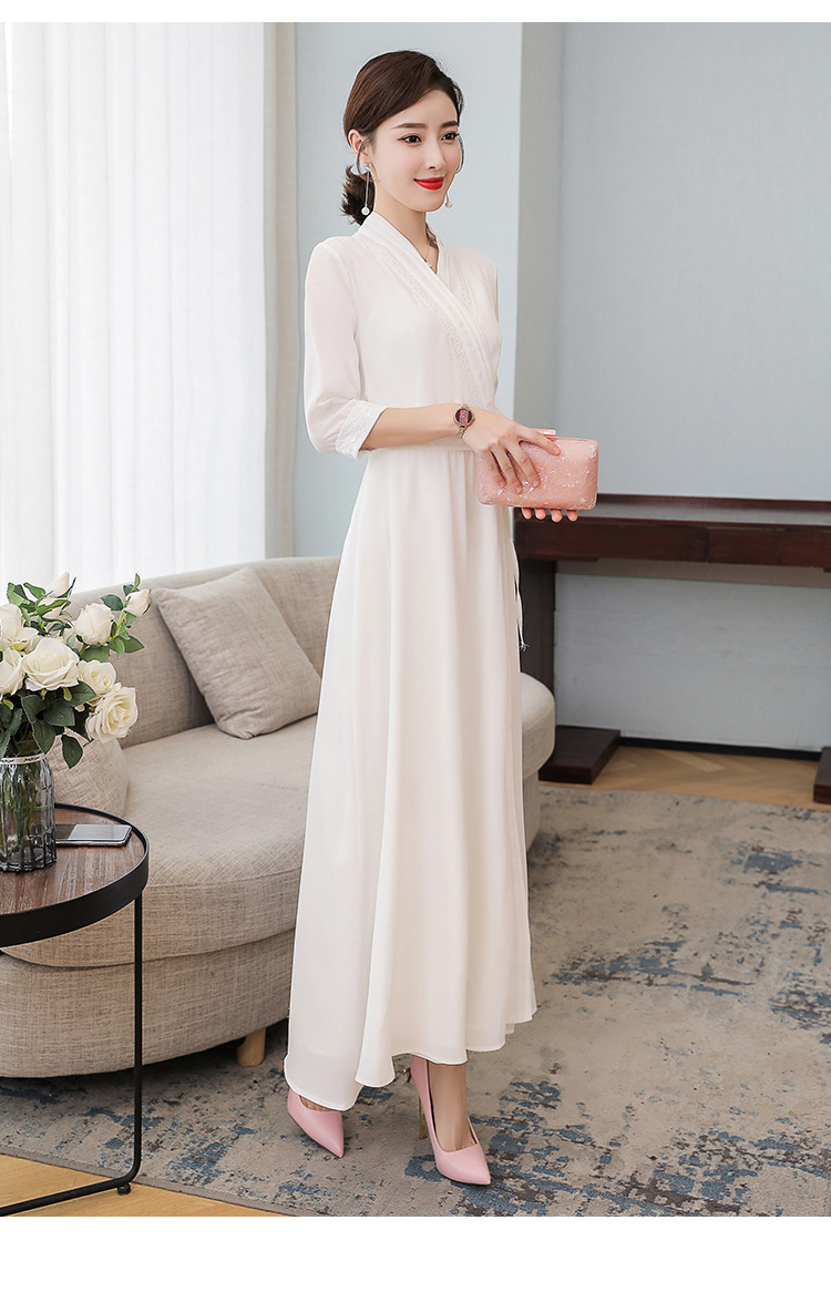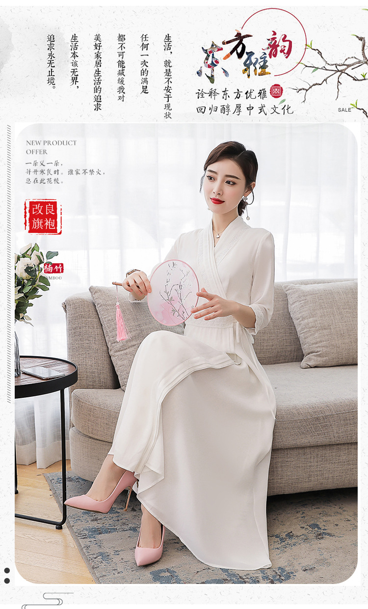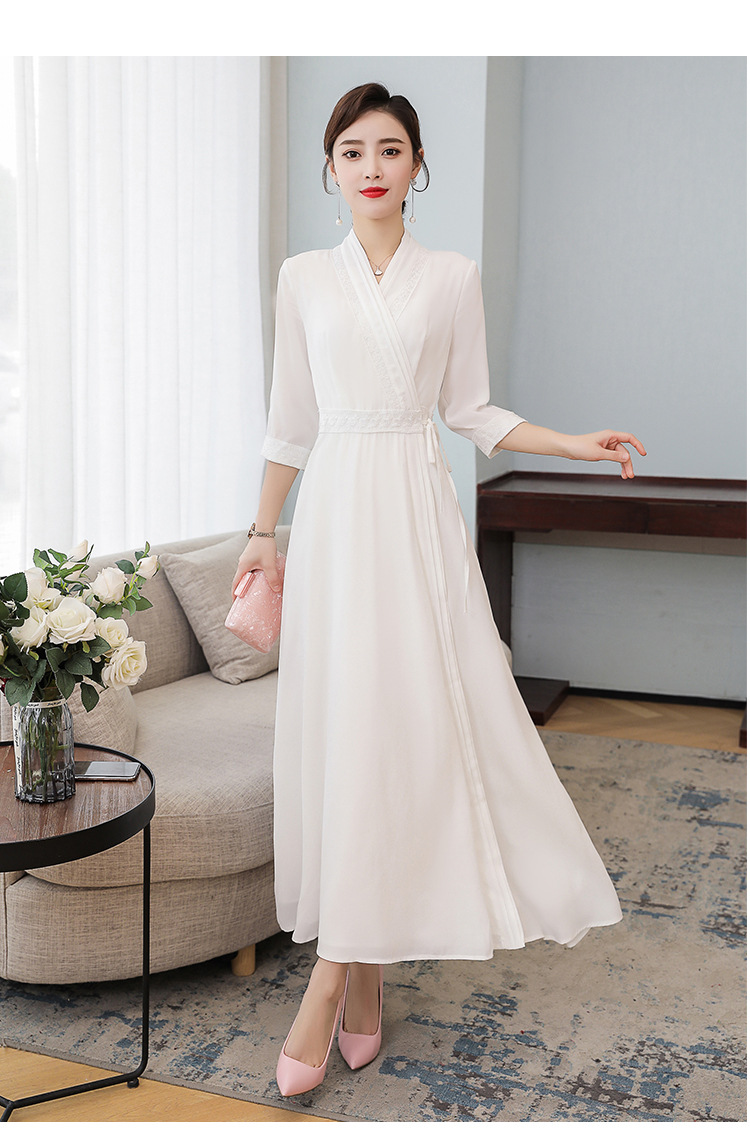 LF-LF9381(网红同款茶服)气质女神范收腰白色仙气古风连衣裙