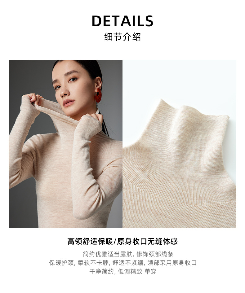 丁摩 精纺超细100纯羊毛衫女高领打底衫薄款针织毛衣8820F 商品图4