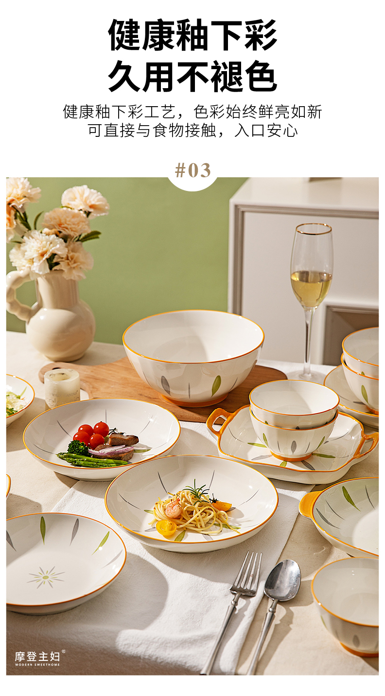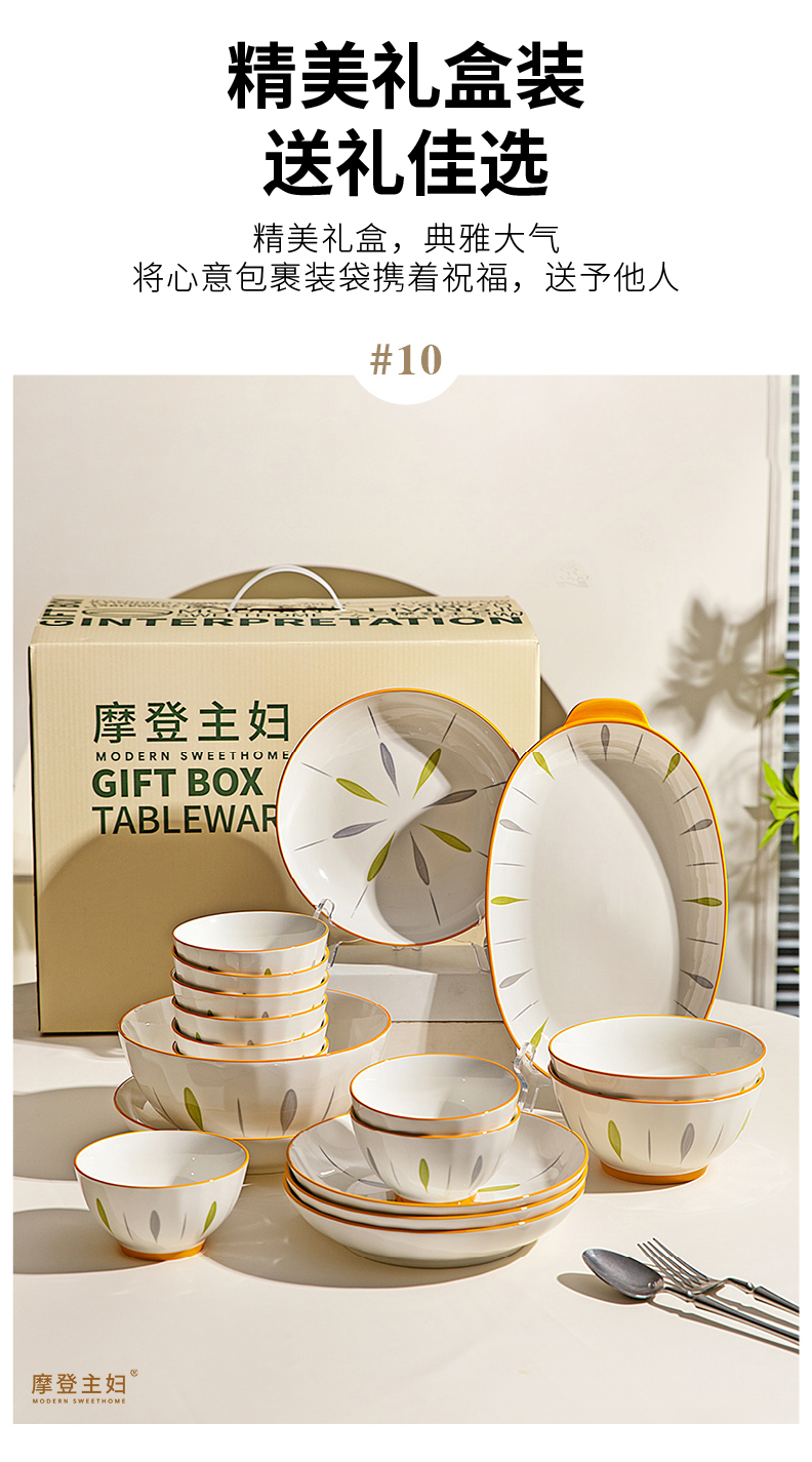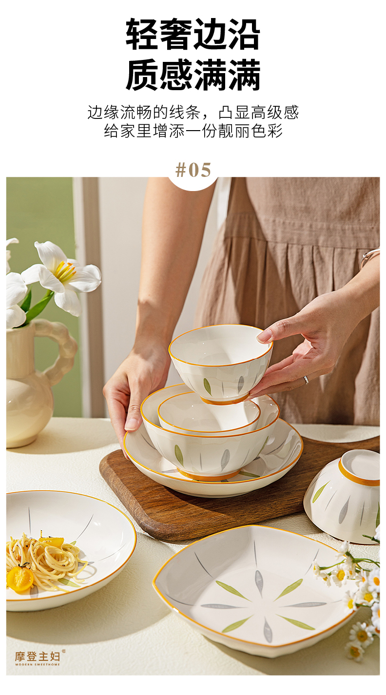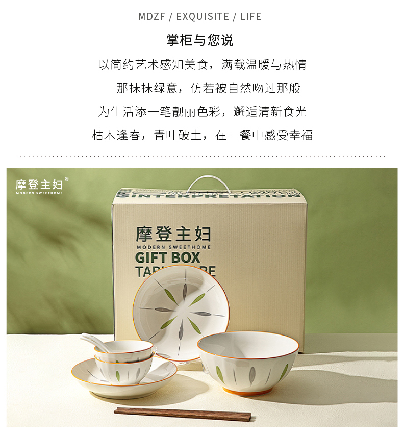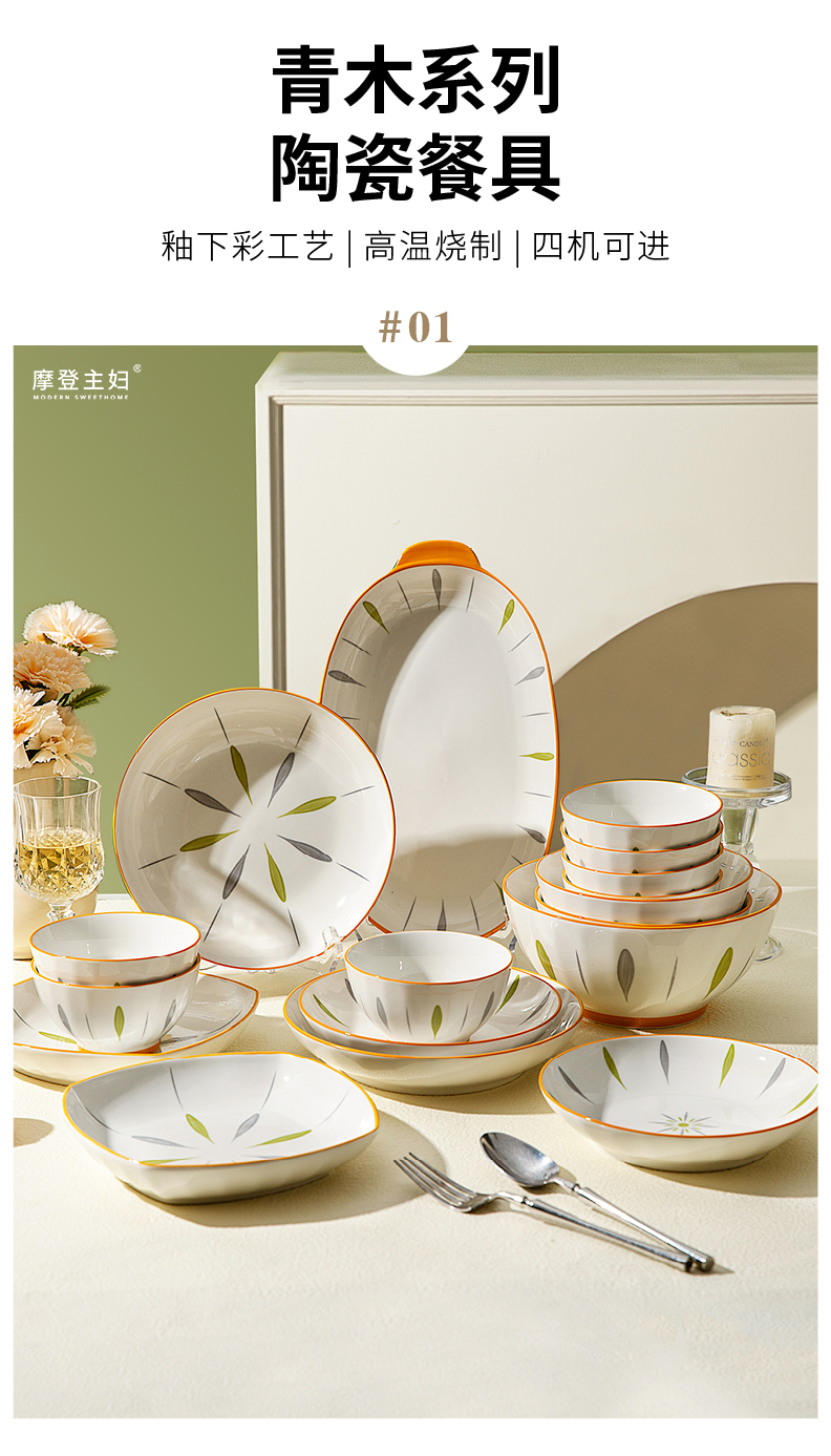摩登主妇青木釉下彩餐具套装碗碟家用2025新款碗盘筷乔迁新居礼物