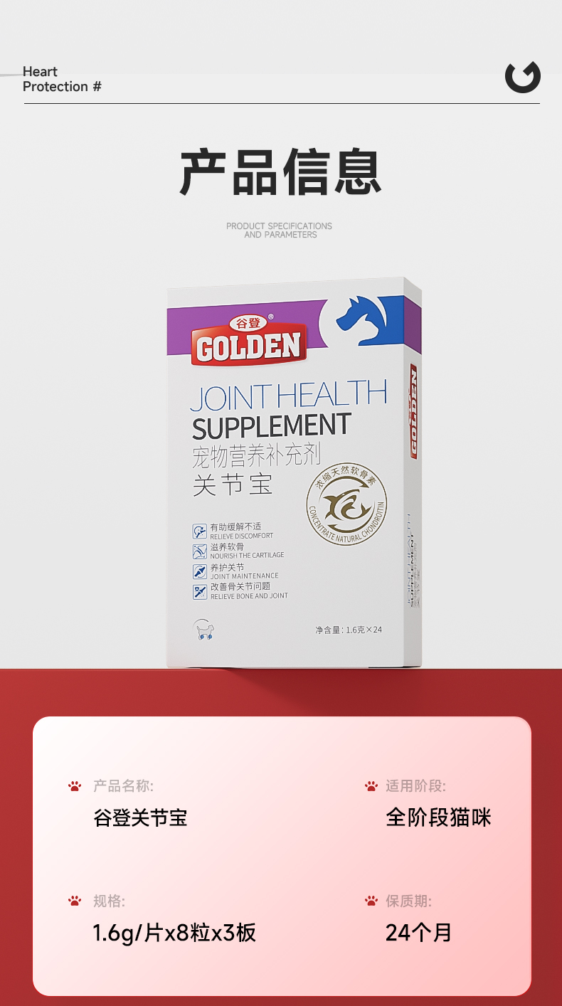 【2盒加送赠品】谷登关节宝1.6g*8粒*3版 (猫用)