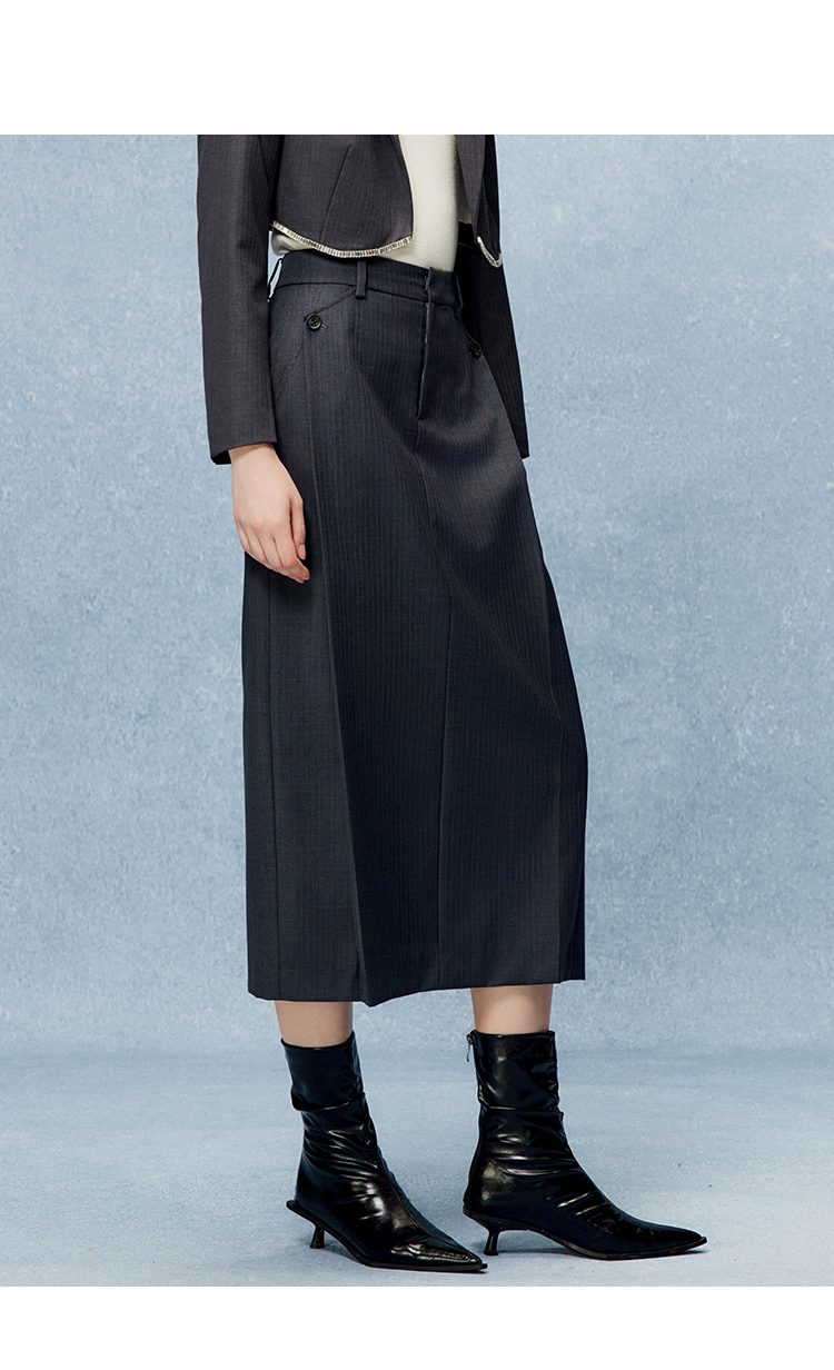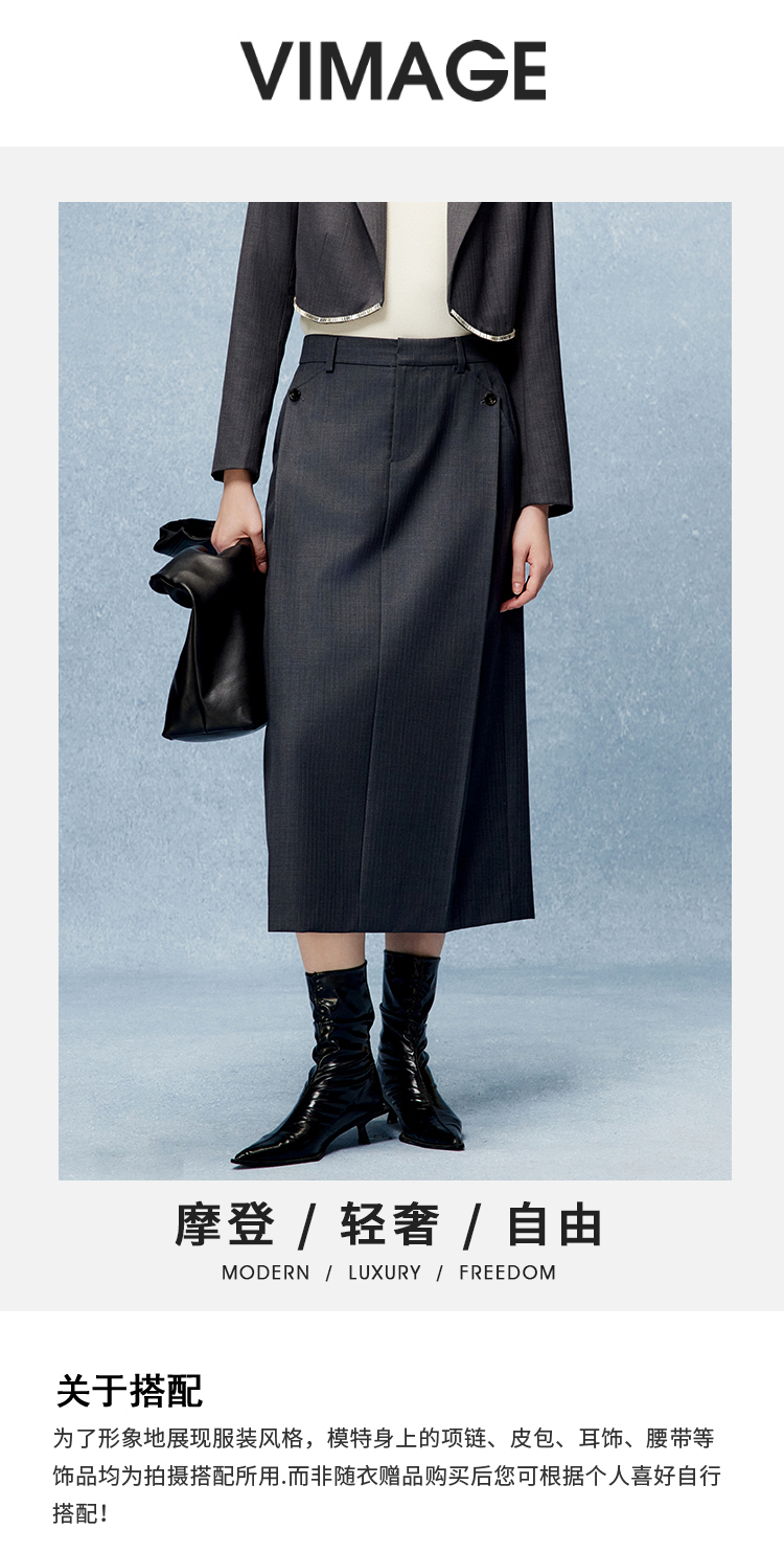 VIMAGE纬漫纪秋季新款时尚气质纯色百搭显瘦长裙半身裙V2206809