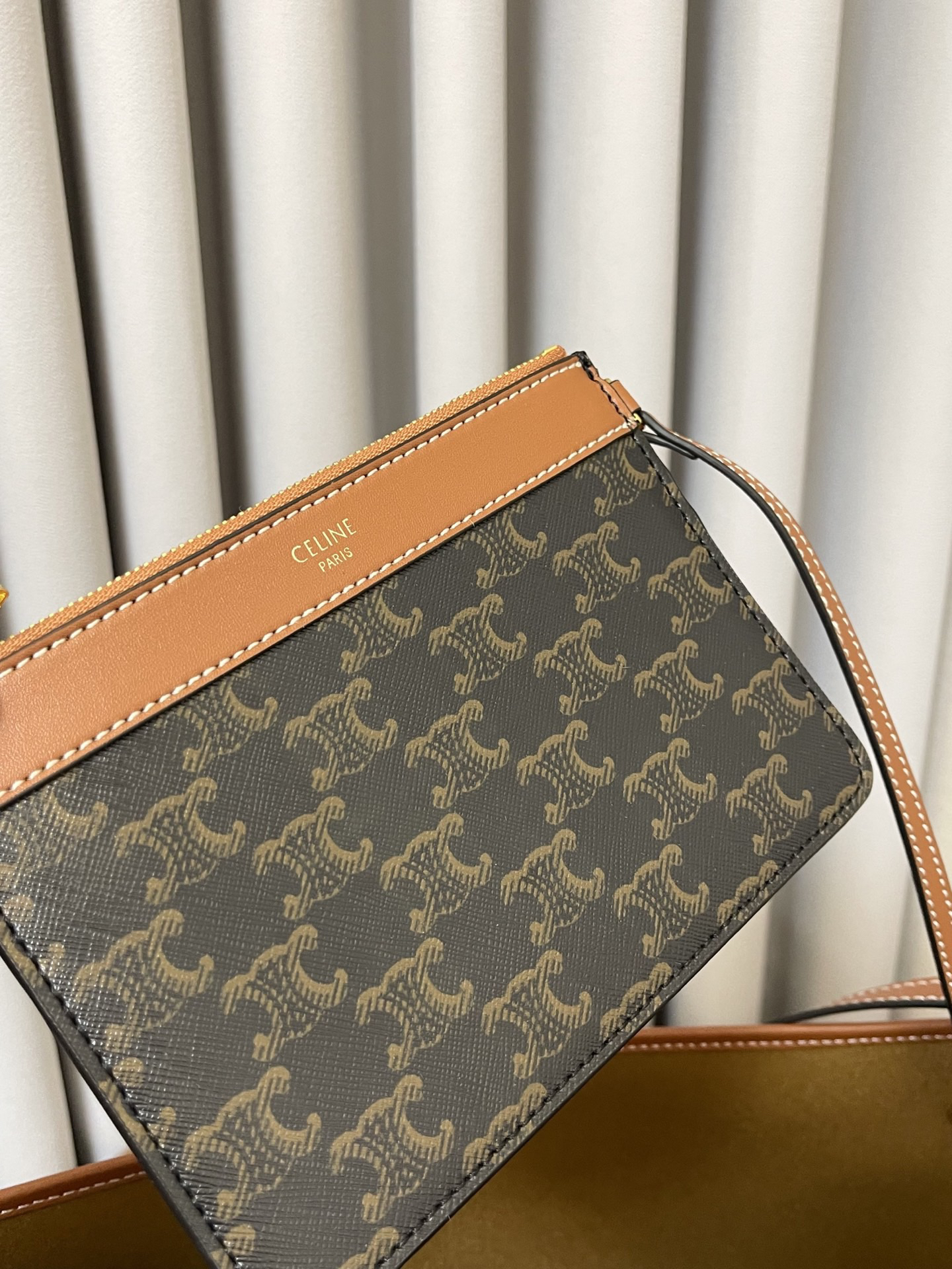 大身采用Triomphe帆布材质 轻便耐磨 还能有效防水,经典的凯旋门老花图案一秒吸睛,复古法式的轻奢贵气感十足,焦糖色牛皮包边处理 让包身更加挺括有型,标志性的金色凯旋门磁扣,简约低调但不失辨识度,容易开合 拿取物品超便利!