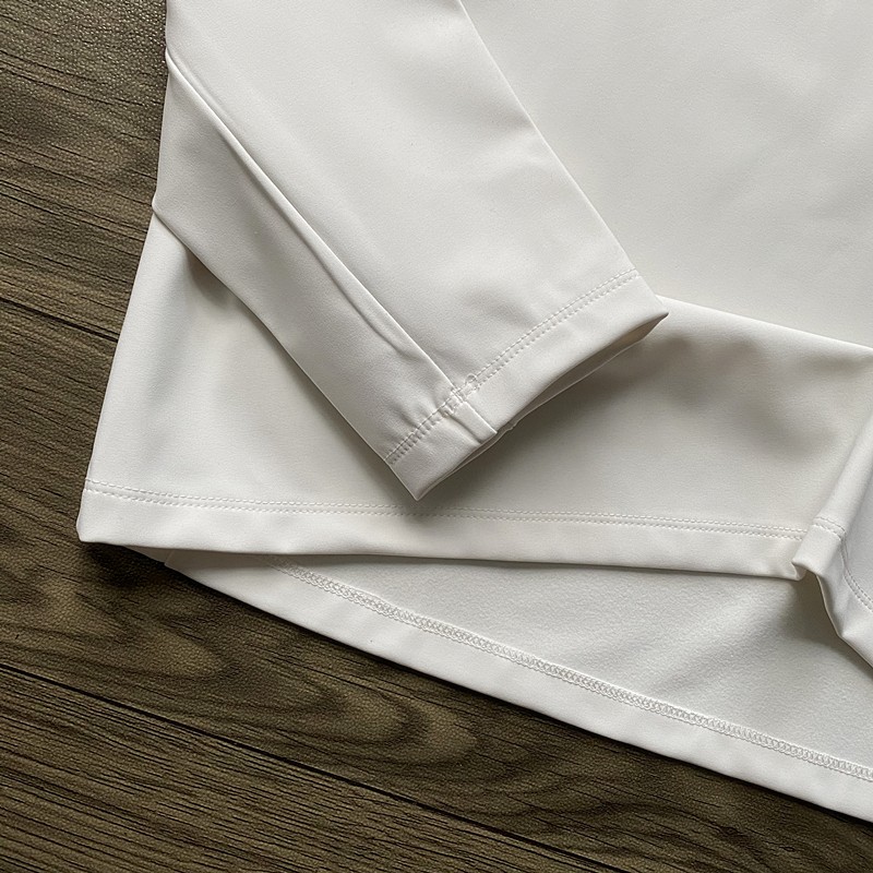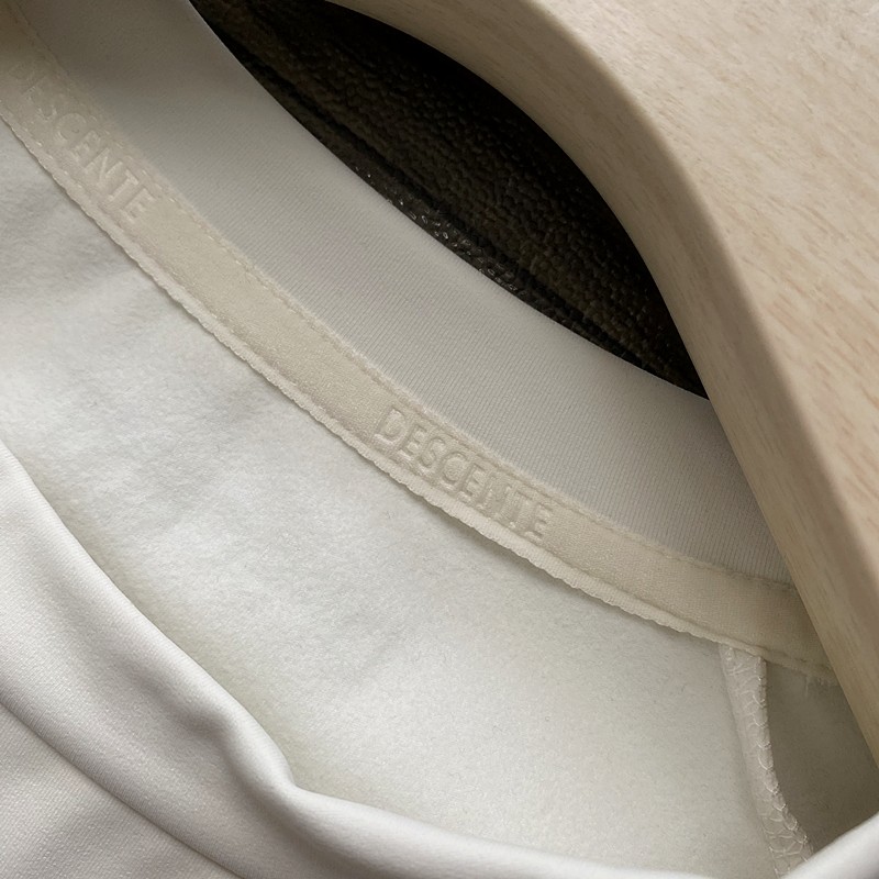 插肩袖裁剪,12片组合式拼接更贴合身体运动轮廓,增加肩背运动空间。领口有加宽设计,肩线和袖口采用弹性收边,搭配撞色LOGO强化品牌辨识度。